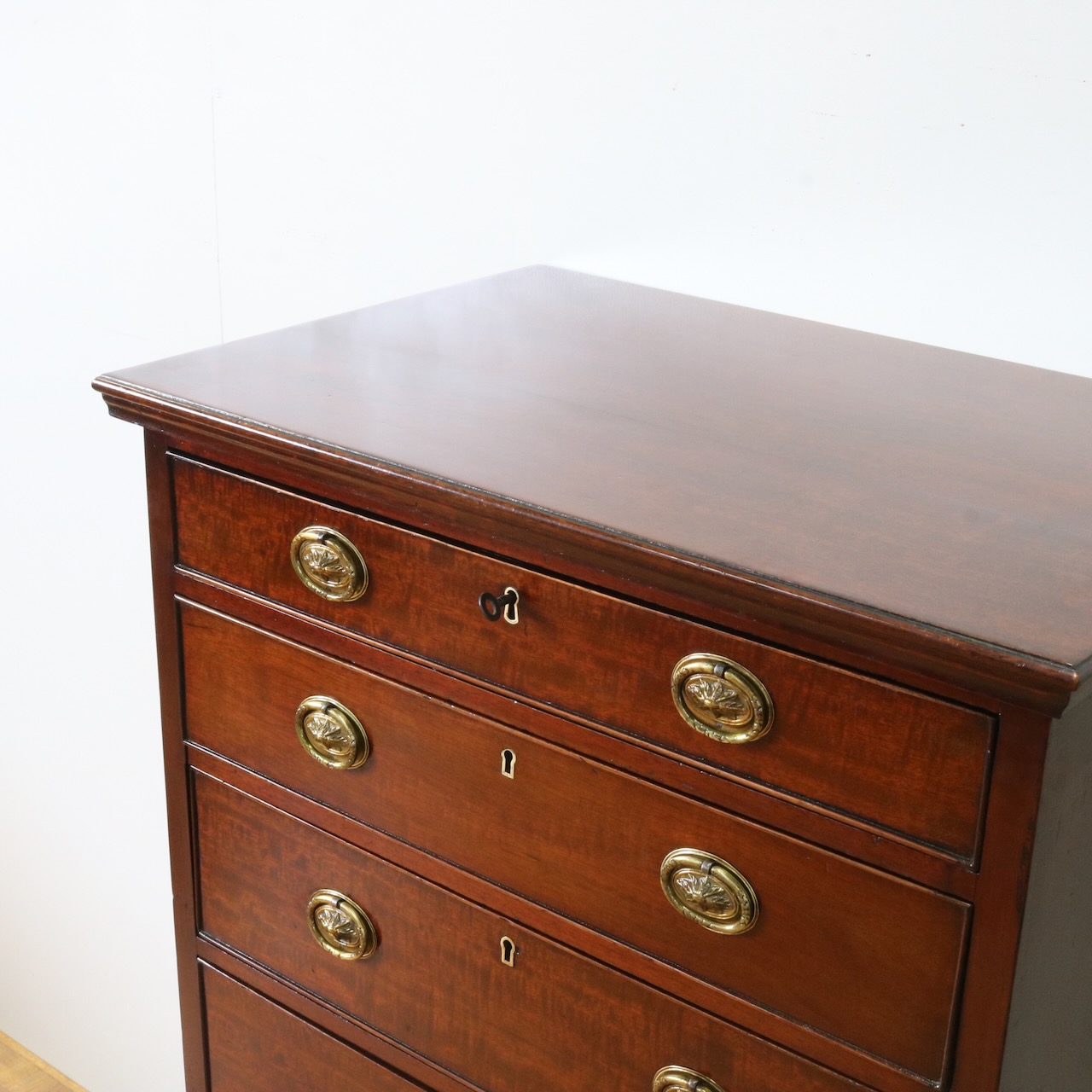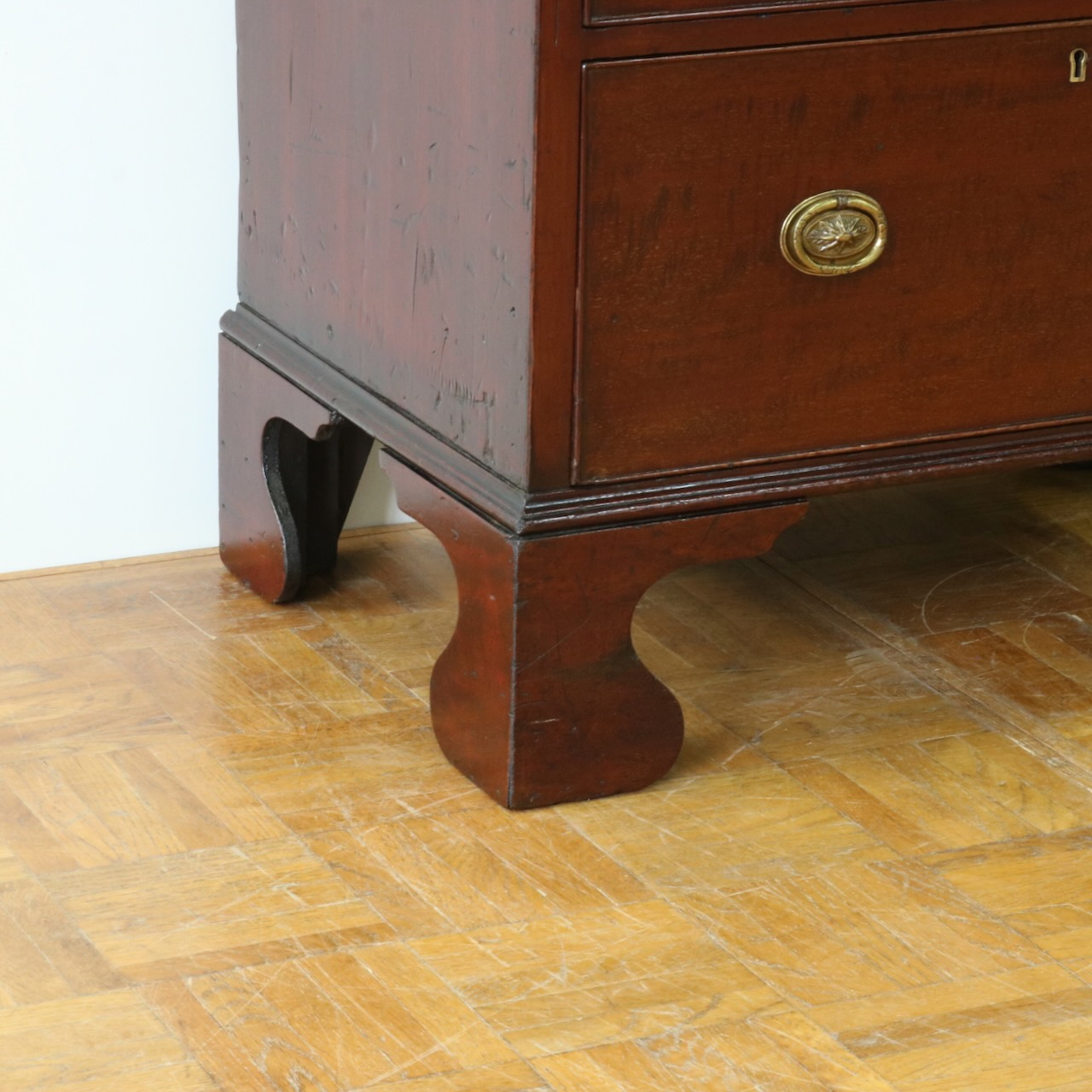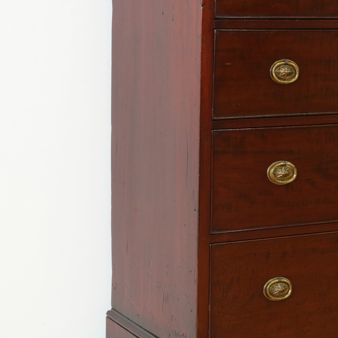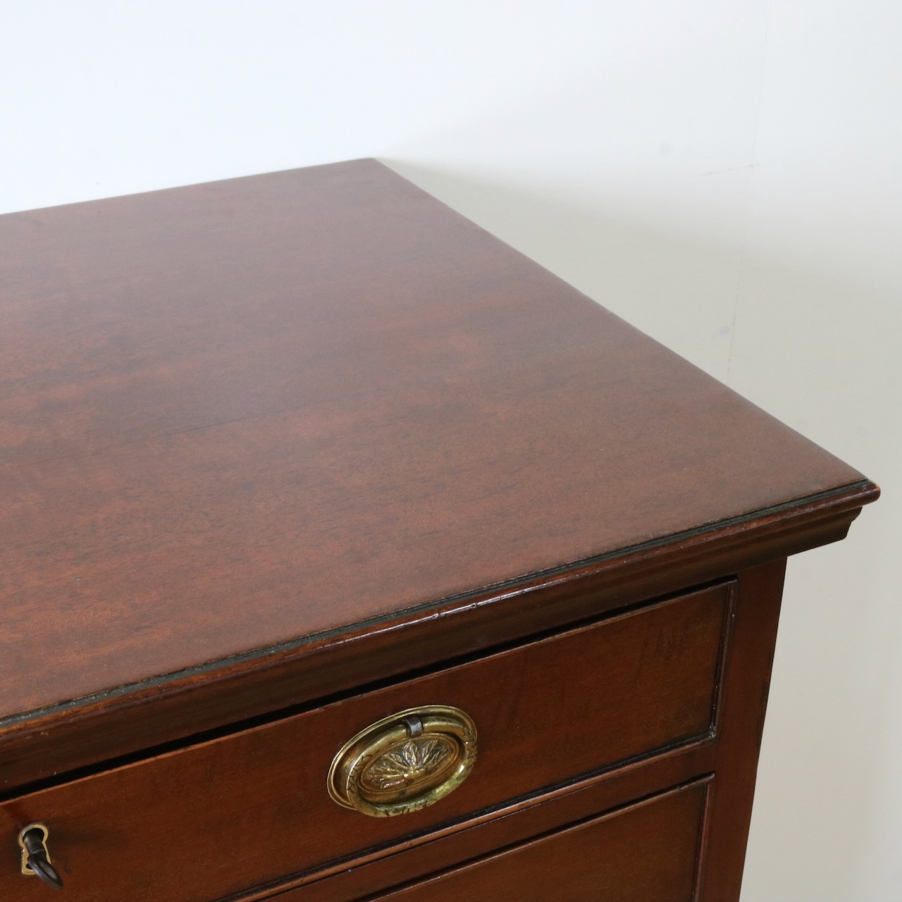 配送料の目安 ▶︎1920年代、マホガニーのチェスト。シンプルな本体にブラケットフィートの脚元と真鍮の引き手がアクセント。6段の収納力で実用性の高さも魅力的。