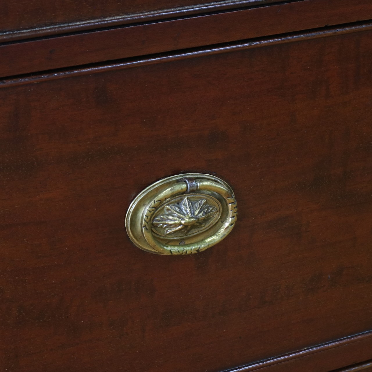 真鍮製の引き手金具もクラシックな佇まいを引き立てています。