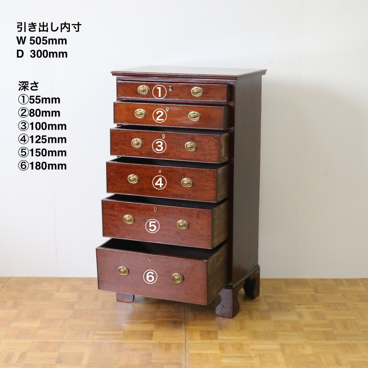 引き出しは下にいくにつれ少しずつ深くなっていきます。