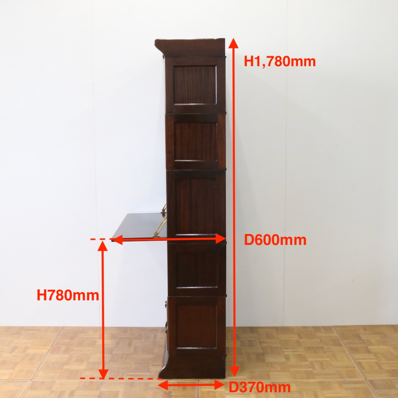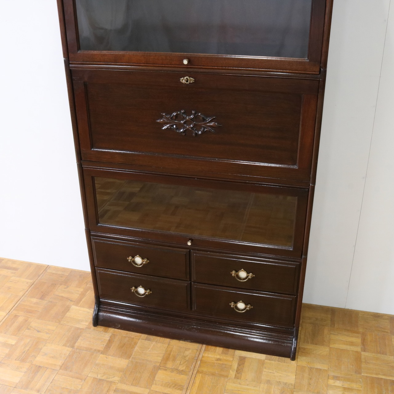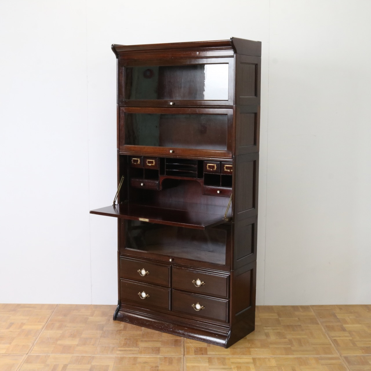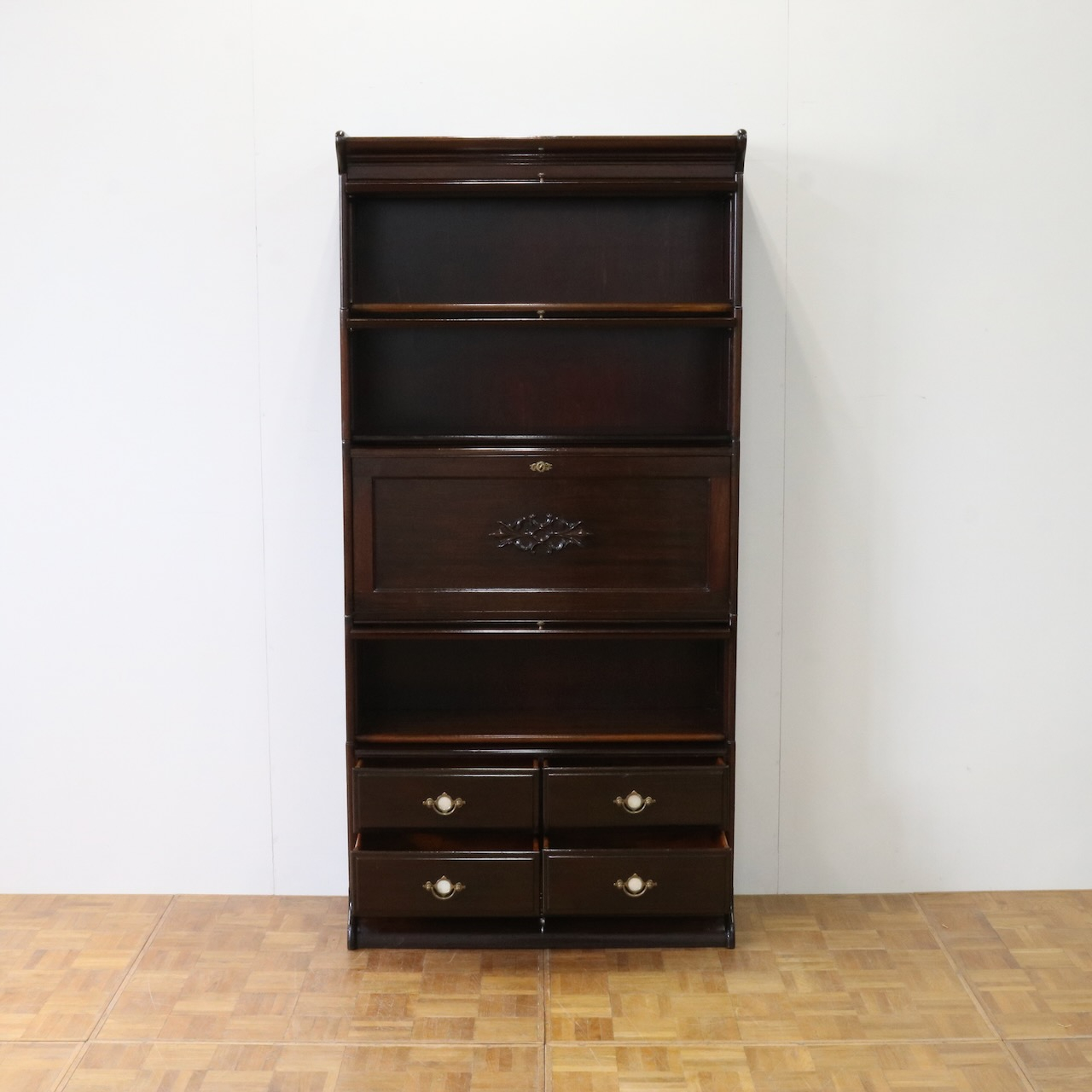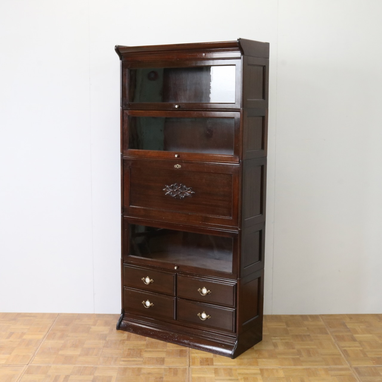 配送料の目安 ▶︎1930年代、マホガニーのスタッキングブックケース。本棚、ライティングスペース、引き出しがワンセットになった実用性の高い仕様。すっきりとしたデザインでマホガニーの上品な艶のある風合いも引き立ちます。