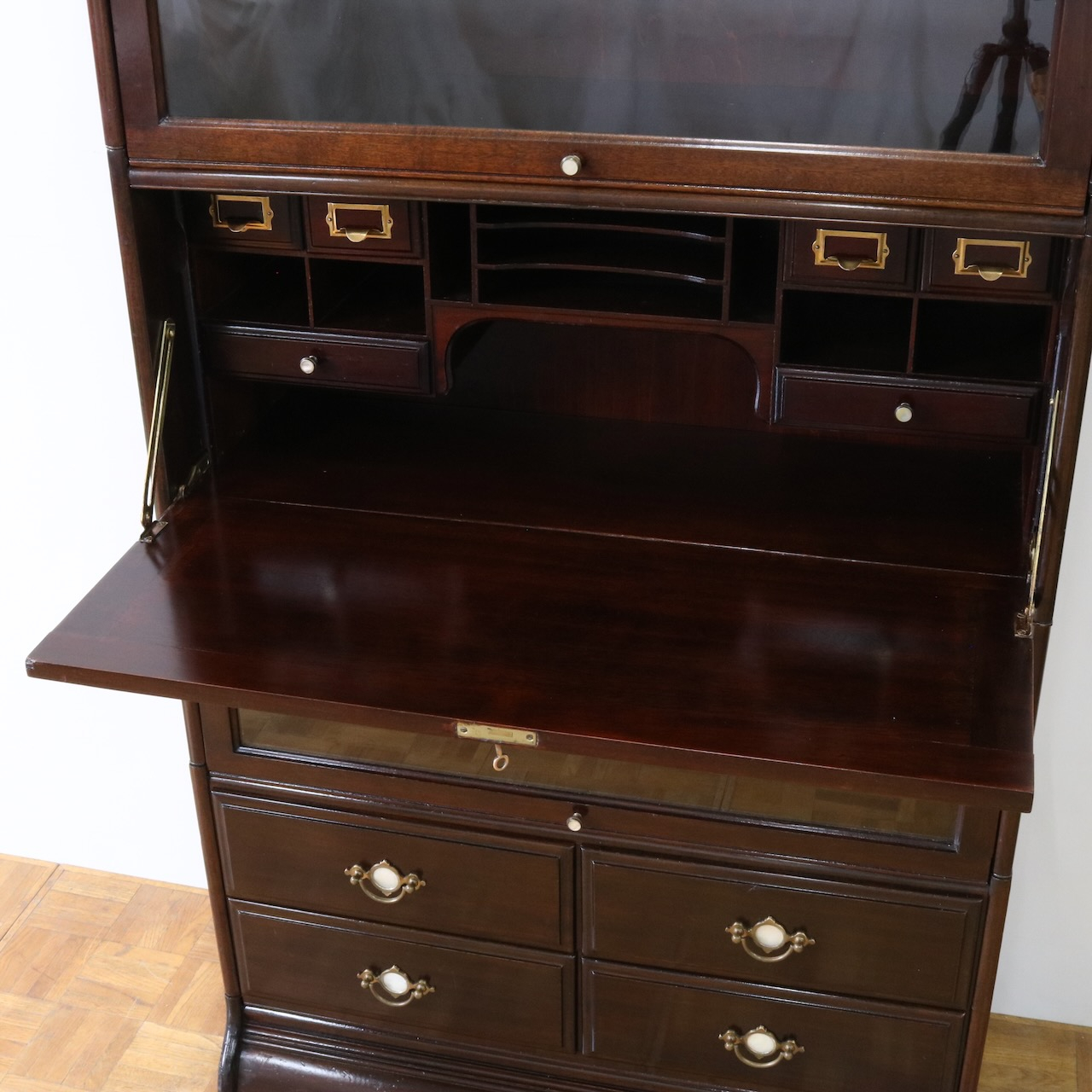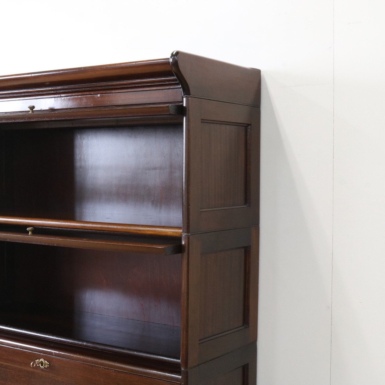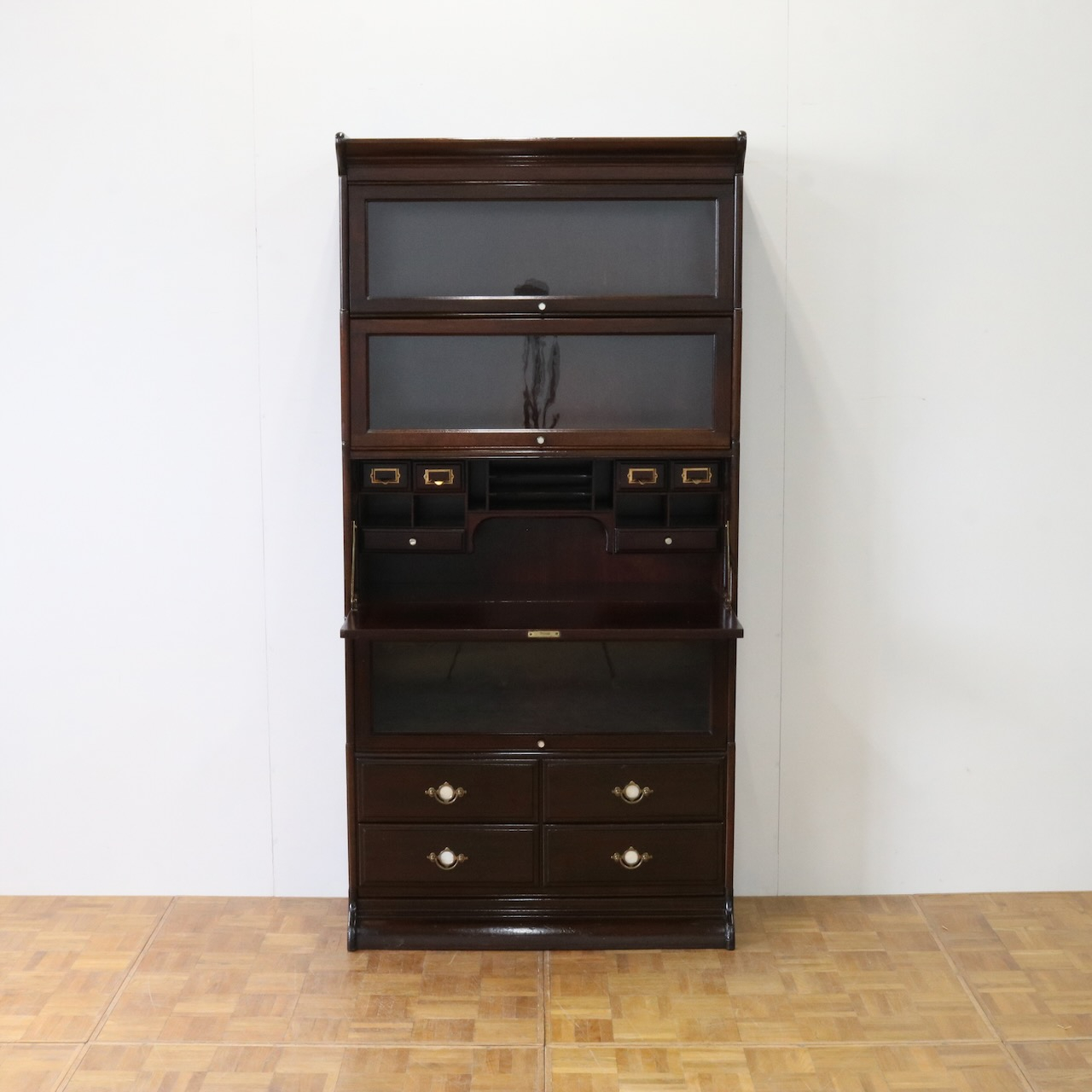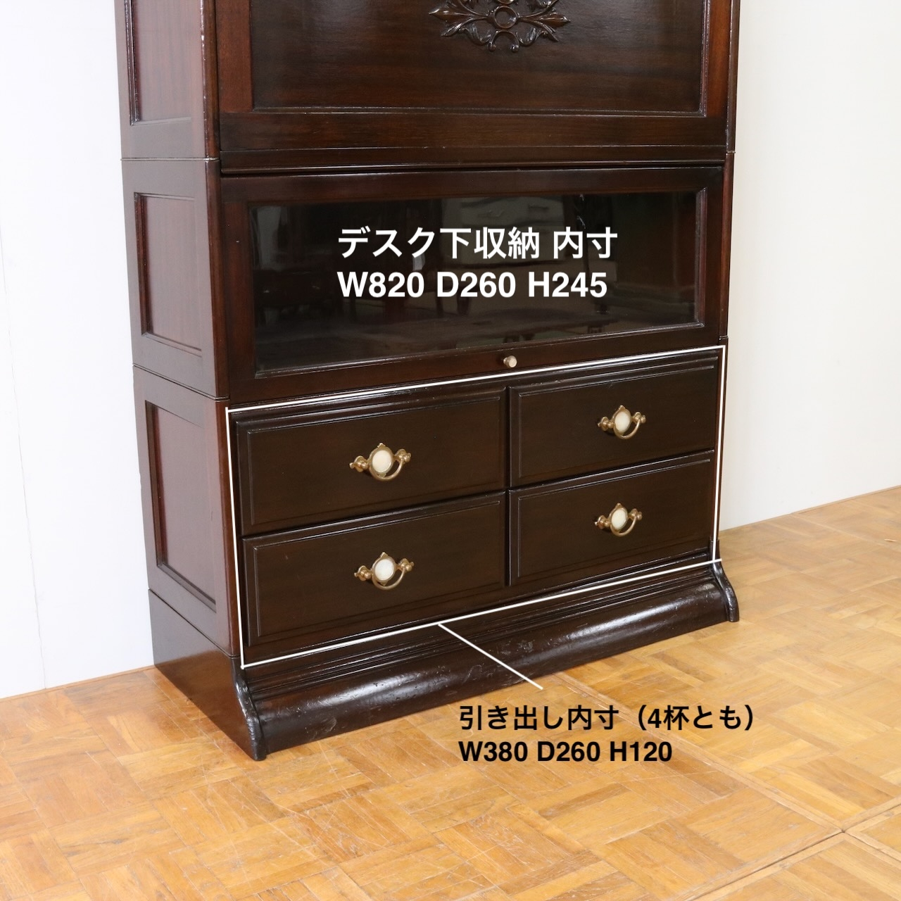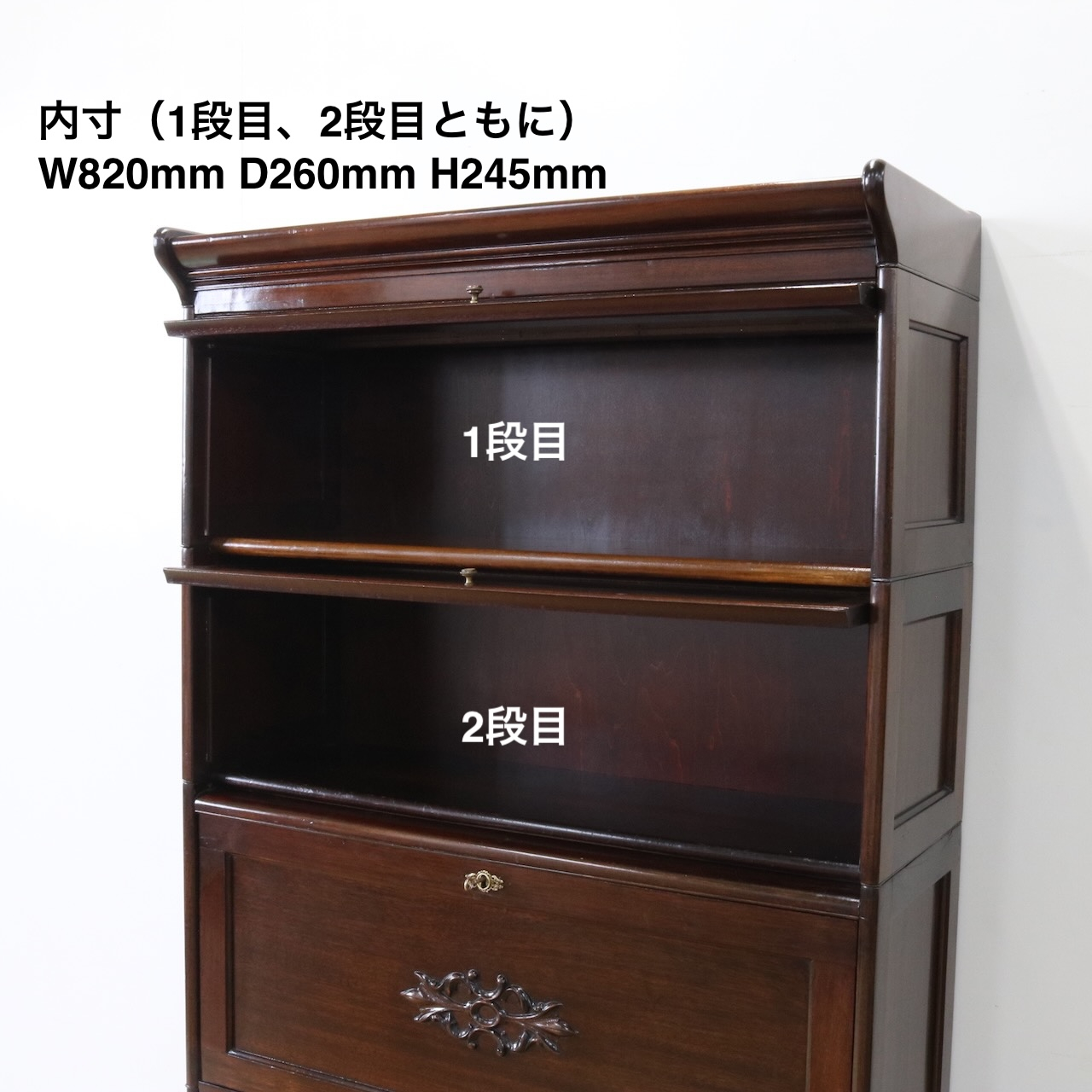 配送料の目安 ▶︎1930年代、マホガニーのスタッキングブックケース。本棚、ライティングスペース、引き出しがワンセットになった実用性の高い仕様。すっきりとしたデザインでマホガニーの上品な艶のある風合いも引き立ちます。