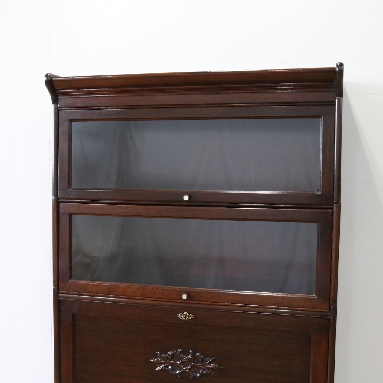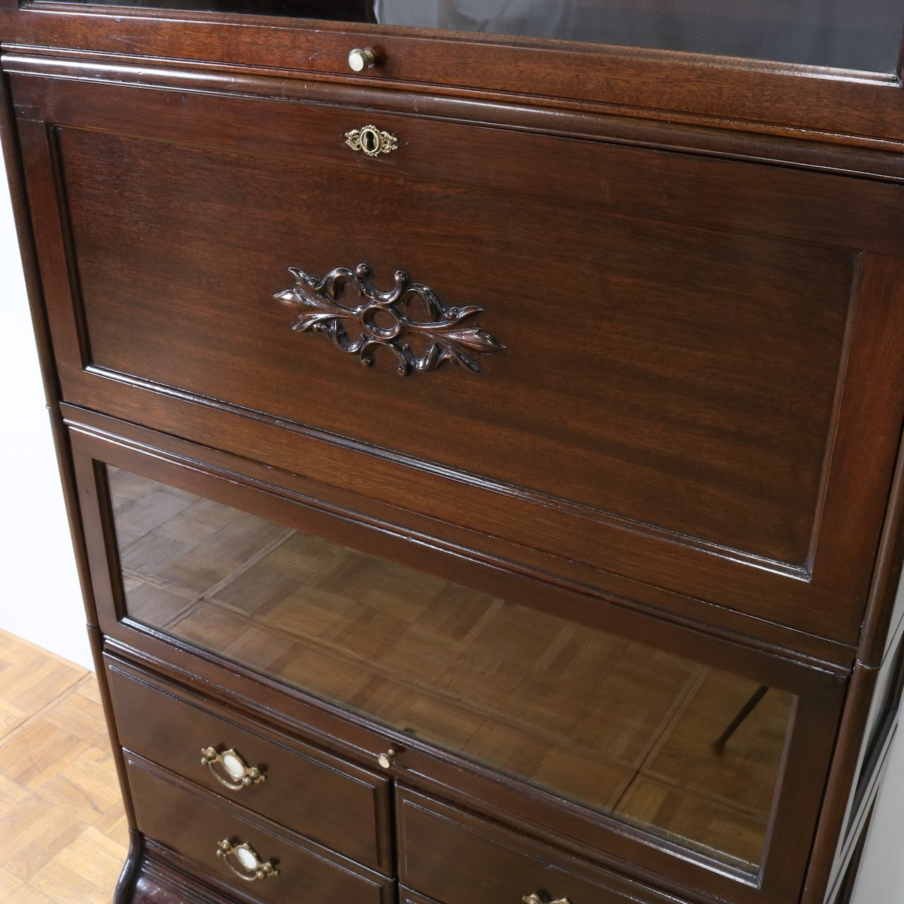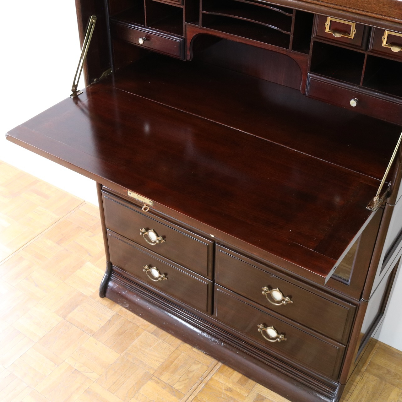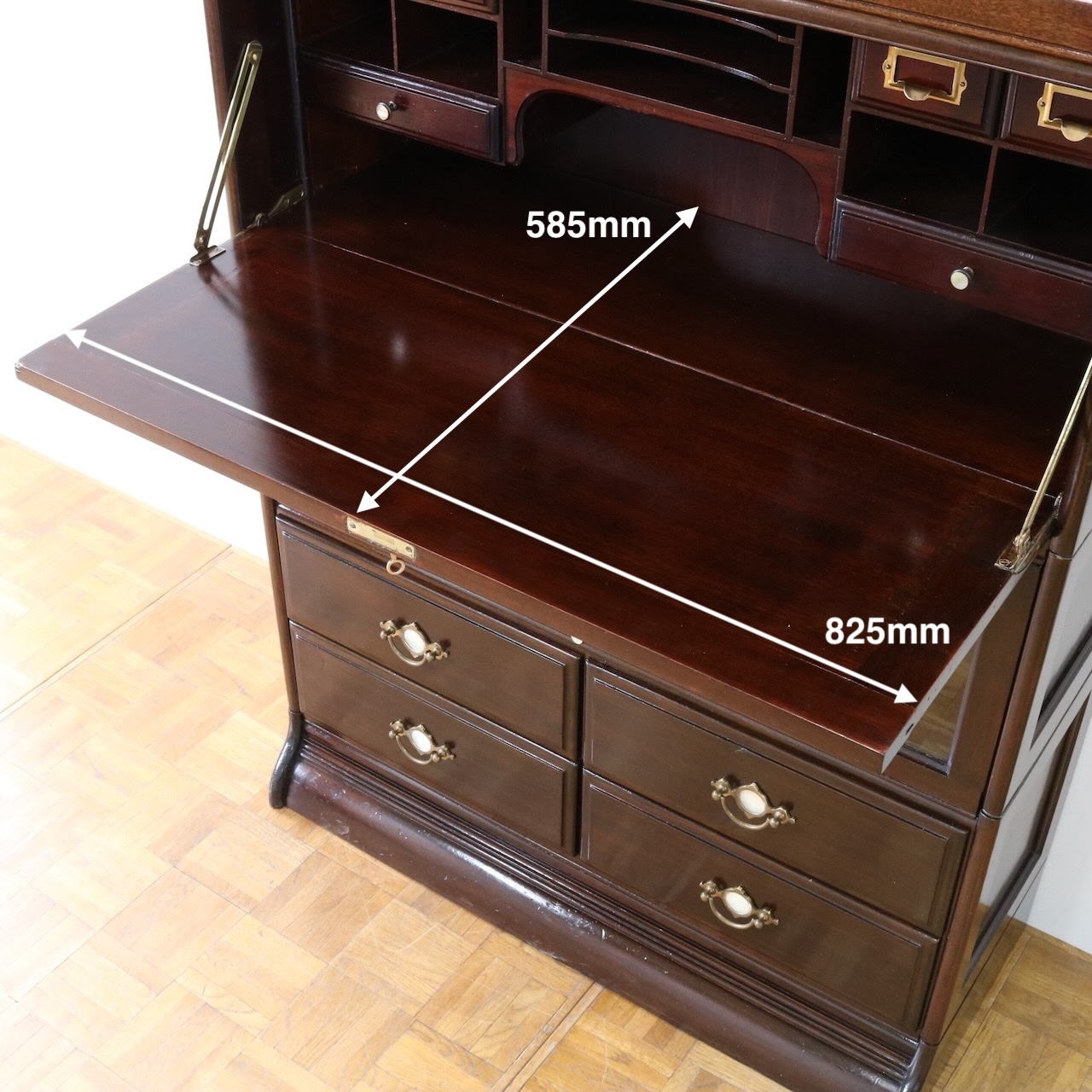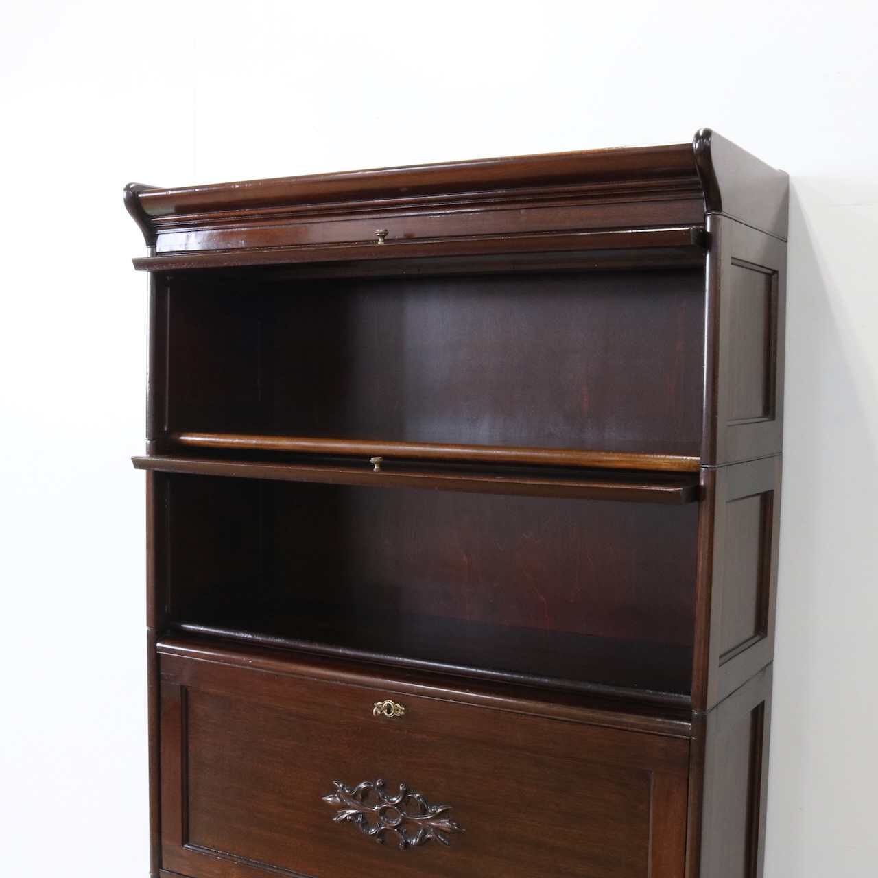 配送料の目安 ▶︎1930年代、マホガニーのスタッキングブックケース。本棚、ライティングスペース、引き出しがワンセットになった実用性の高い仕様。すっきりとしたデザインでマホガニーの上品な艶のある風合いも引き立ちます。