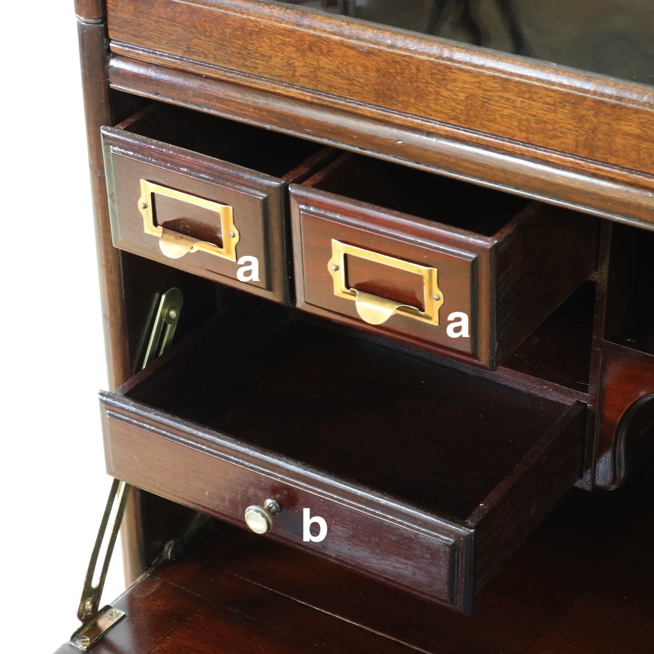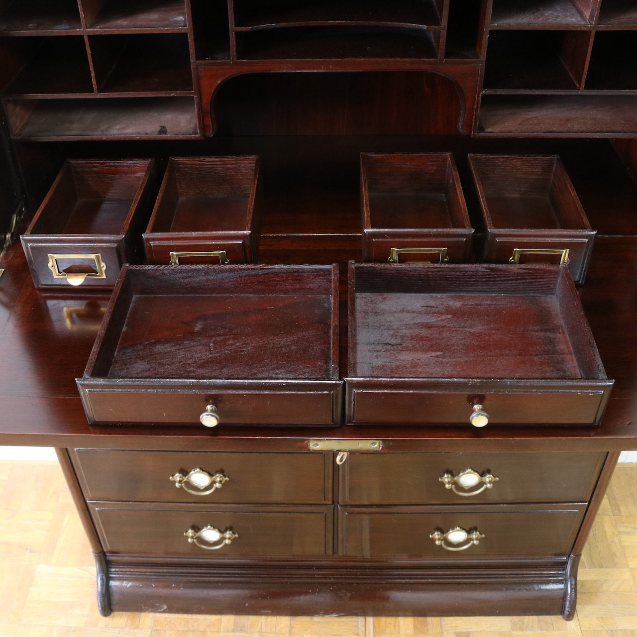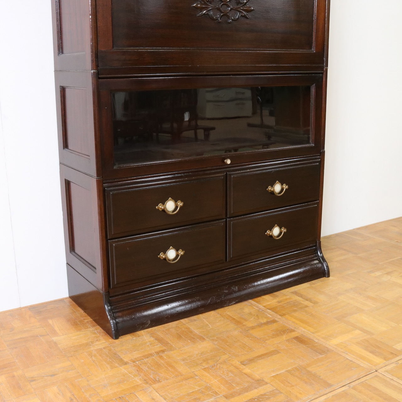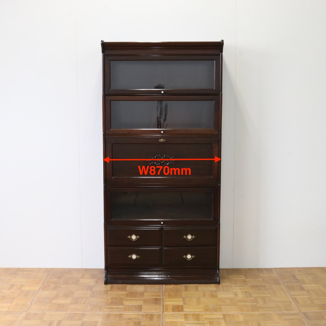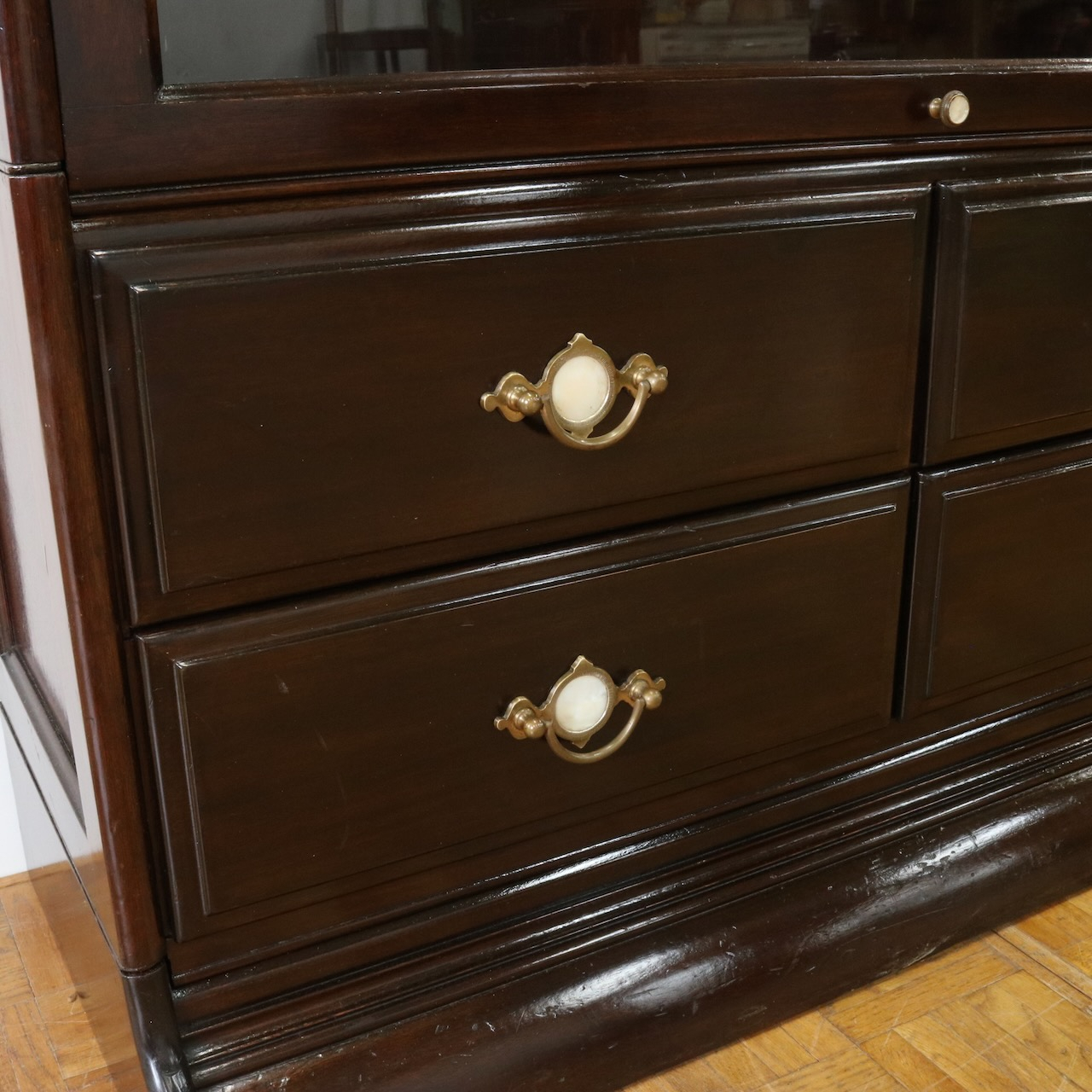 配送料の目安 ▶︎1930年代、マホガニーのスタッキングブックケース。本棚、ライティングスペース、引き出しがワンセットになった実用性の高い仕様。すっきりとしたデザインでマホガニーの上品な艶のある風合いも引き立ちます。