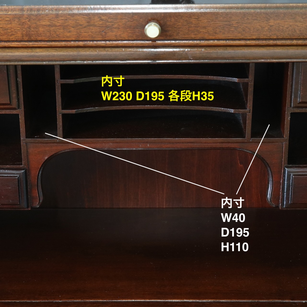 お仕事や勉強をするのに十分なスペース。マホガニーのつやが美しいですね。