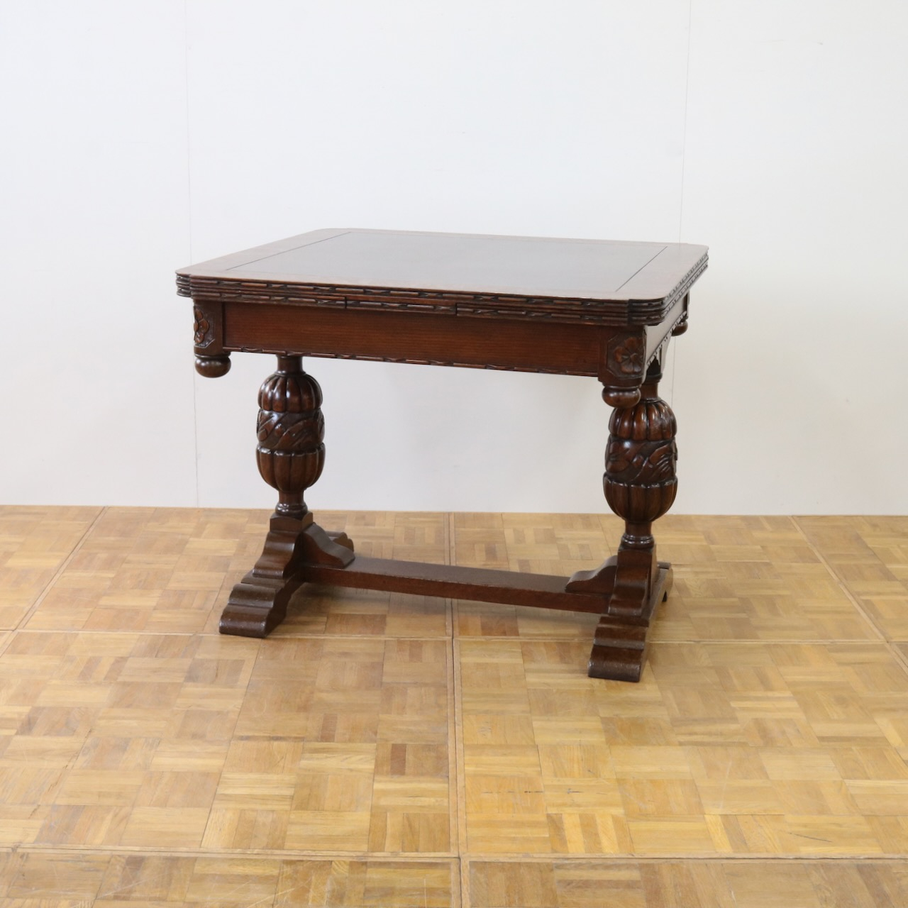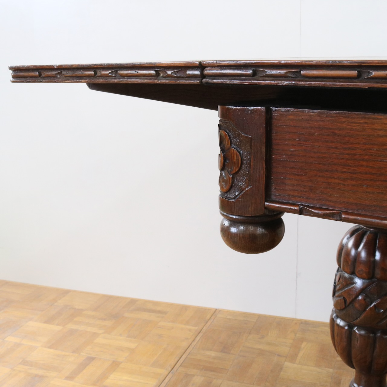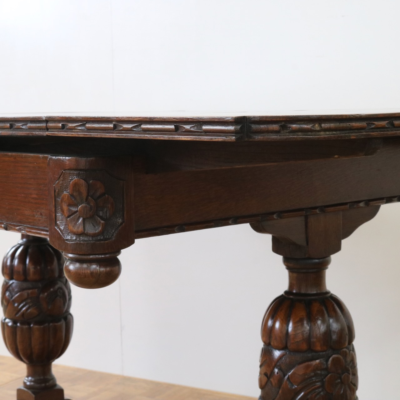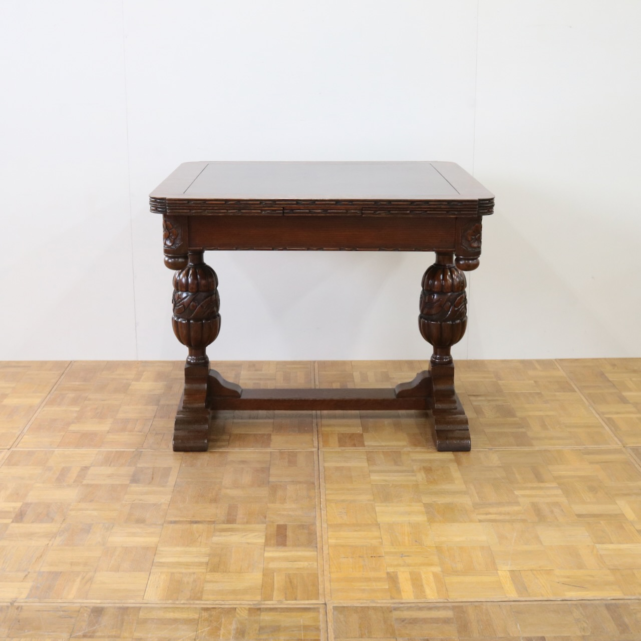 約90cm角の正方形天板にブルボースレッグのアンティークらしいオーソドックスなデザインで、