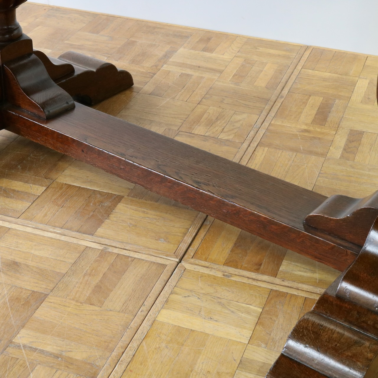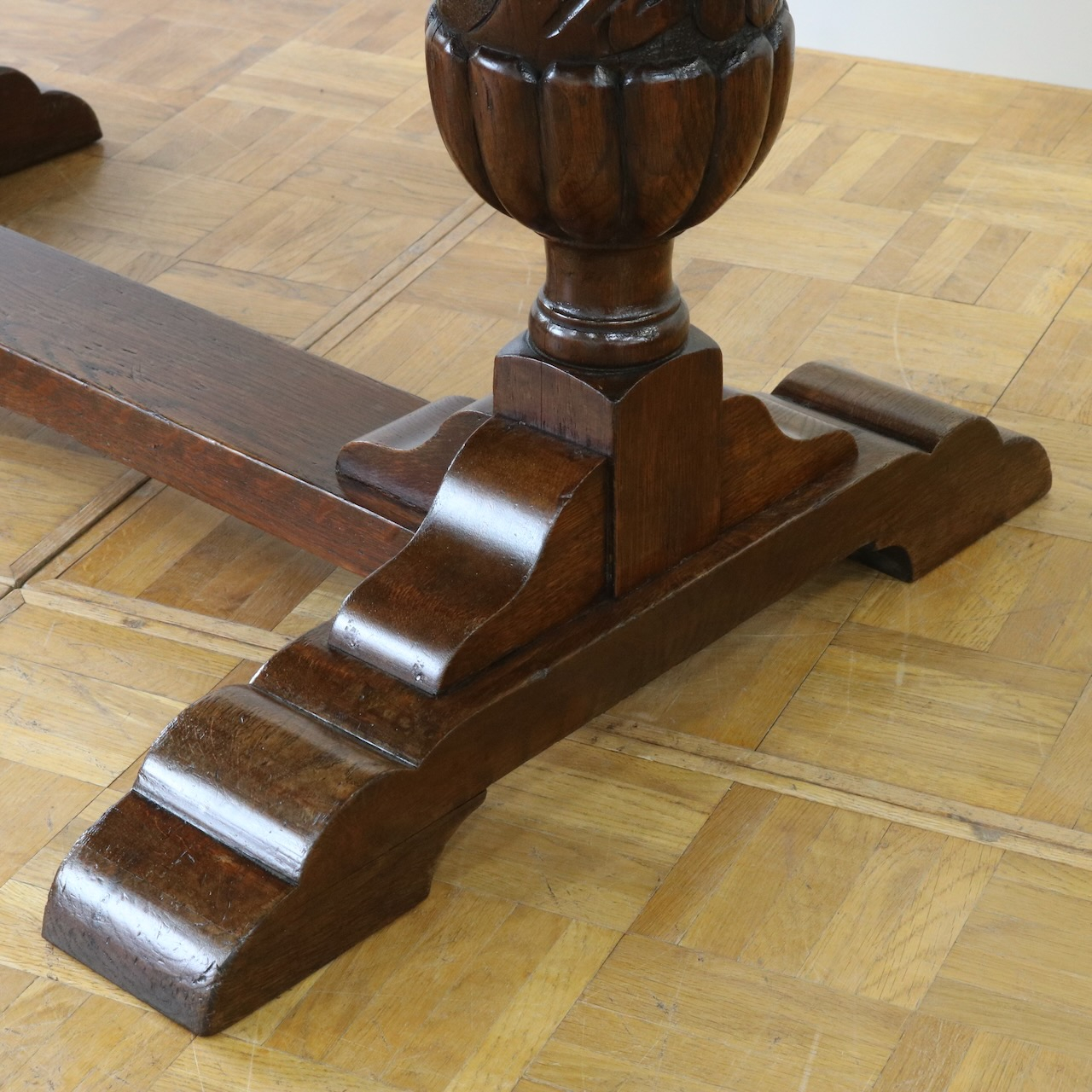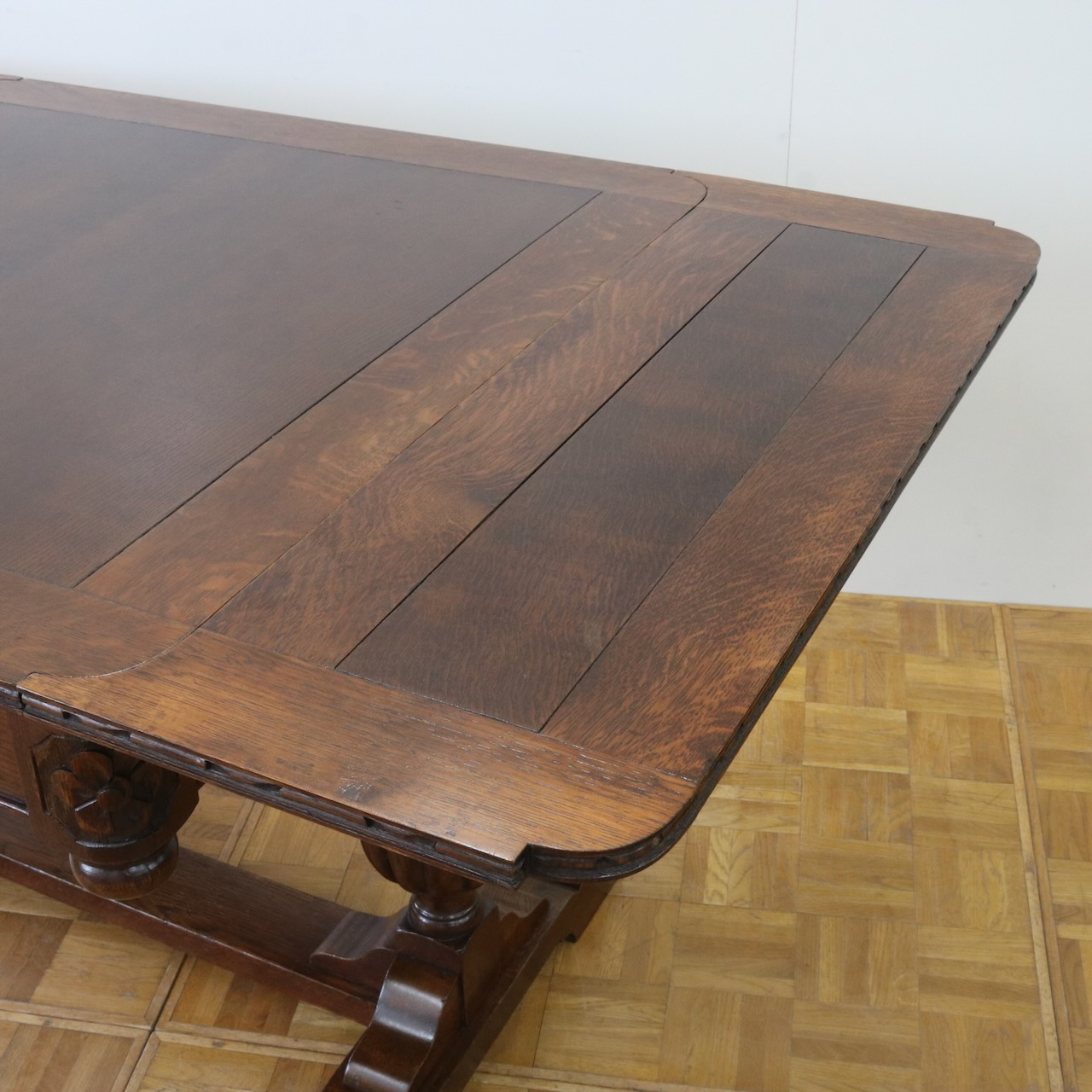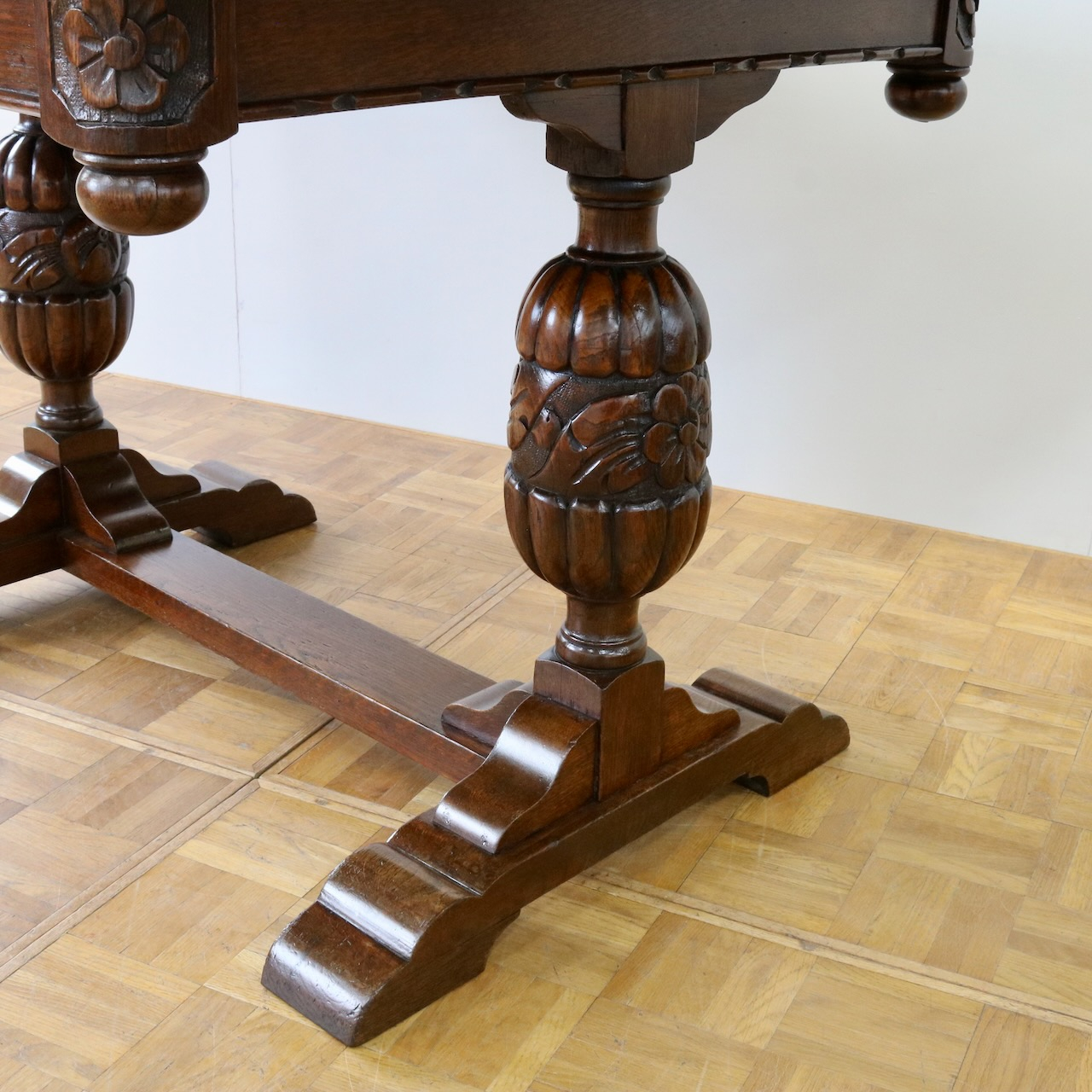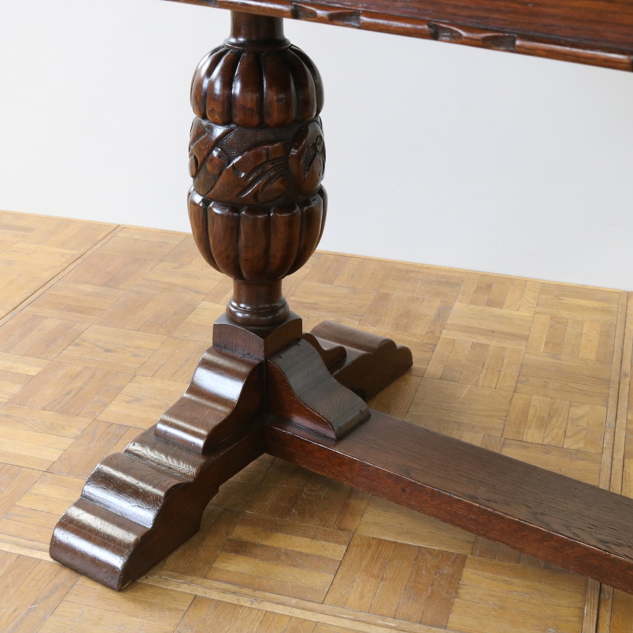 約90cm角の正方形天板にブルボースレッグのアンティークらしいオーソドックスなデザインで、