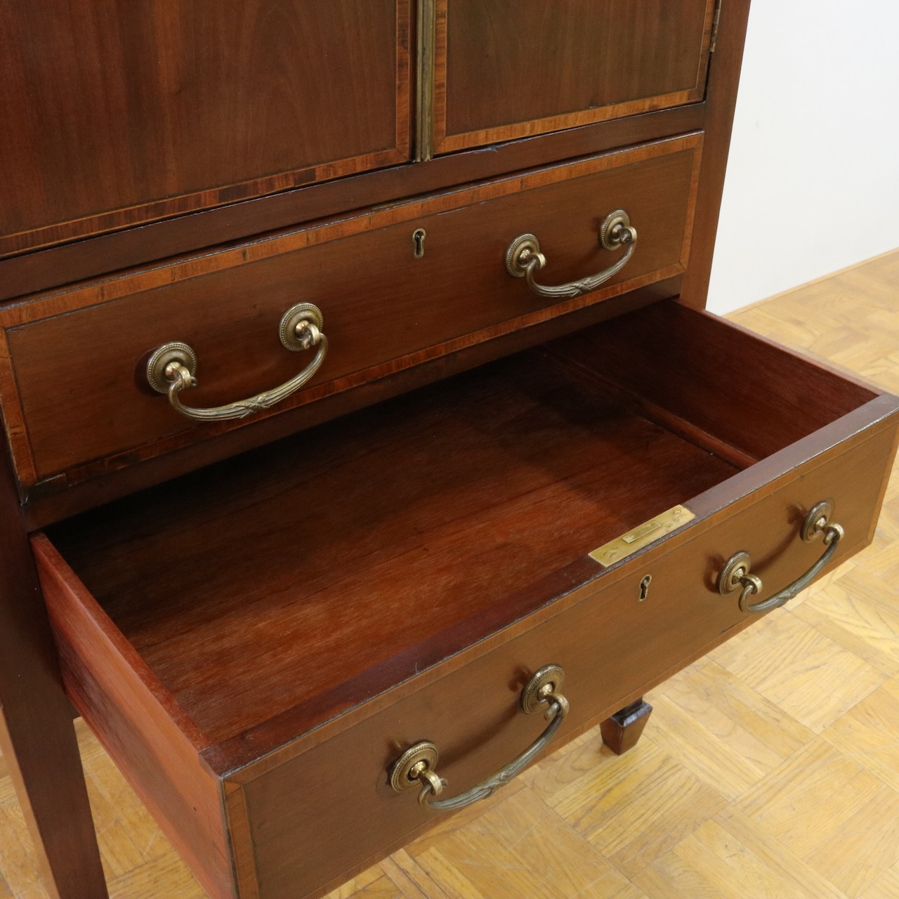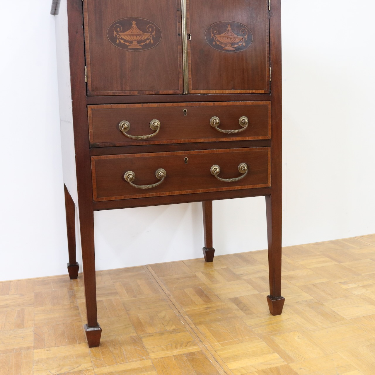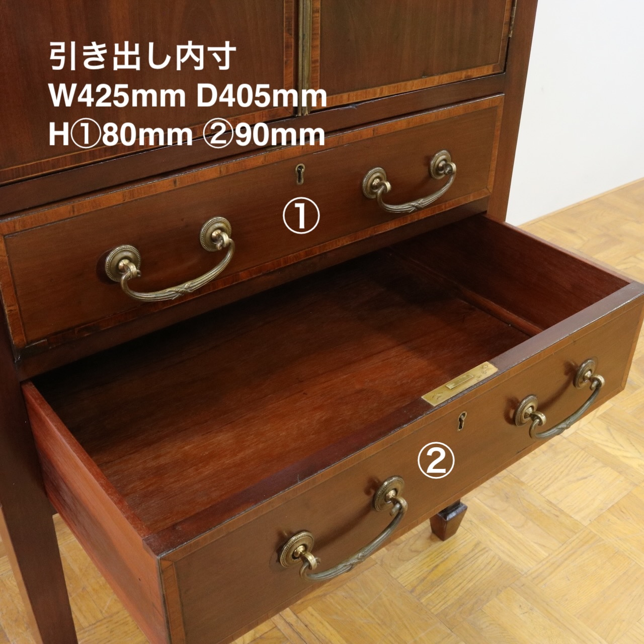 下段は隠す収納。観音開きの扉には古代ギリシャ・ローマ風のインレイ装飾があしらわれています。