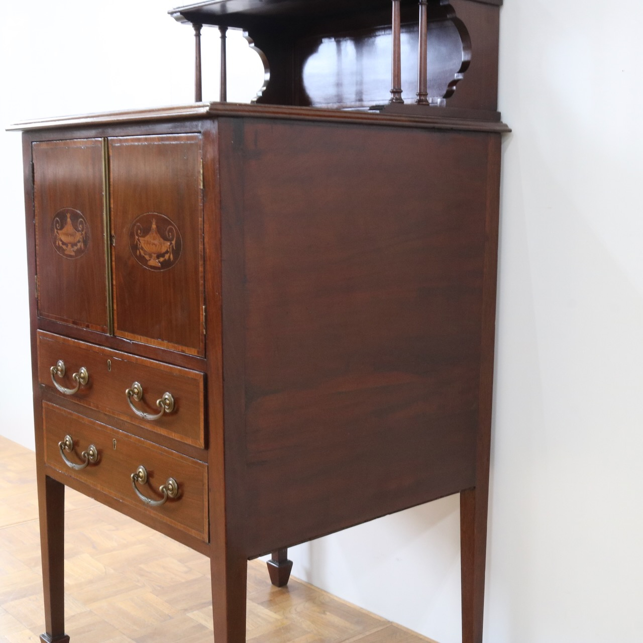 エドワーディアンらしい繊細なインレイ細工が施され、桟のデザインも印象的です。