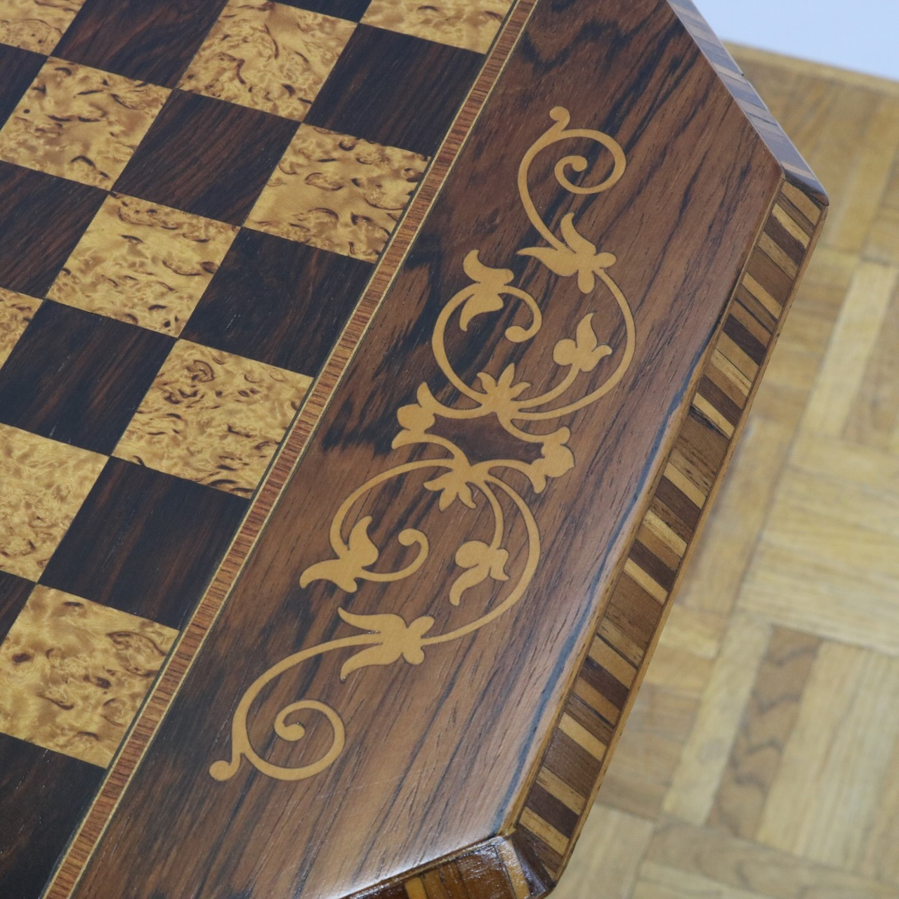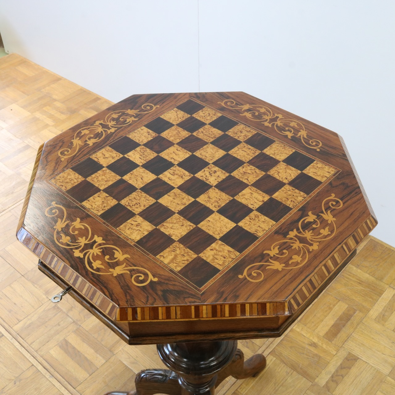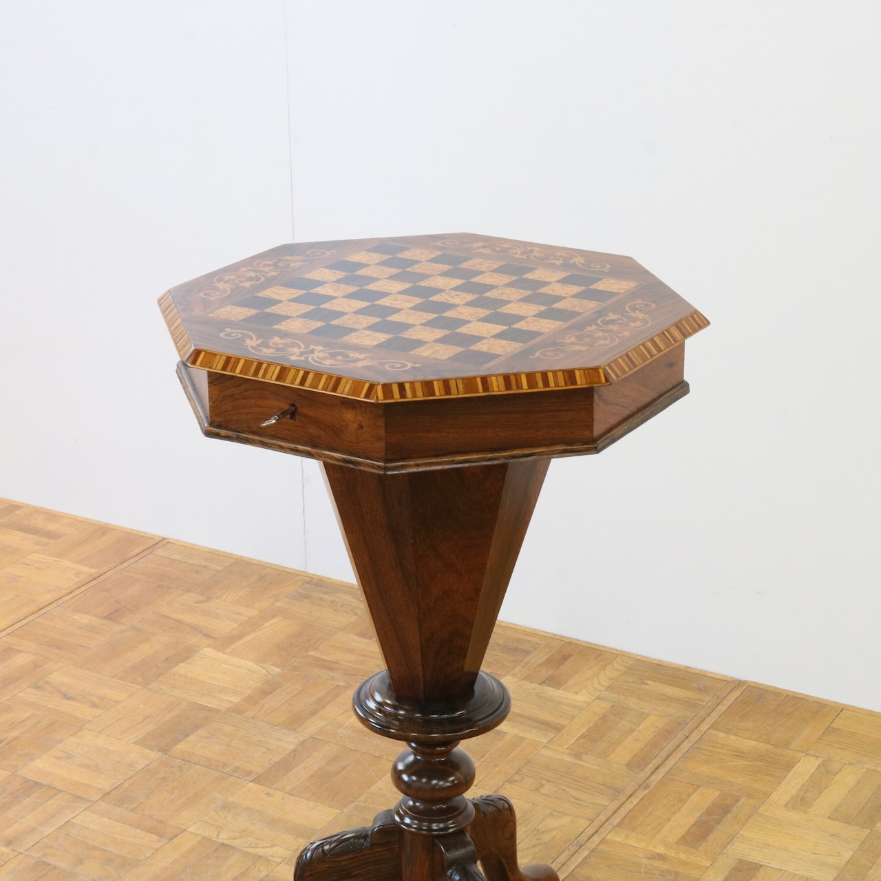 天板はチェスボードとしても使えるようにインレイで模様が入っています。