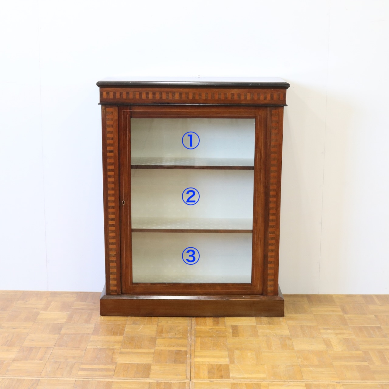 配送料の目安 ▶︎1880年代ヴィクトリアン期、ウォールナット材のグラスキャビネット。