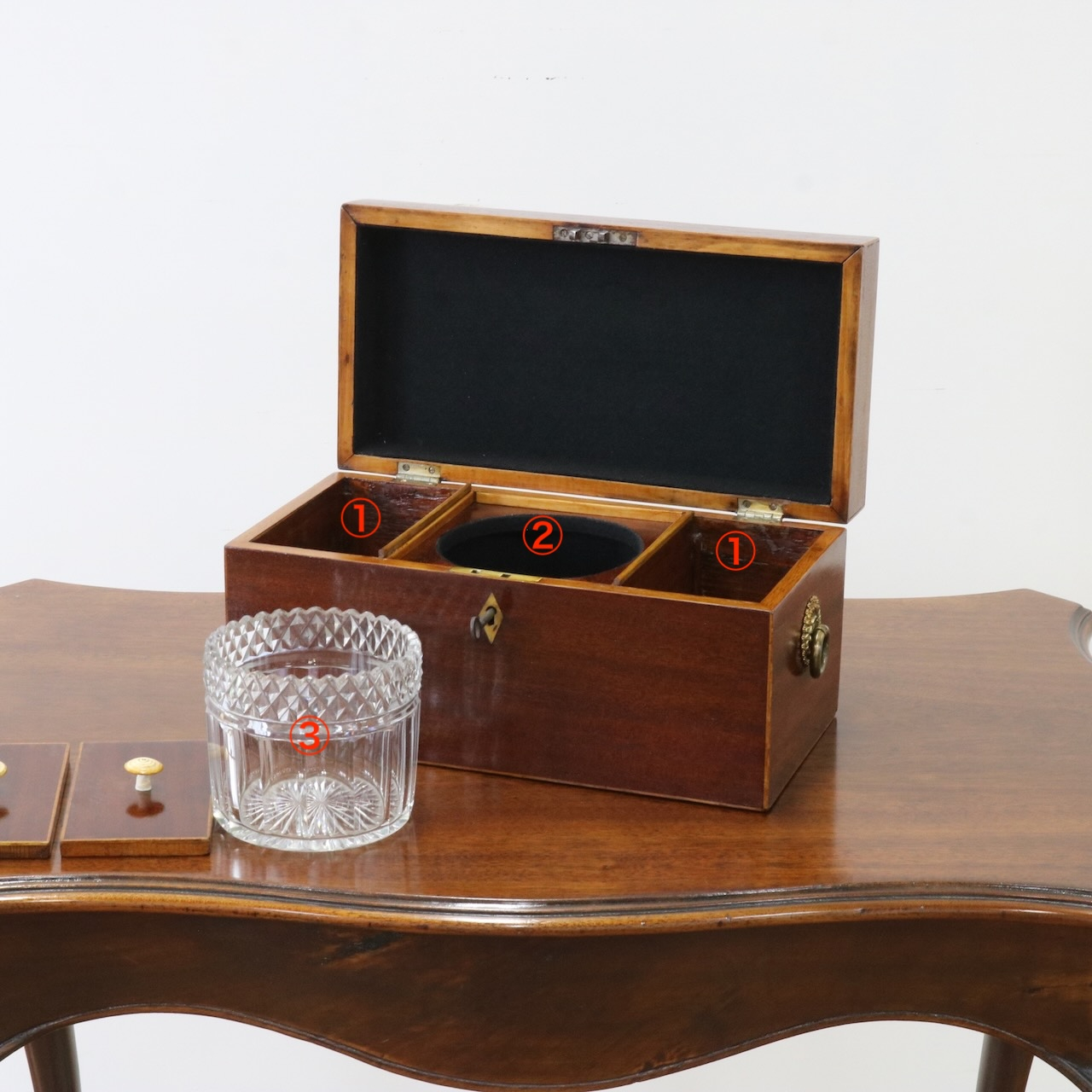 配送料の目安 ▶︎1910年代、英国製のティーキャディ。エドワーディアンのマホガニー材で作られた紅茶を保存しておく卓上のケースです。