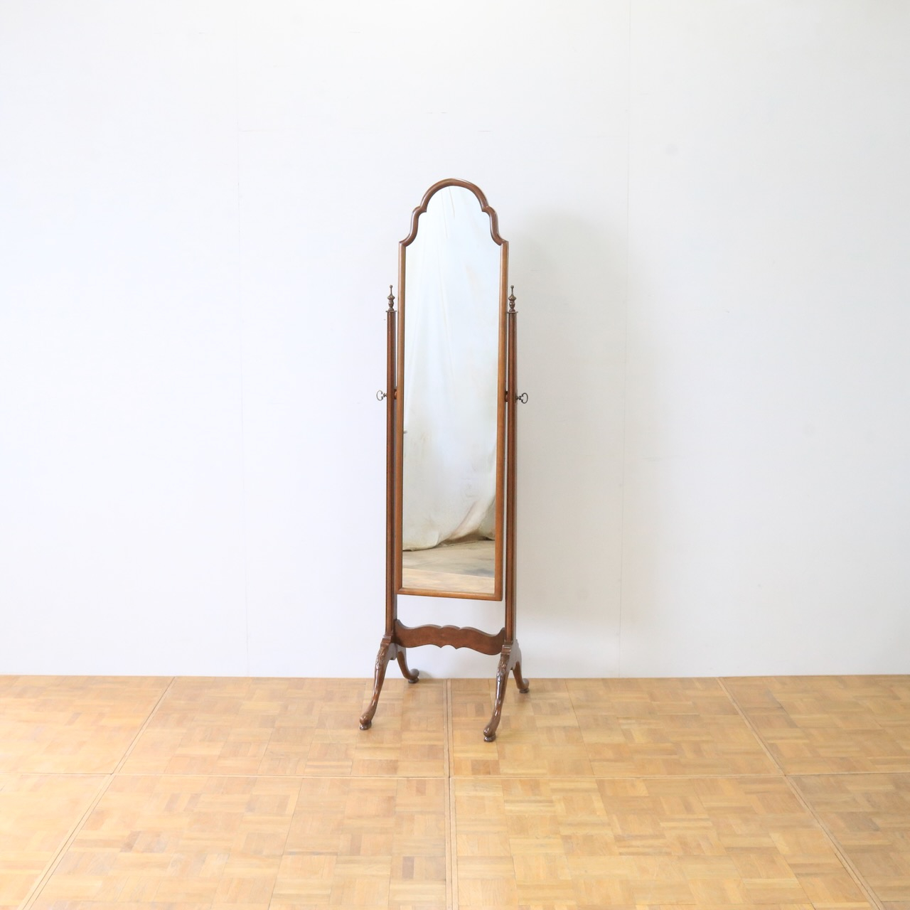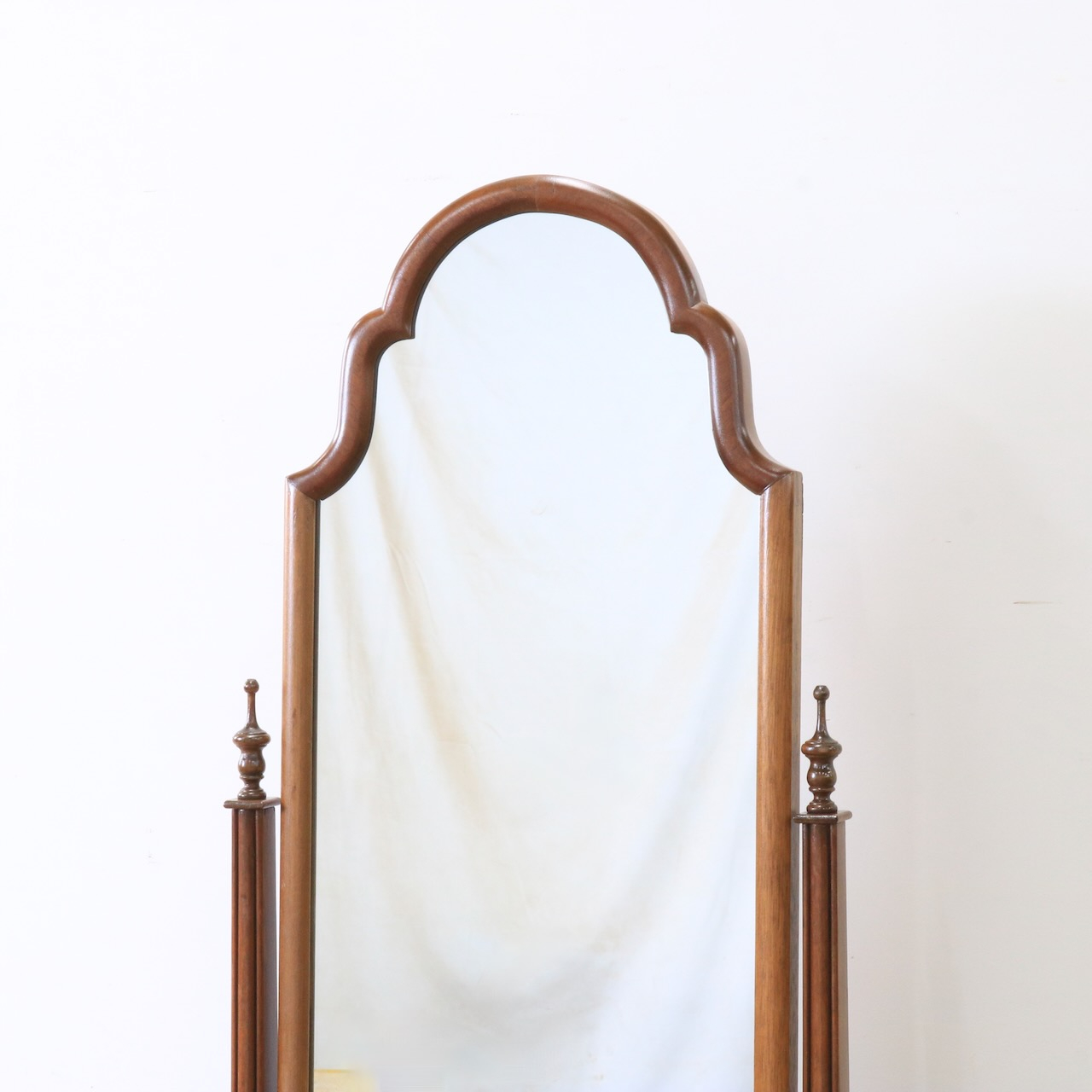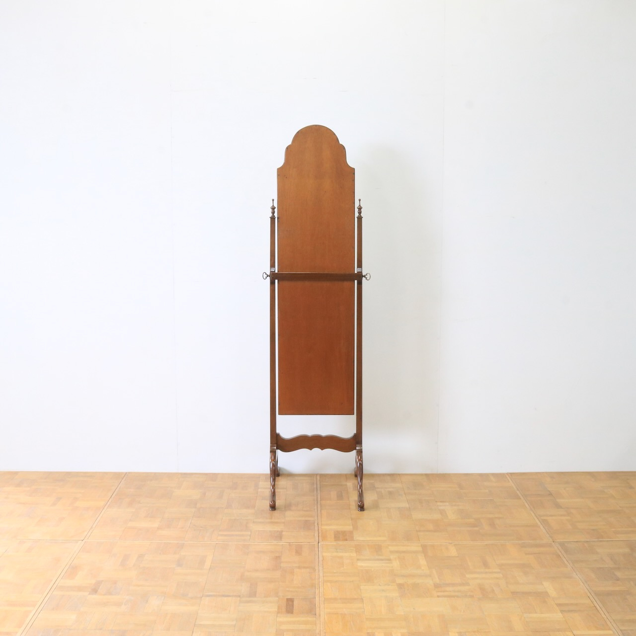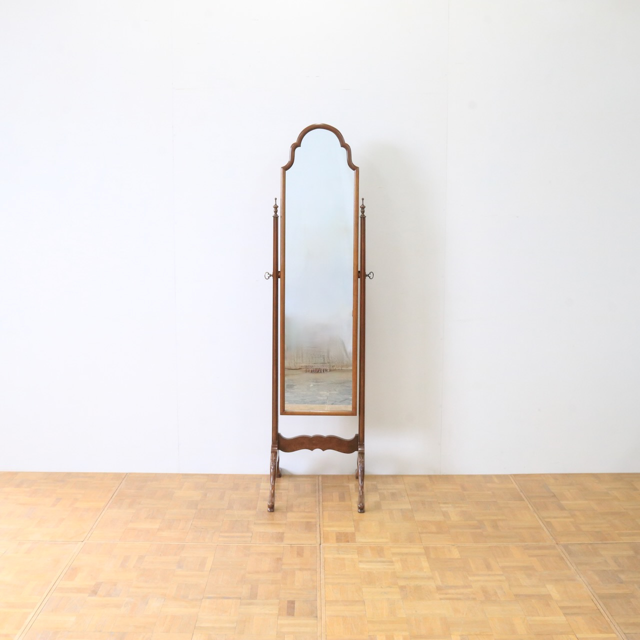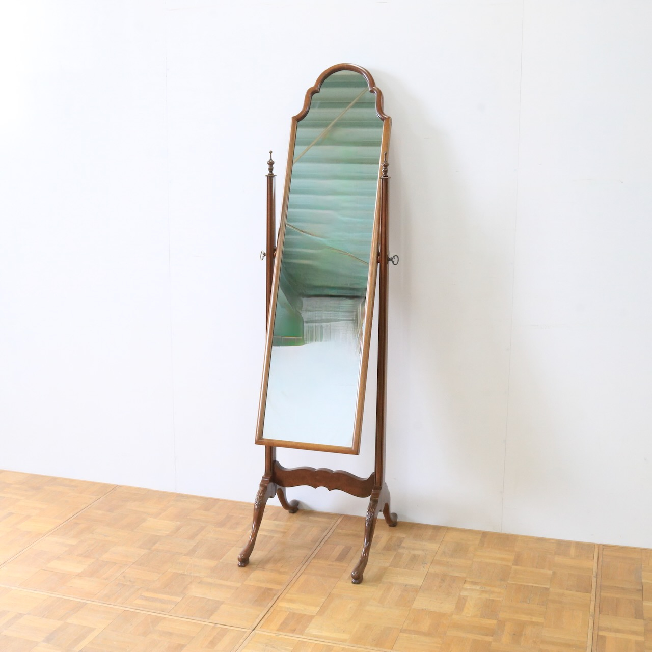 柔らかいカーブしたデザインが優しい雰囲気の姿見です。しっかりと全身を映すことができます。
