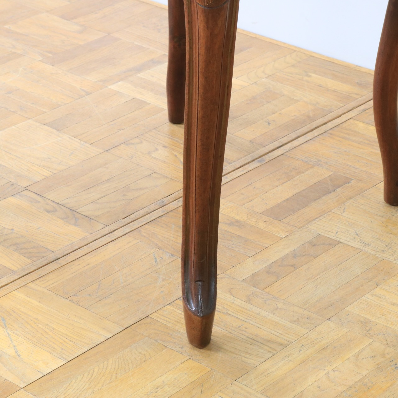 脚元にもお花の彫刻が。スラリとしたガブリオールレッグとの相性も良く、脚先まで技巧が凝らされたアンティークチェアーです。