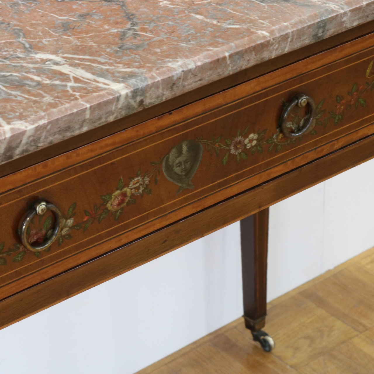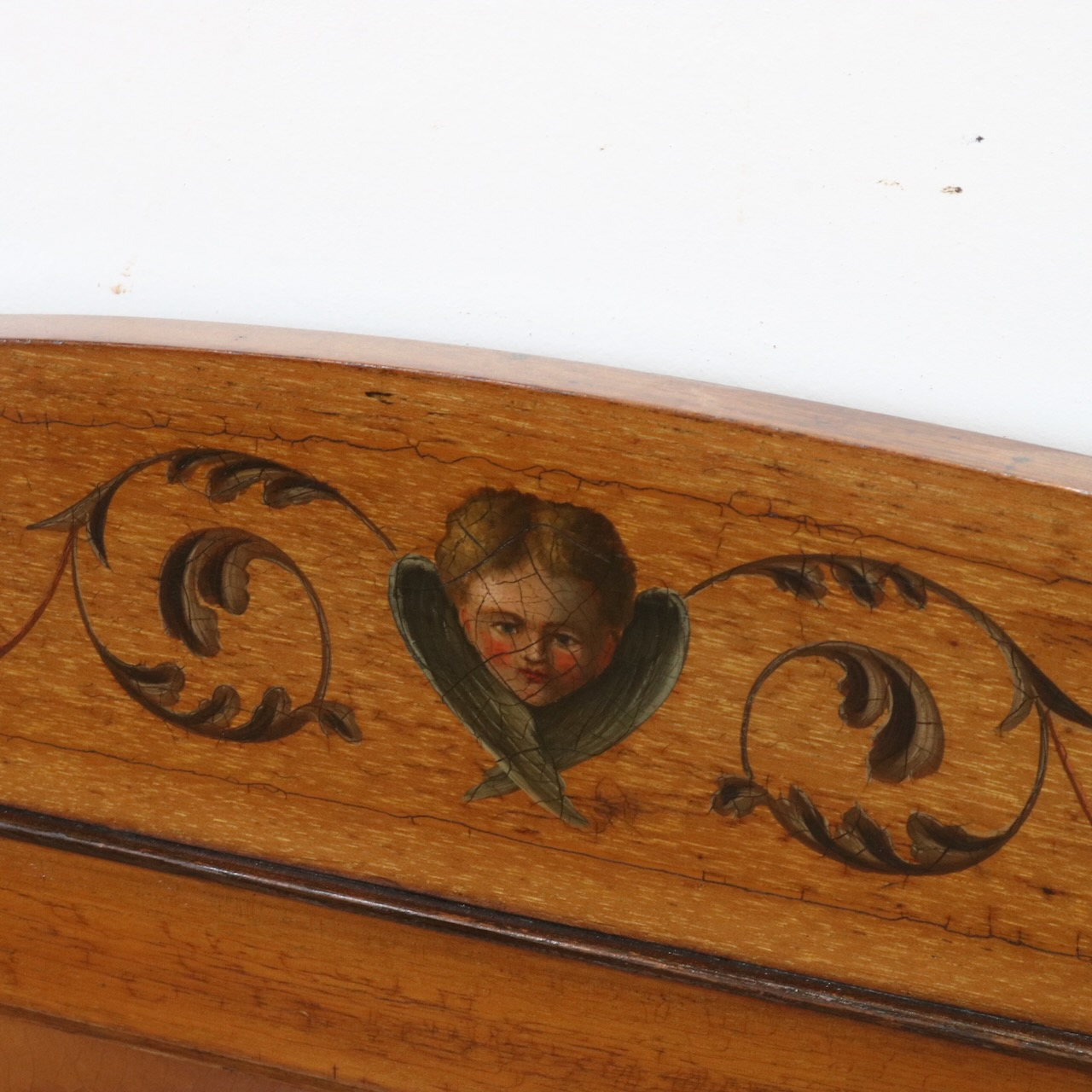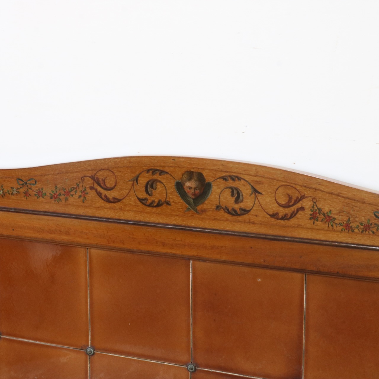 エンジェルとリーフ、リボンのペイントが可愛らしく優雅。昔の洗面台としての役割でタイルと大理石が使われています。