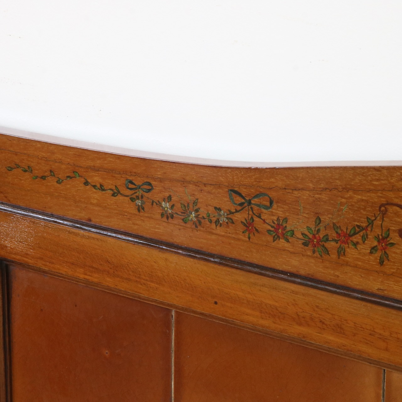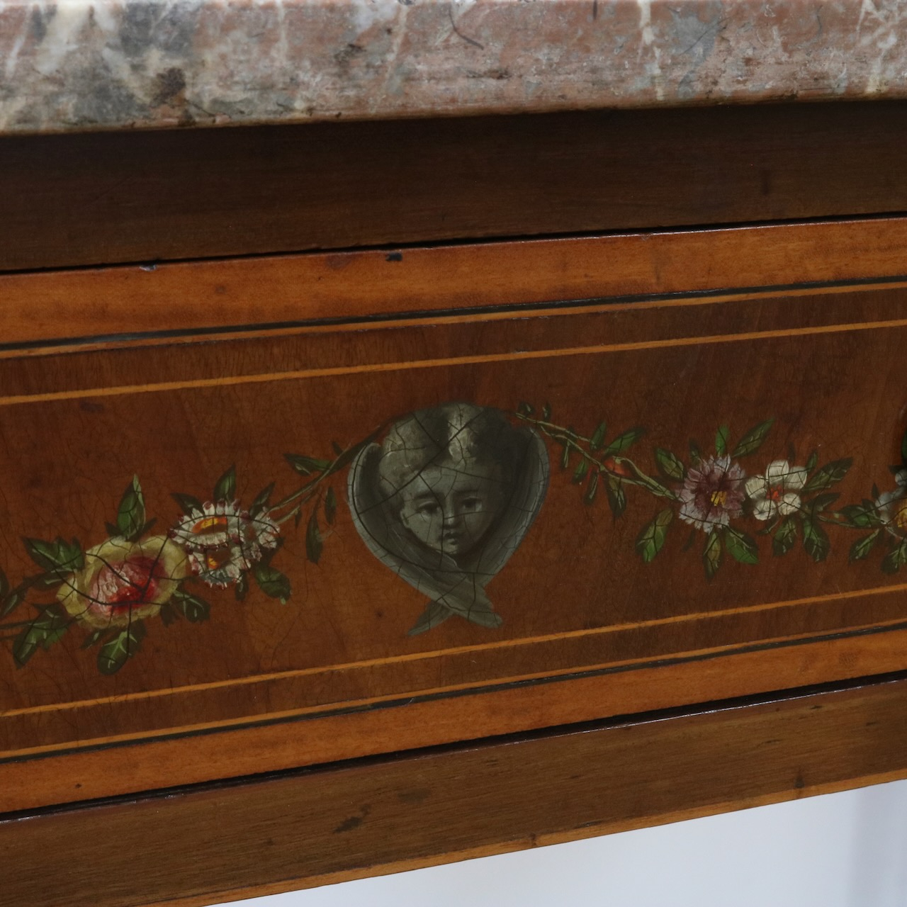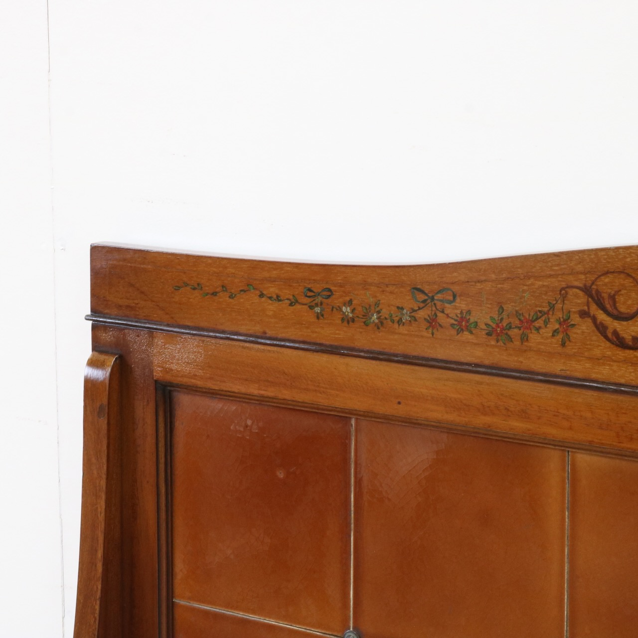 エンジェルとリーフ、リボンのペイントが可愛らしく優雅。昔の洗面台としての役割でタイルと大理石が使われています。