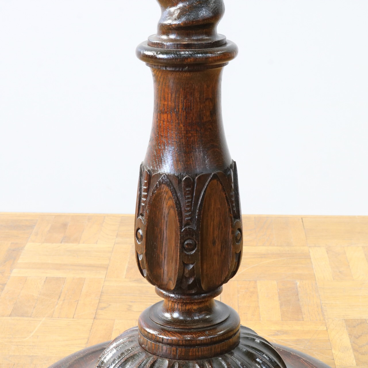オーク材によく見られるツイストの技巧が全体に用いられ、クラシカルな佇まいです。