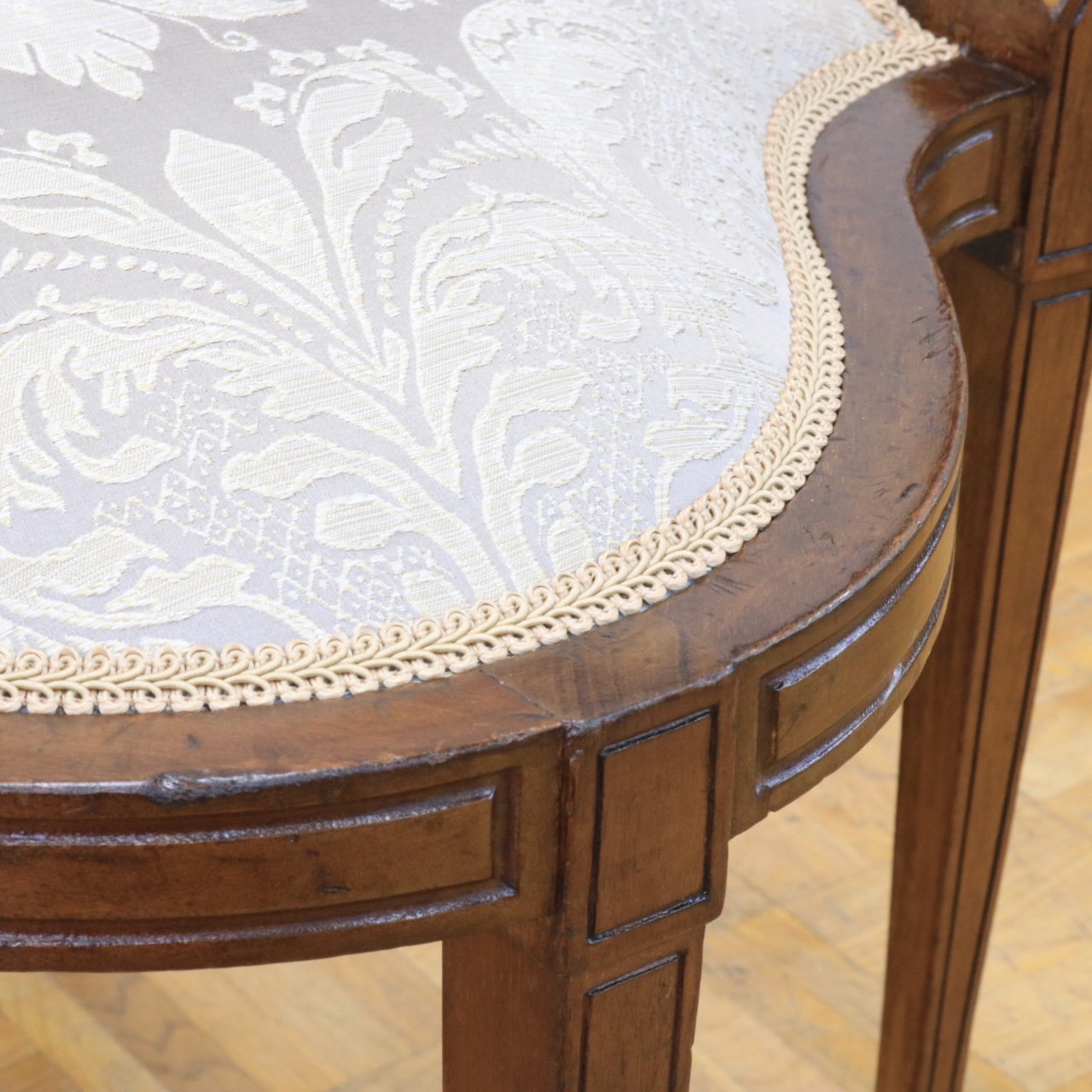 座面はベージュ系のダマスク生地を用いました。