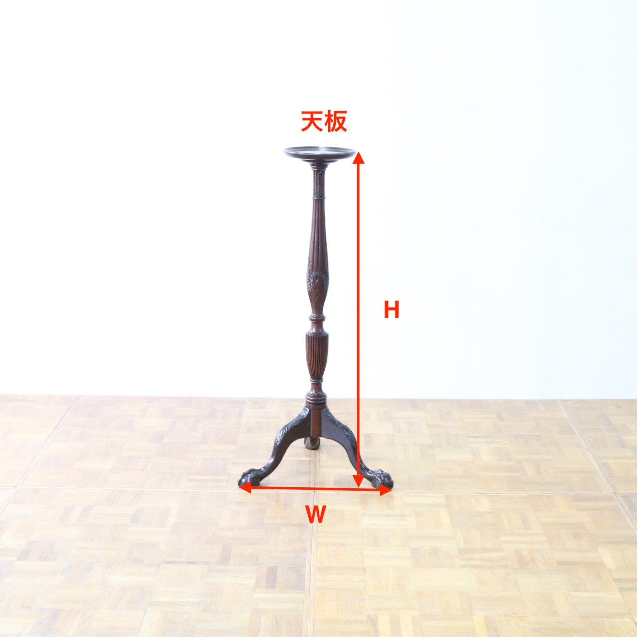 配送料の目安 ▶︎1930年代、マホガニー材のプランツスタンド。リーディッドが彫られたステムから脚にかけてはほっそりスマートな印象で、トップに飾るものを引き立てます。トライポッドの安定感のある脚にもアカンサスの葉紋様の彫刻が施され、クラシックな佇まいです。