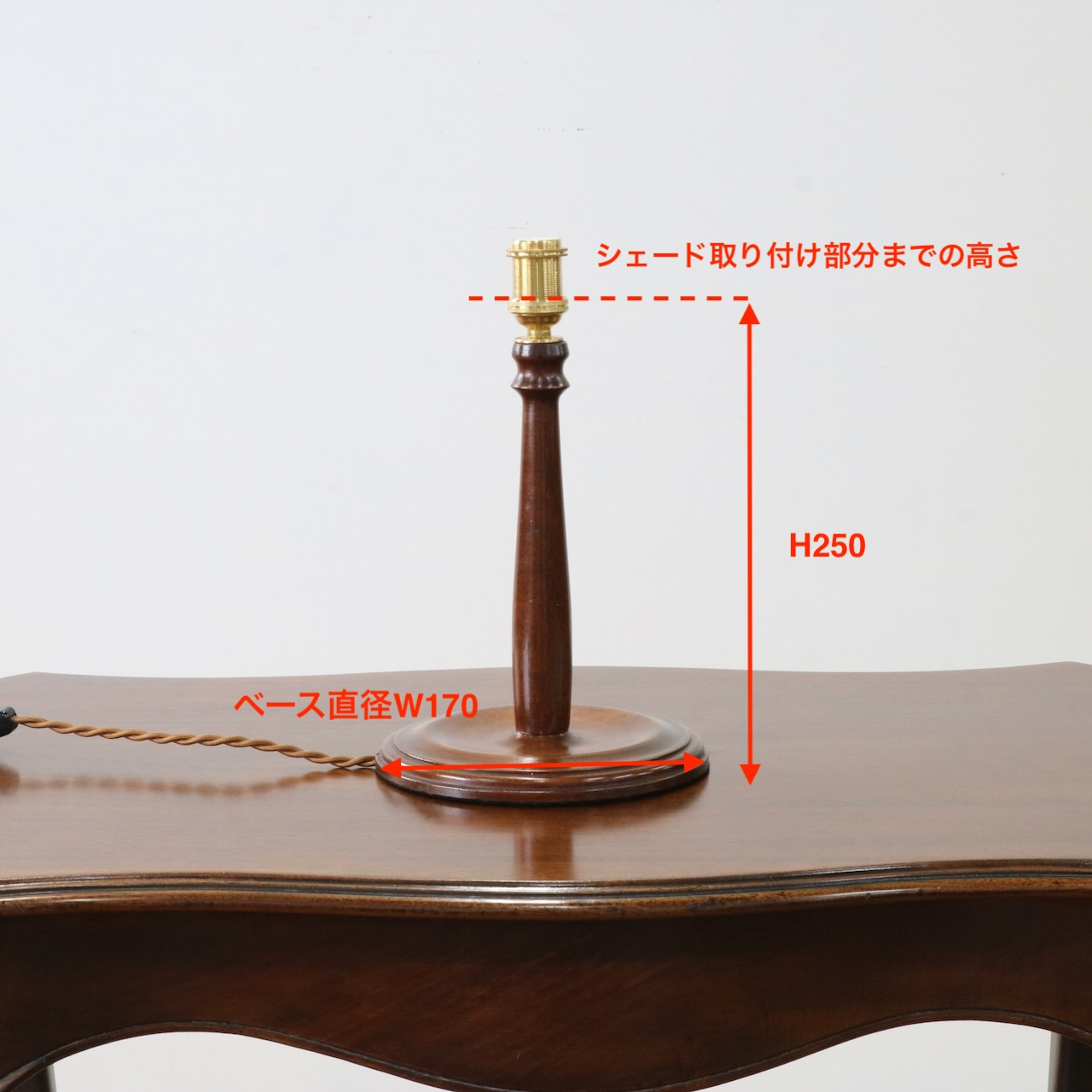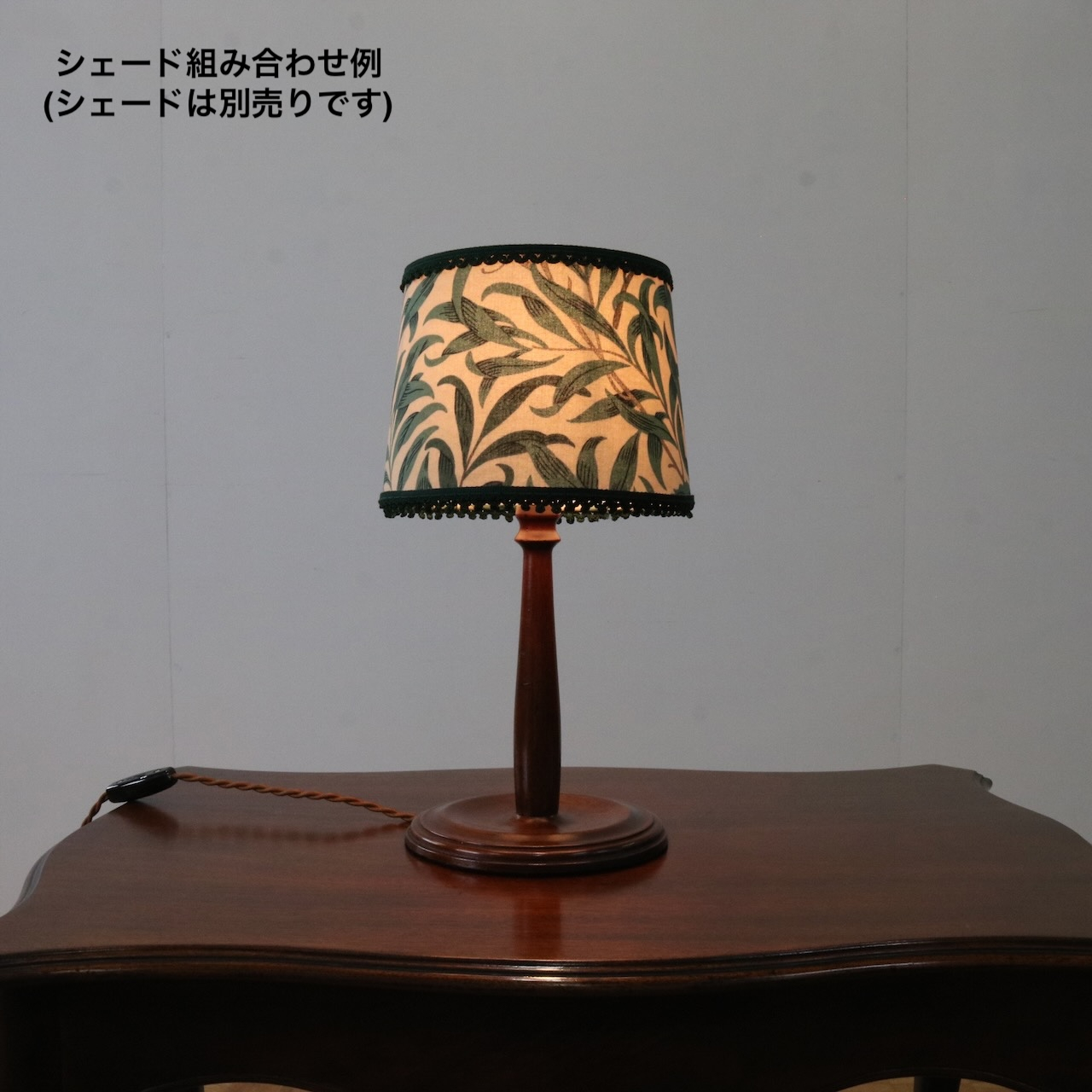 真鍮の風合いがマホガニーに馴染みます。E17ソケット、リングでシェードを留める仕様です。