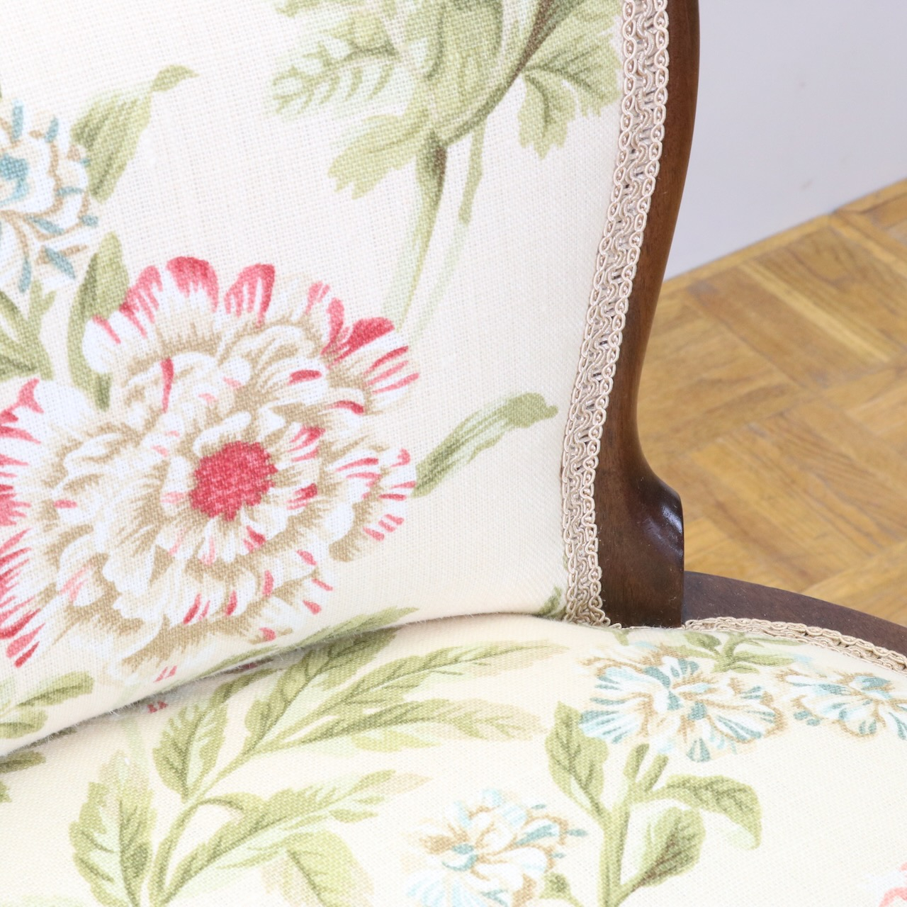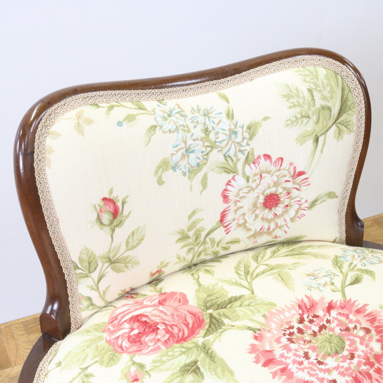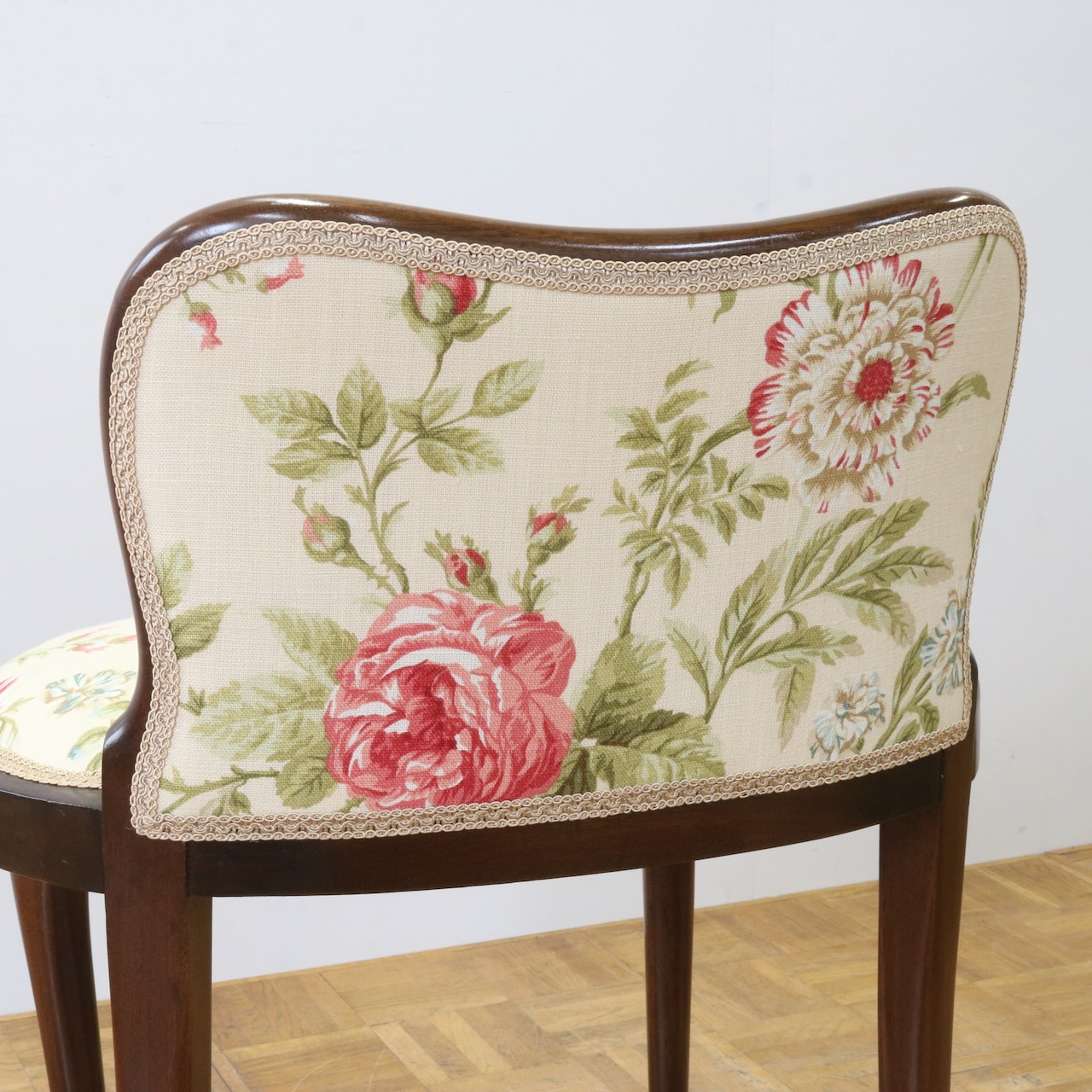 19世紀のチンツ生地に見受けられたクラシカルなボタニカルデザイン。英国のカントリーな雰囲気を感じる花々をエレガントなパターンへとデザインしました。その洗練された美しさと可憐さが魅力的な生地です。