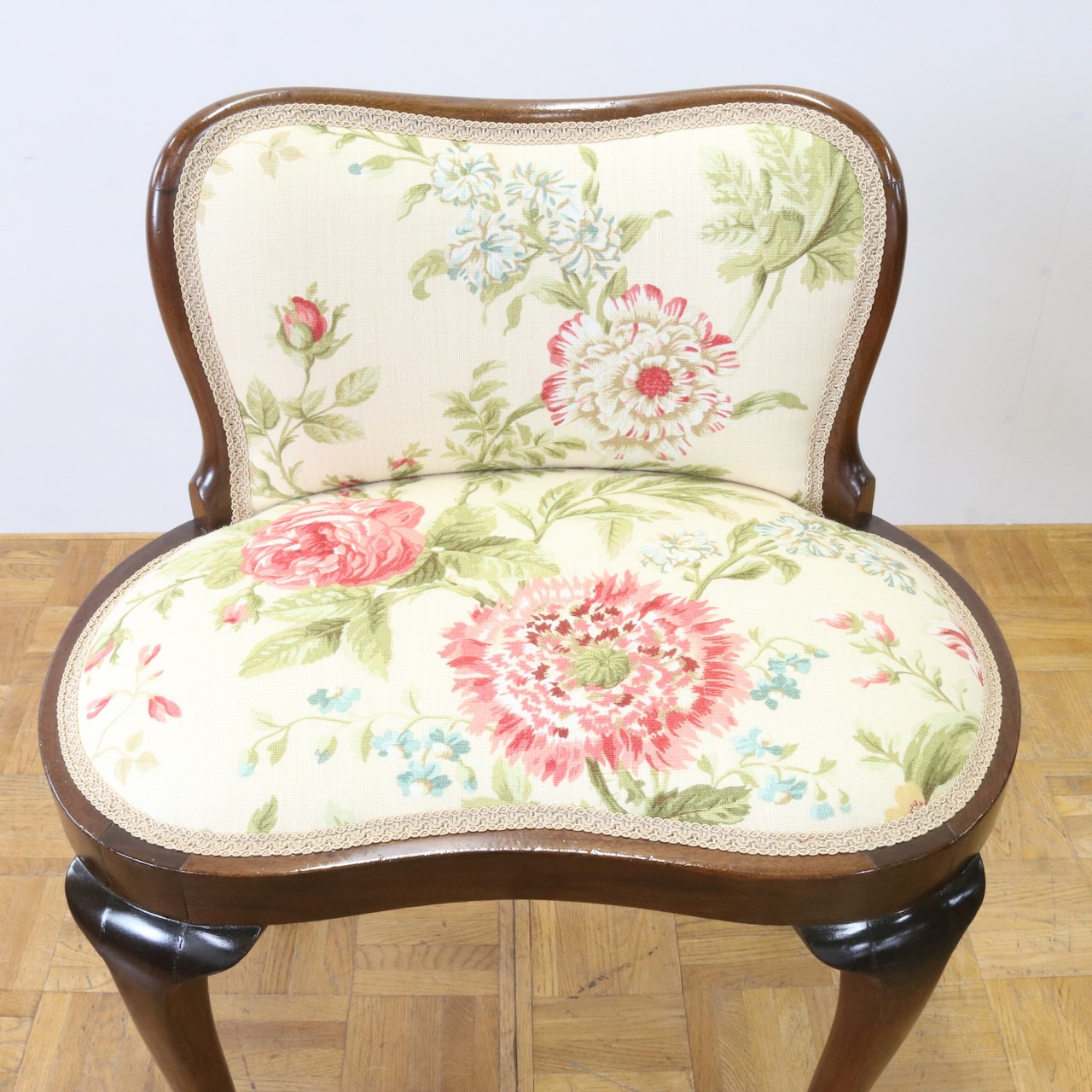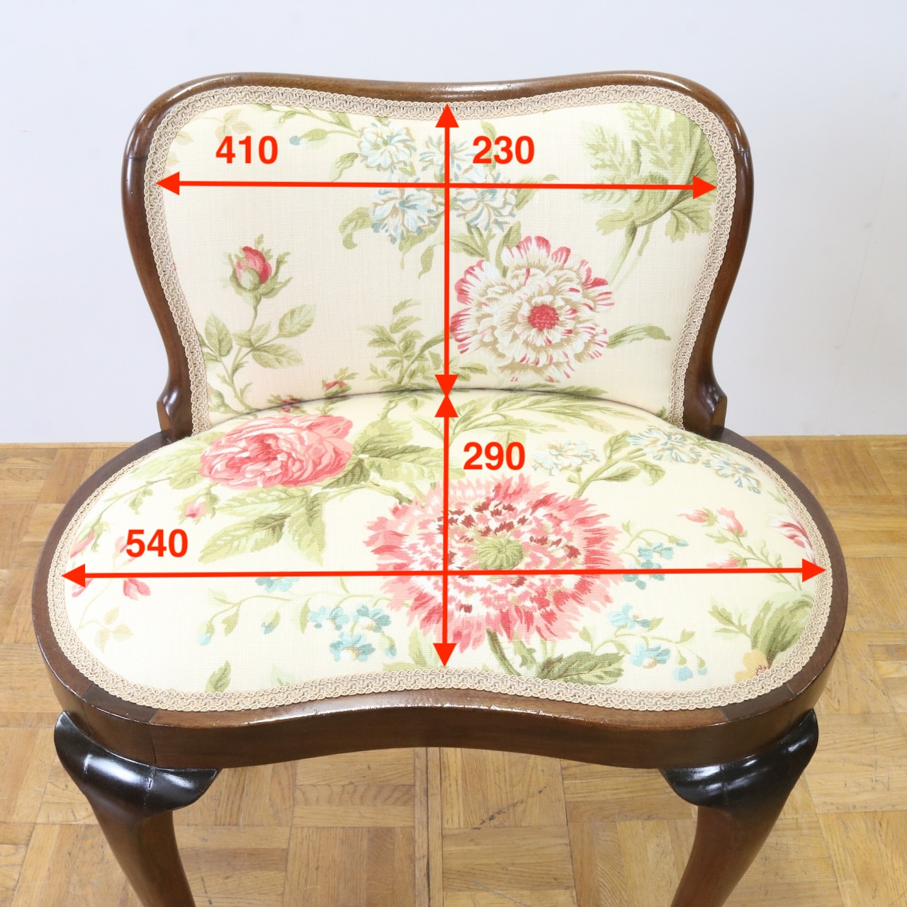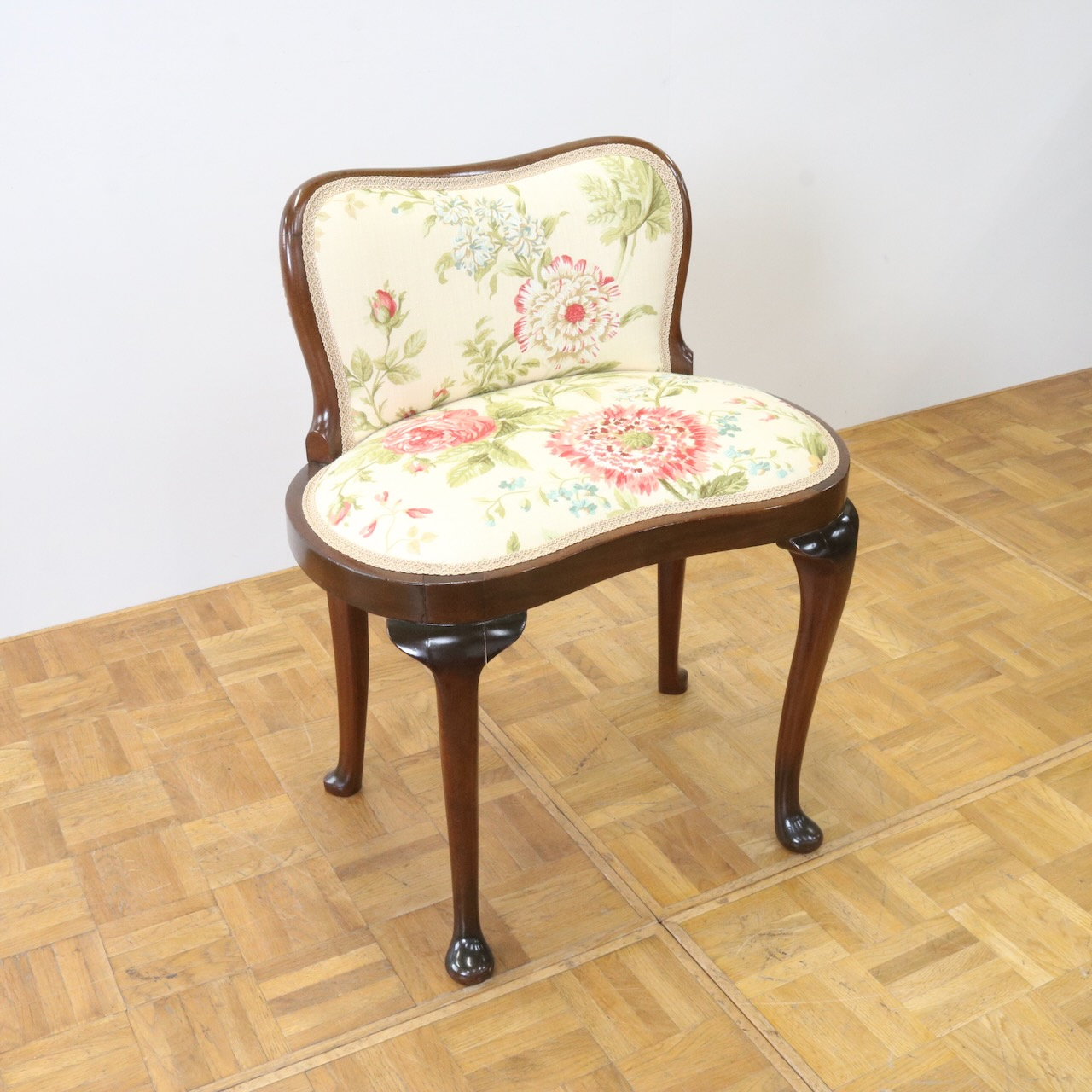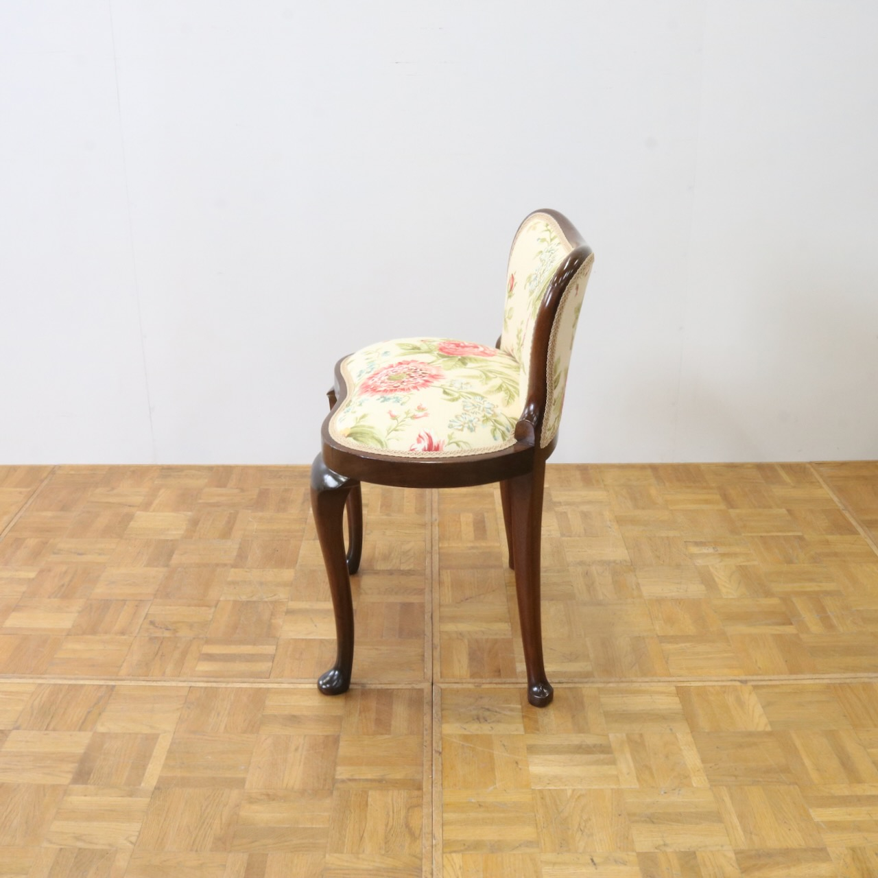 座面がキドニーシェイプ、背もたれがある珍しいデザインのひと品。