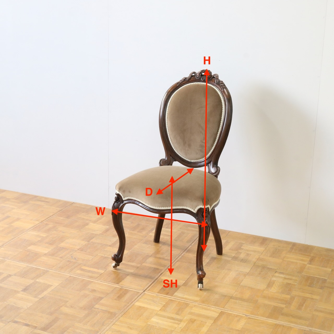 背と座の接合部分はスクロールのデザインでクラシック。