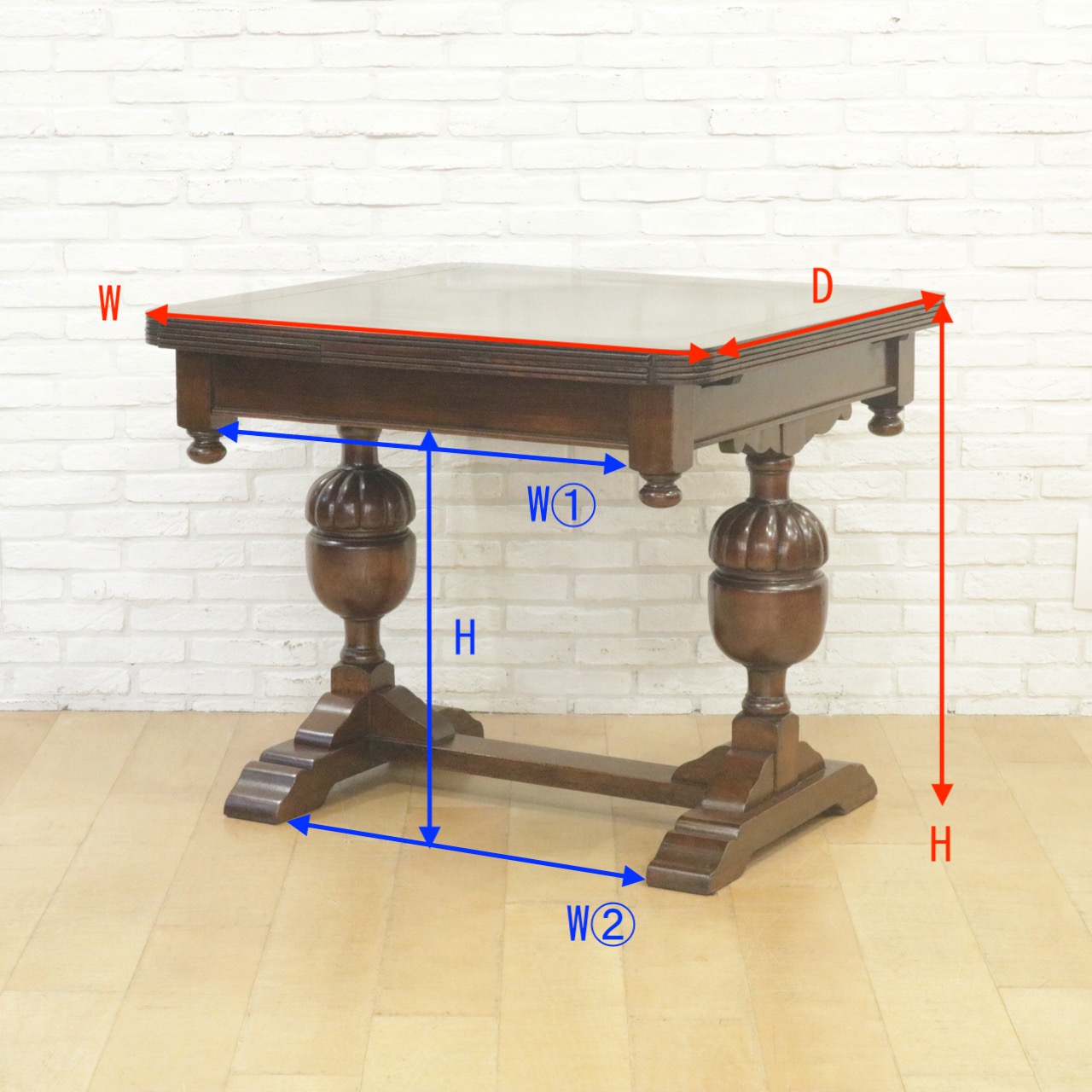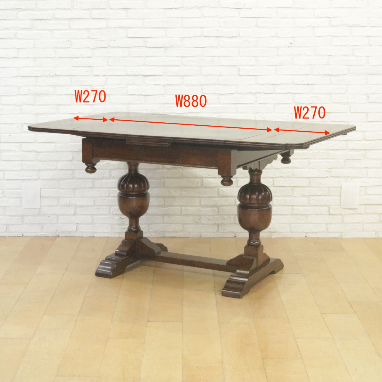 配送料の目安 ▶︎1930年代、オーク材のドローリーフテーブル。脚部のどんぐりのような丸いブルボースが可愛らしい印象。