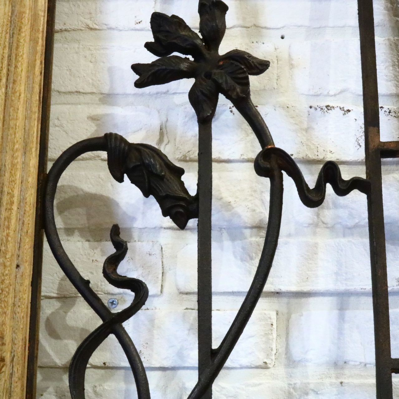 オールドパインならではの木の質感と植物モチーフのアイアン装飾は退廃的で雰囲気があり、店舗什器等でおすすめです。