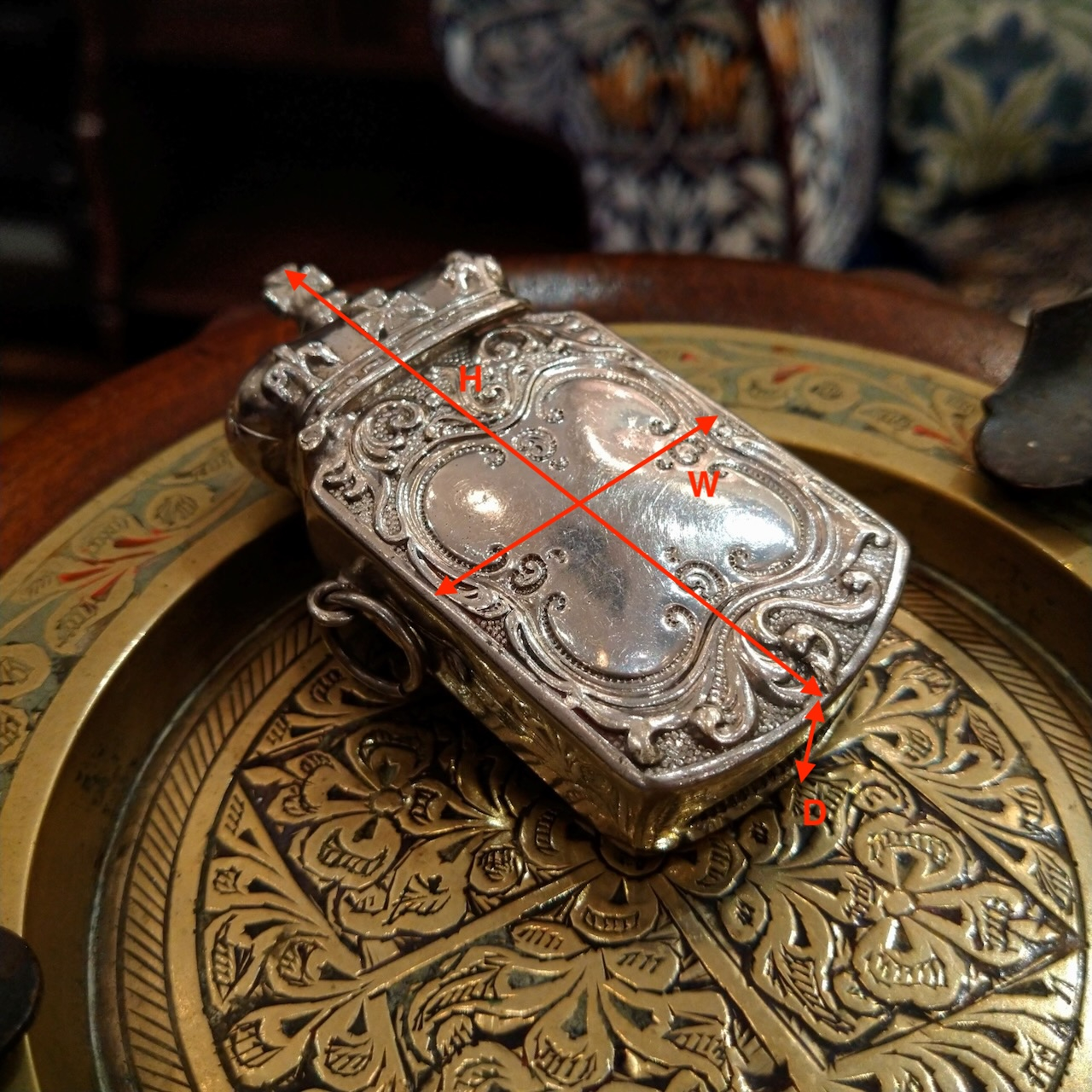 1901年、シルバープレートのマッチケース。コロネーションのデザインはトップに王冠が輝きます。繊細なリーフ模様も美しく小さいながらも重厚感があります。王冠の蓋を開けるとマッチをしまうことが出来る珍しいアイテム。サイドにリングが付いているので、チェーンを付けたらネックレスやキーホルダーの様に掛けることも出来ます。