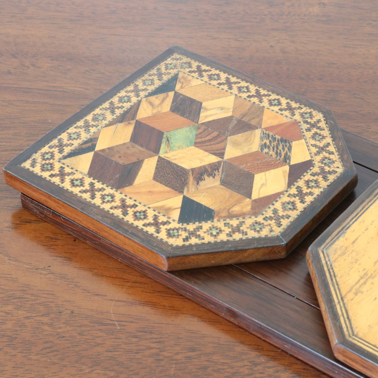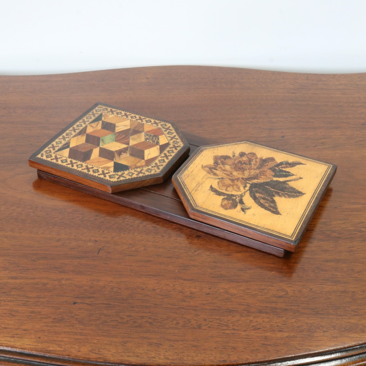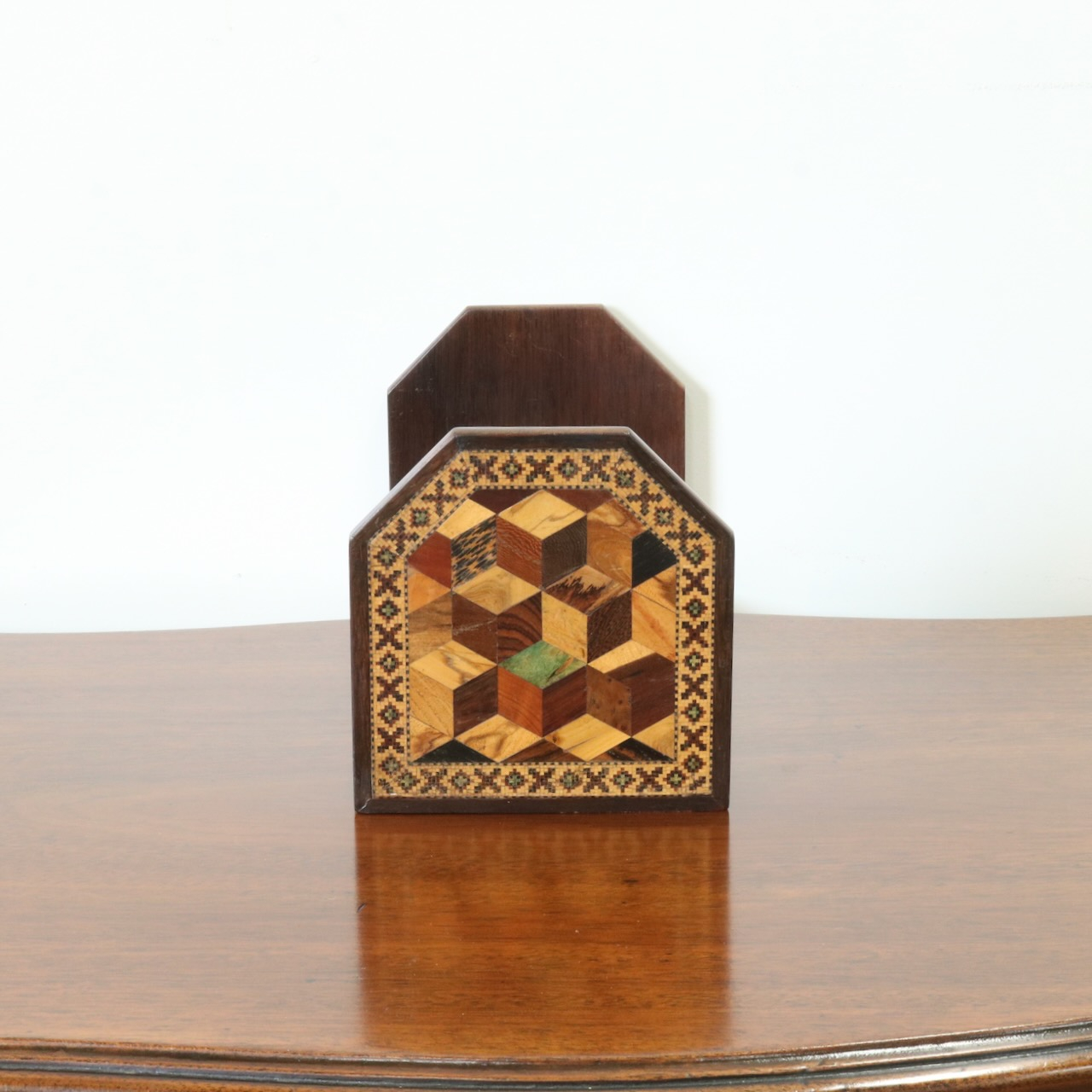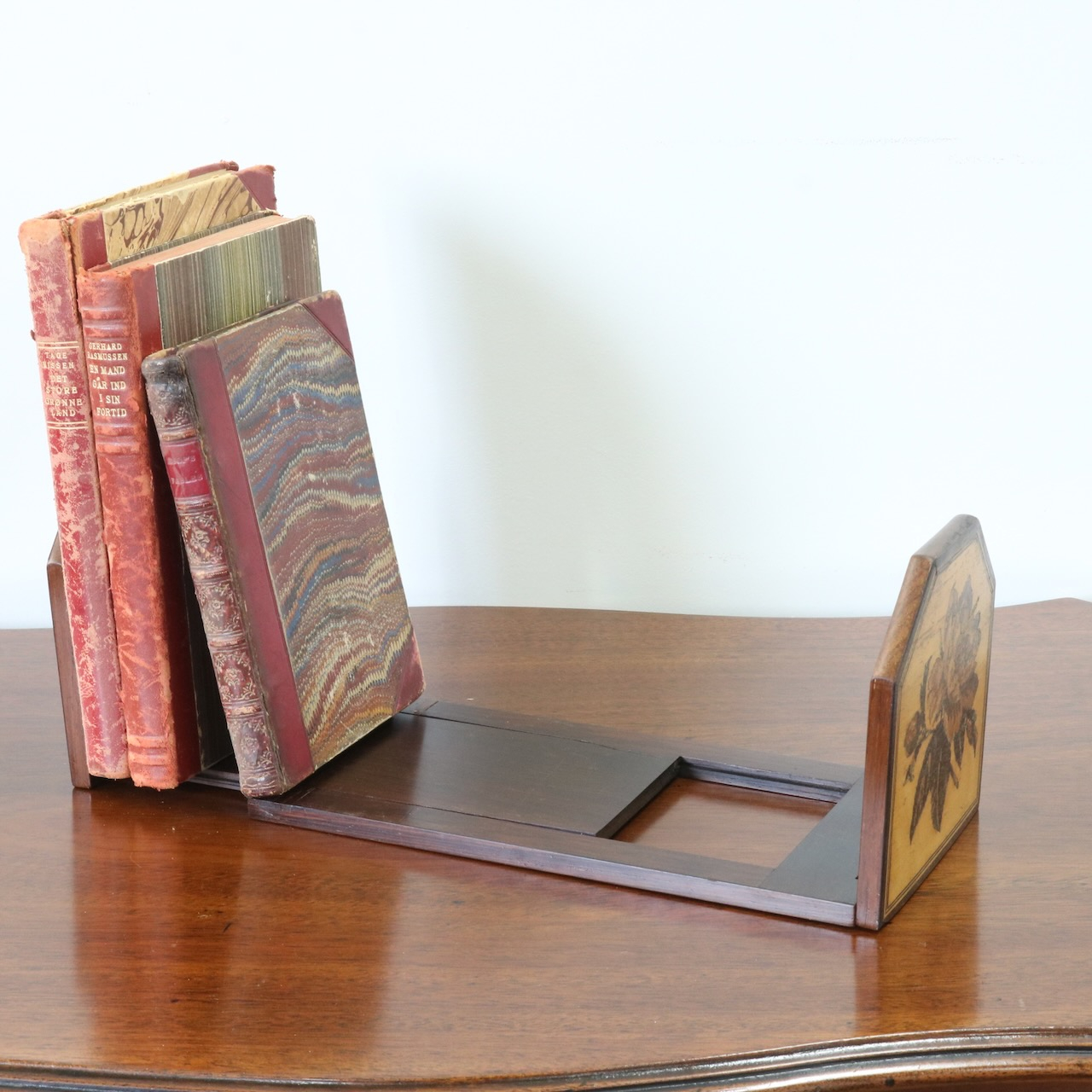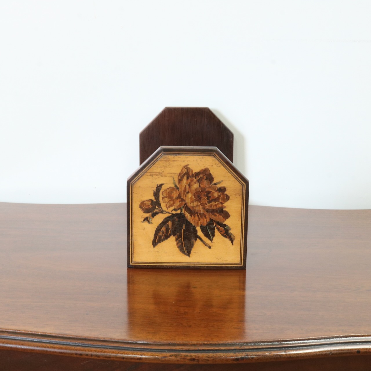 配送料の目安 ▶︎19世紀後半、タンブリッジウェア (Tunbridge Ware=イギリスケント州タンブリッジの工芸品)マホガニーのブックスタンド。