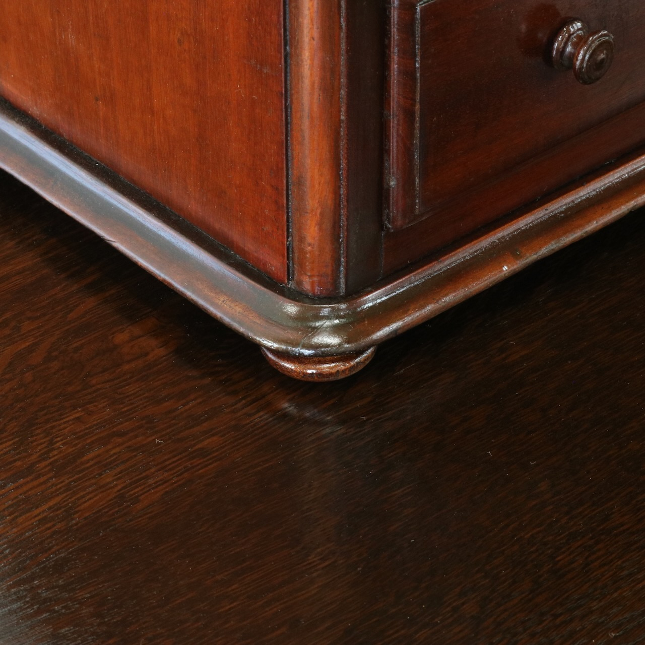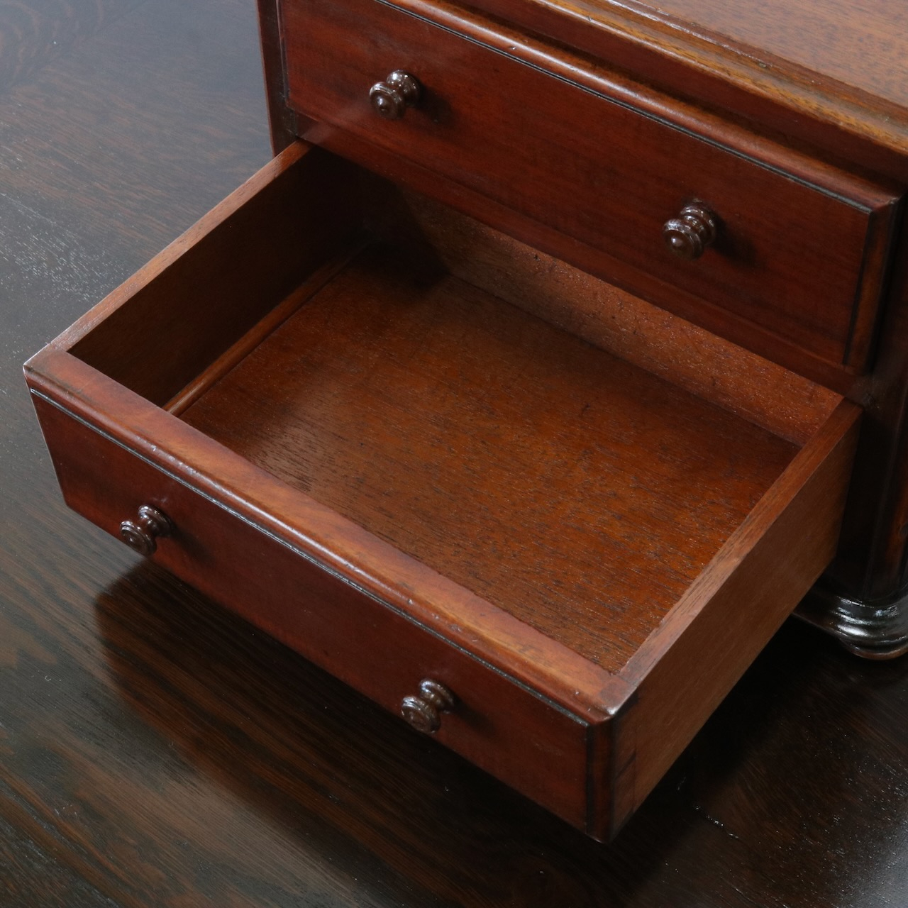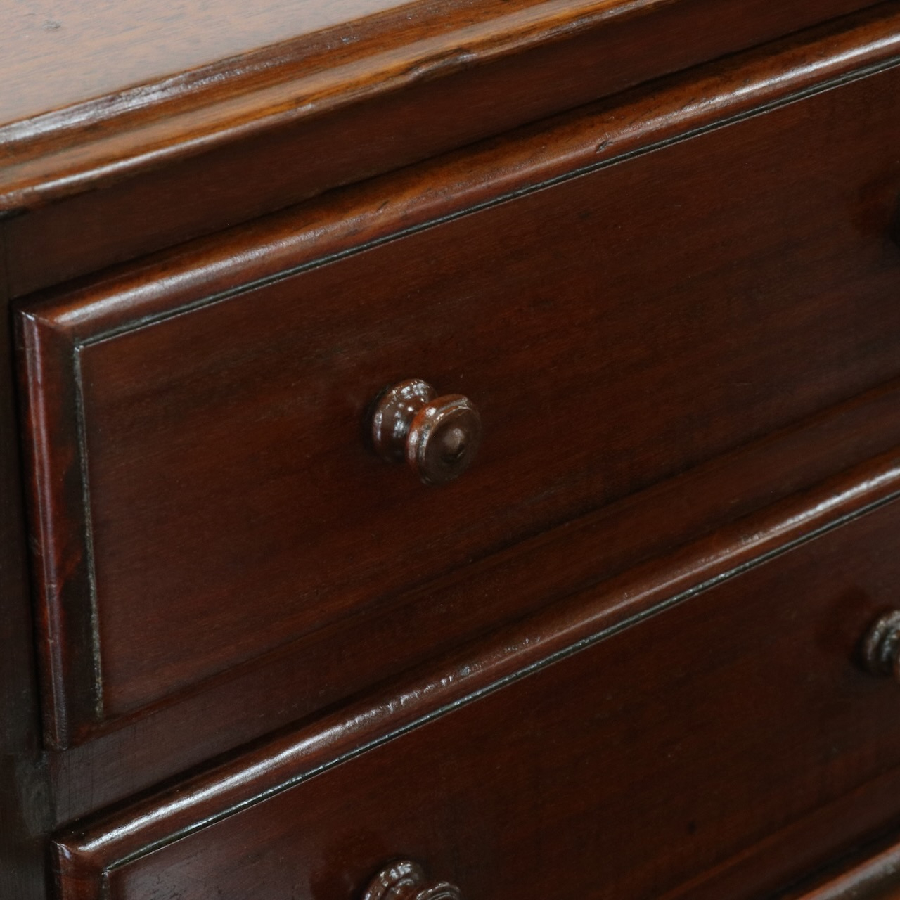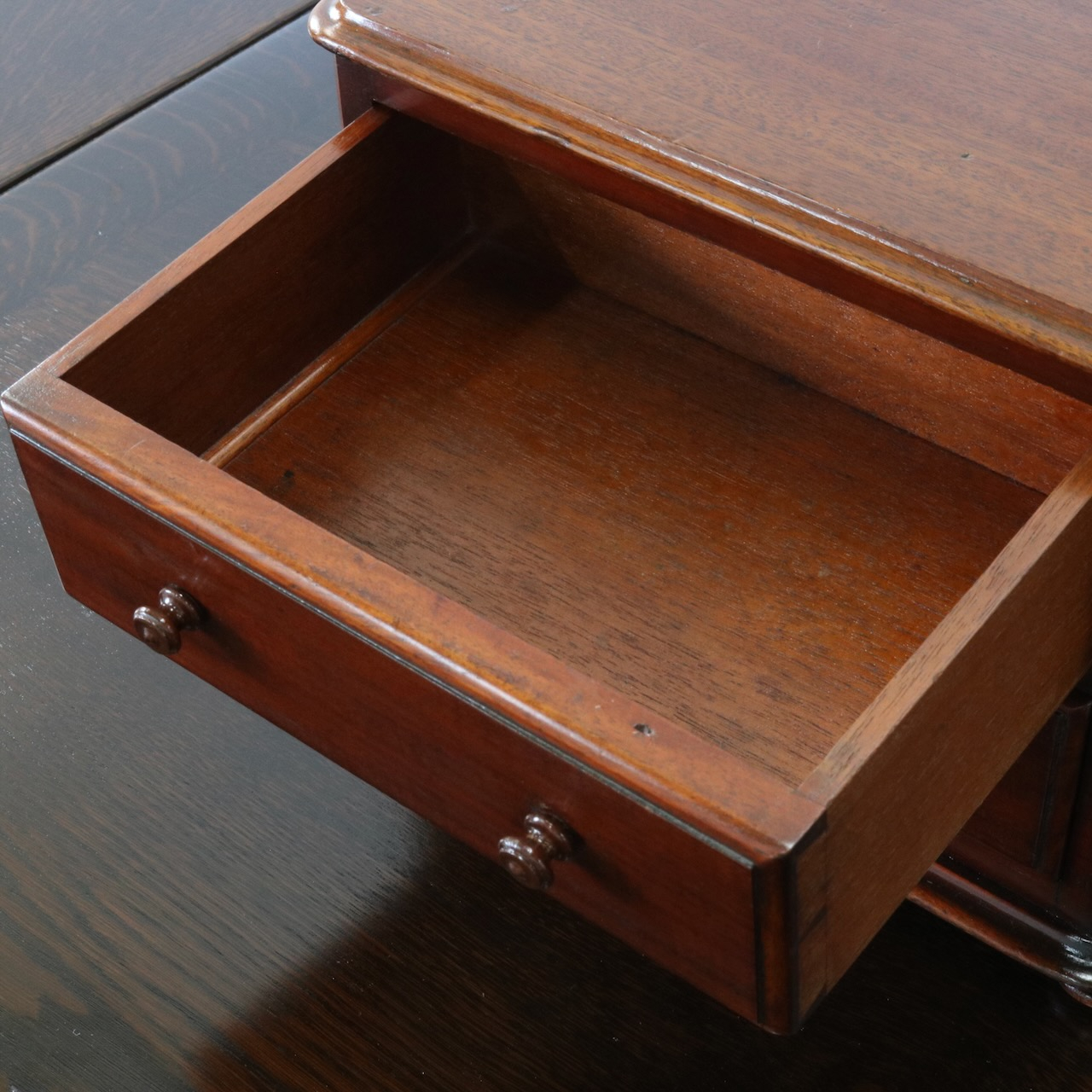 小さな引き手つまみもマホガニー製。丁寧に作られています。