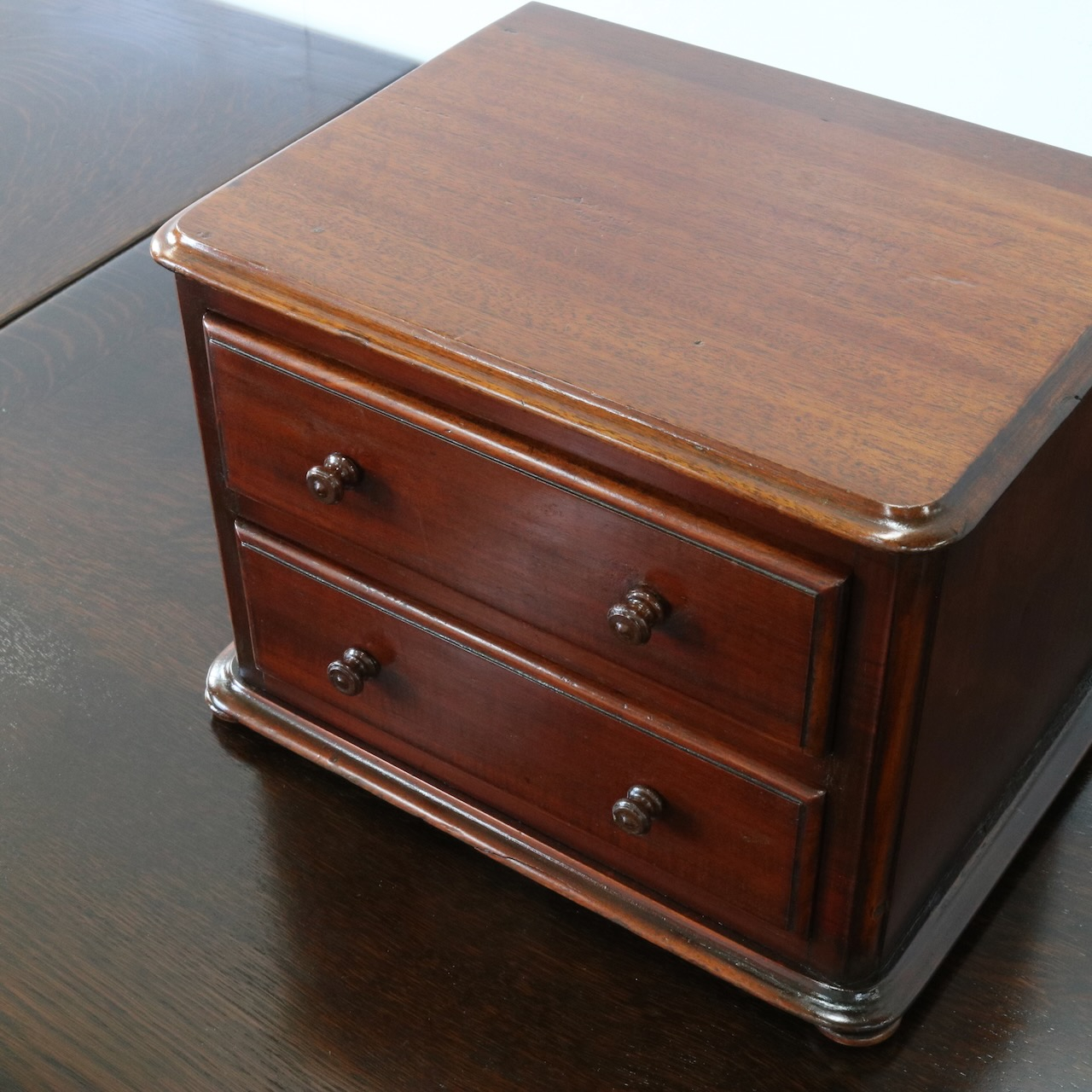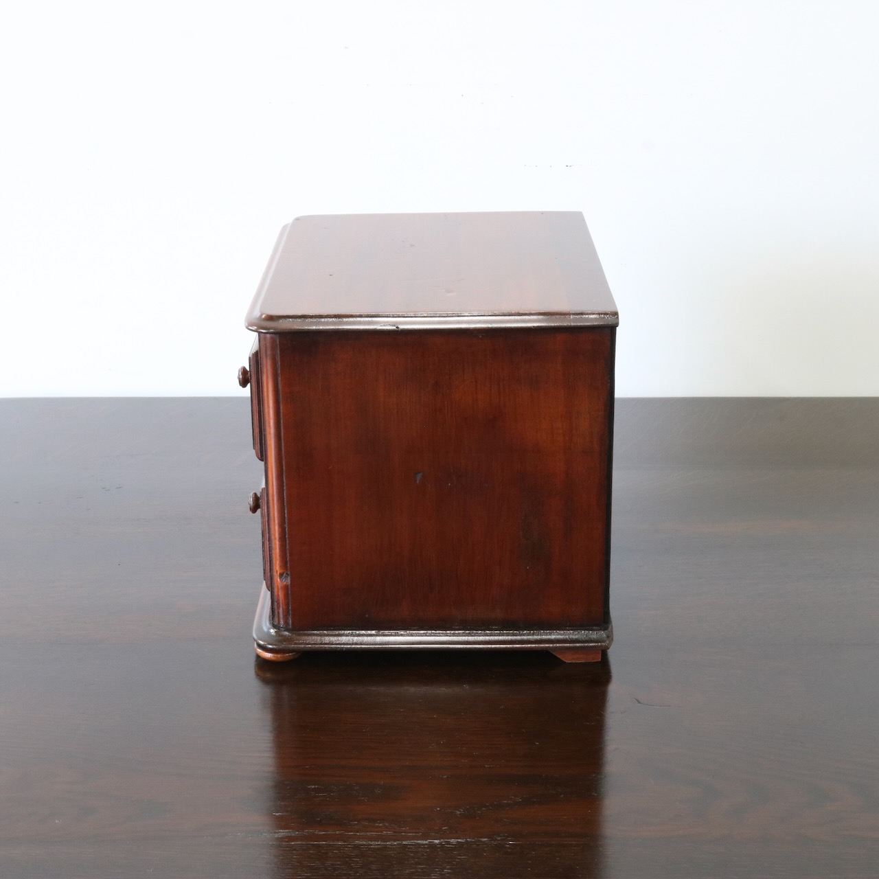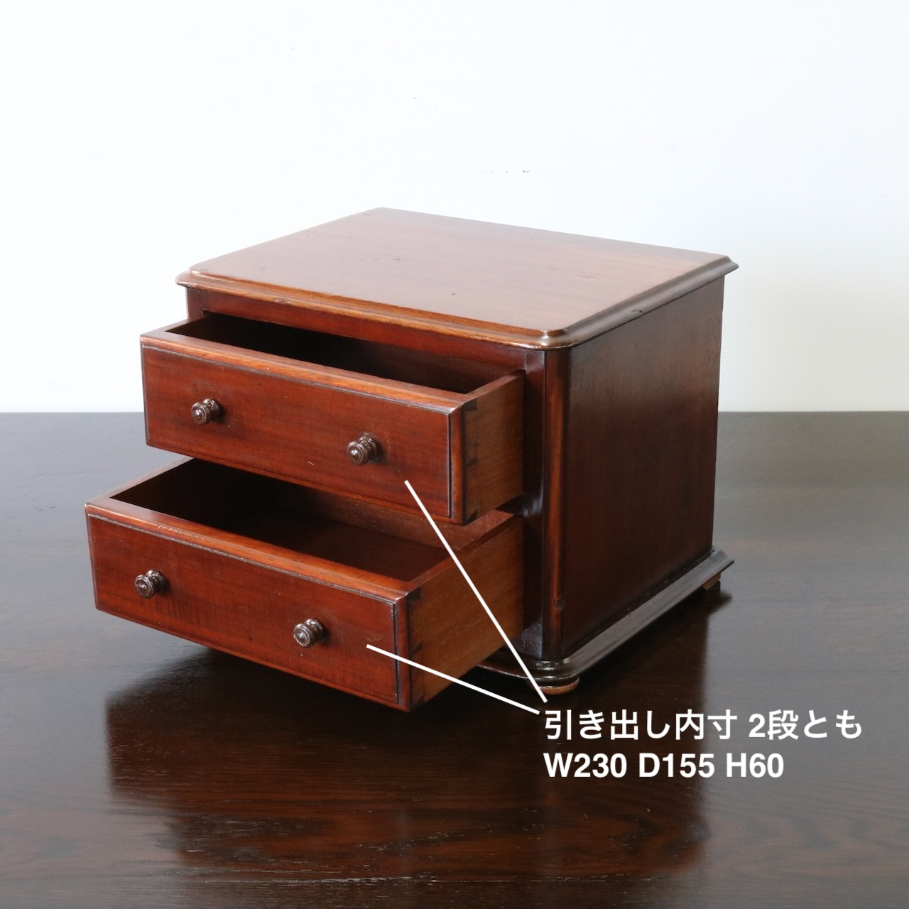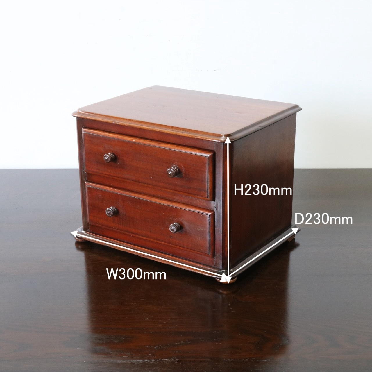 配送料の目安 ▶︎マホガニー材のデスクトップチェスト。良質なマホガニー材が使われていて、小さいけれどアンティークの良さを楽しめる卓上の引き出し収納アイテムです。