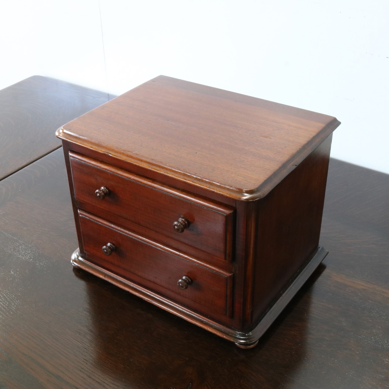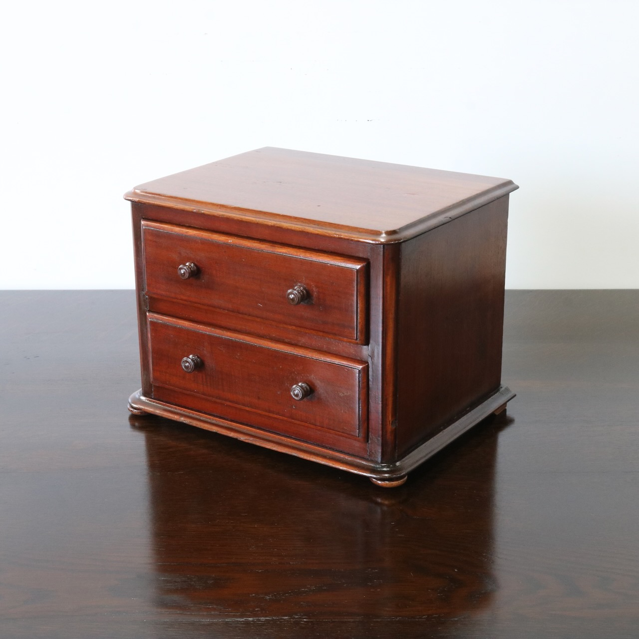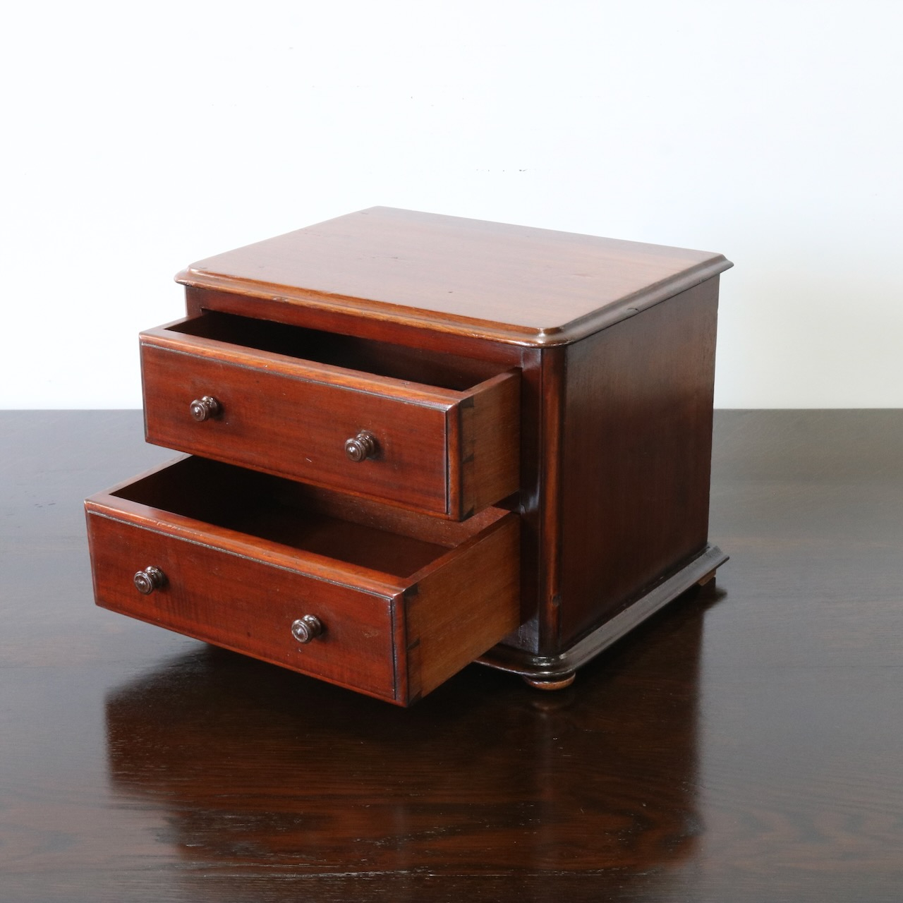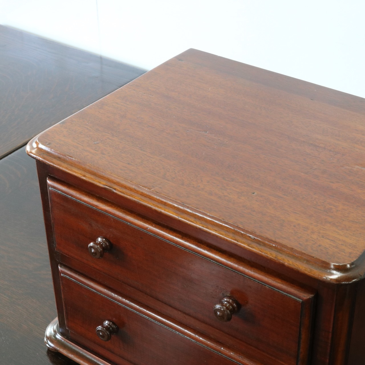 配送料の目安 ▶︎マホガニー材のデスクトップチェスト。良質なマホガニー材が使われていて、小さいけれどアンティークの良さを楽しめる卓上の引き出し収納アイテムです。