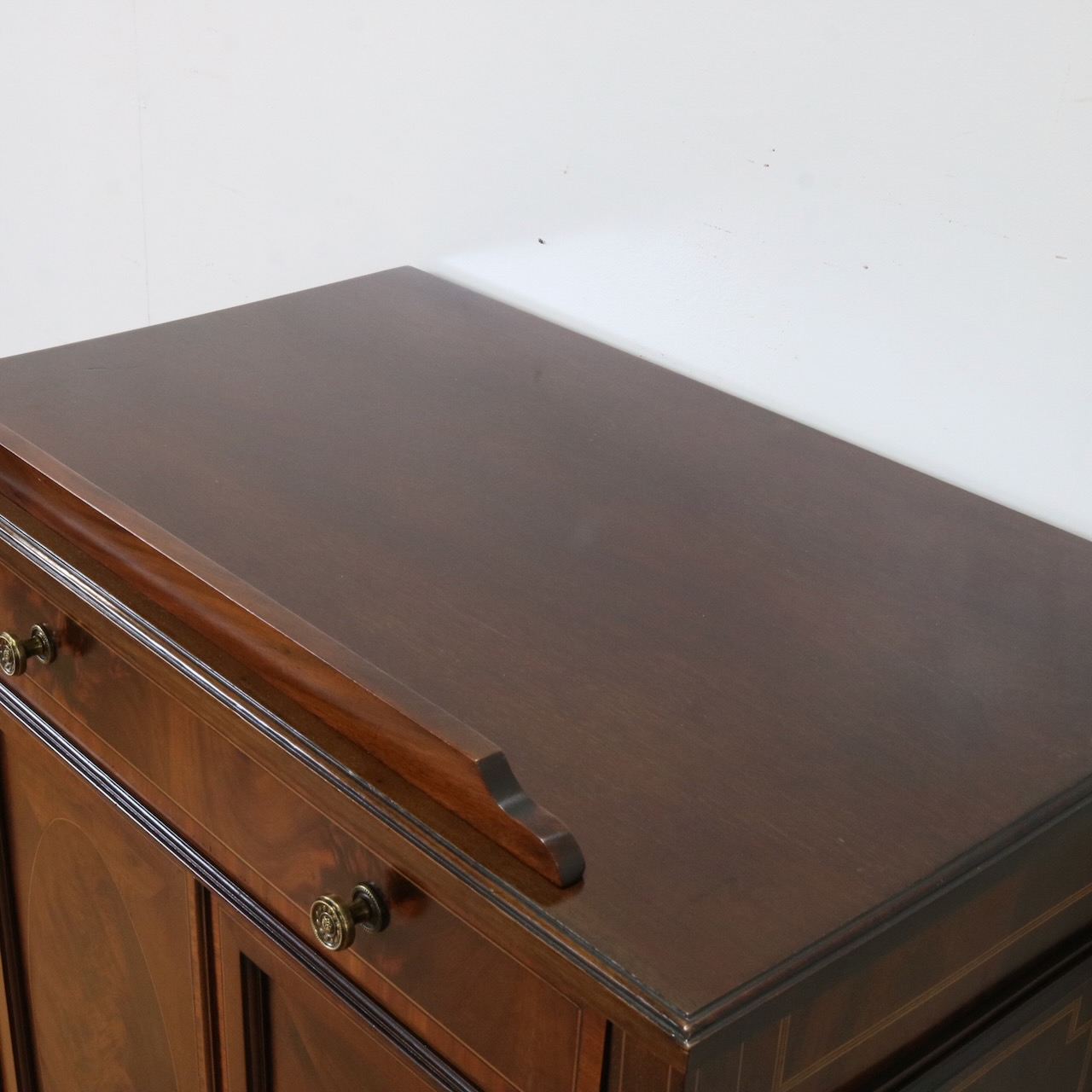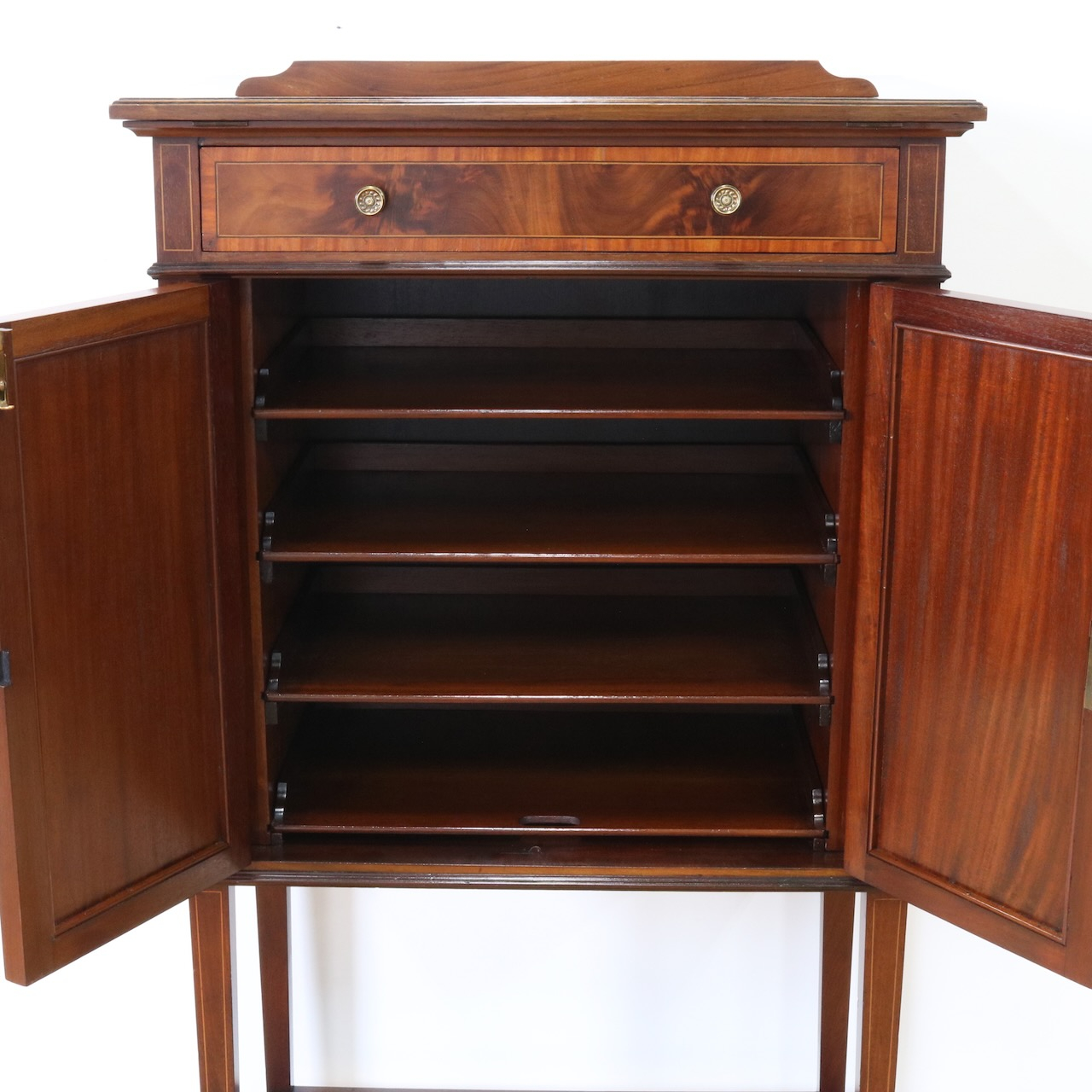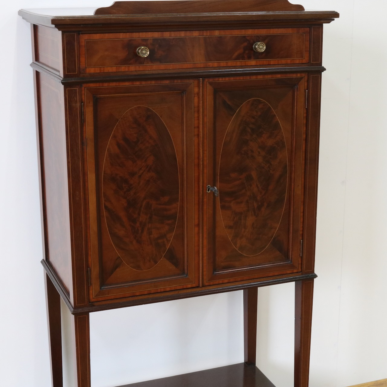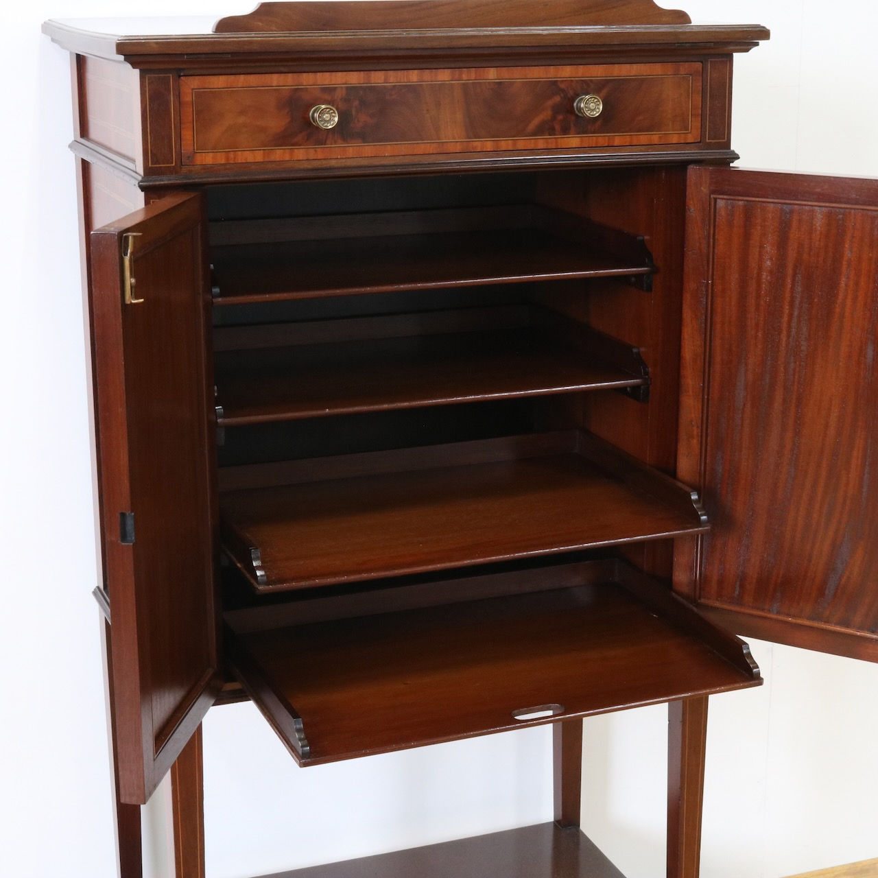 配送料の目安 ▶︎マホガニーのミュージックキャビネット。扉を開くと楽譜を入れるのに適した引き出しの仕様になっています。さらに天板は楽譜立てになっている珍しい造りに惹かれます。