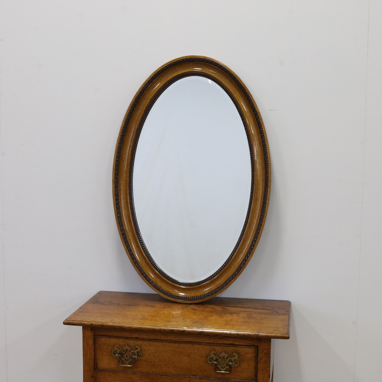 1930年代、オーク材のウッドフレームミラー。色味の異なる材を使ってコントラストを生かしたデザインになっています。縦横どちら向きでも壁に掛けてお使いいただけます。