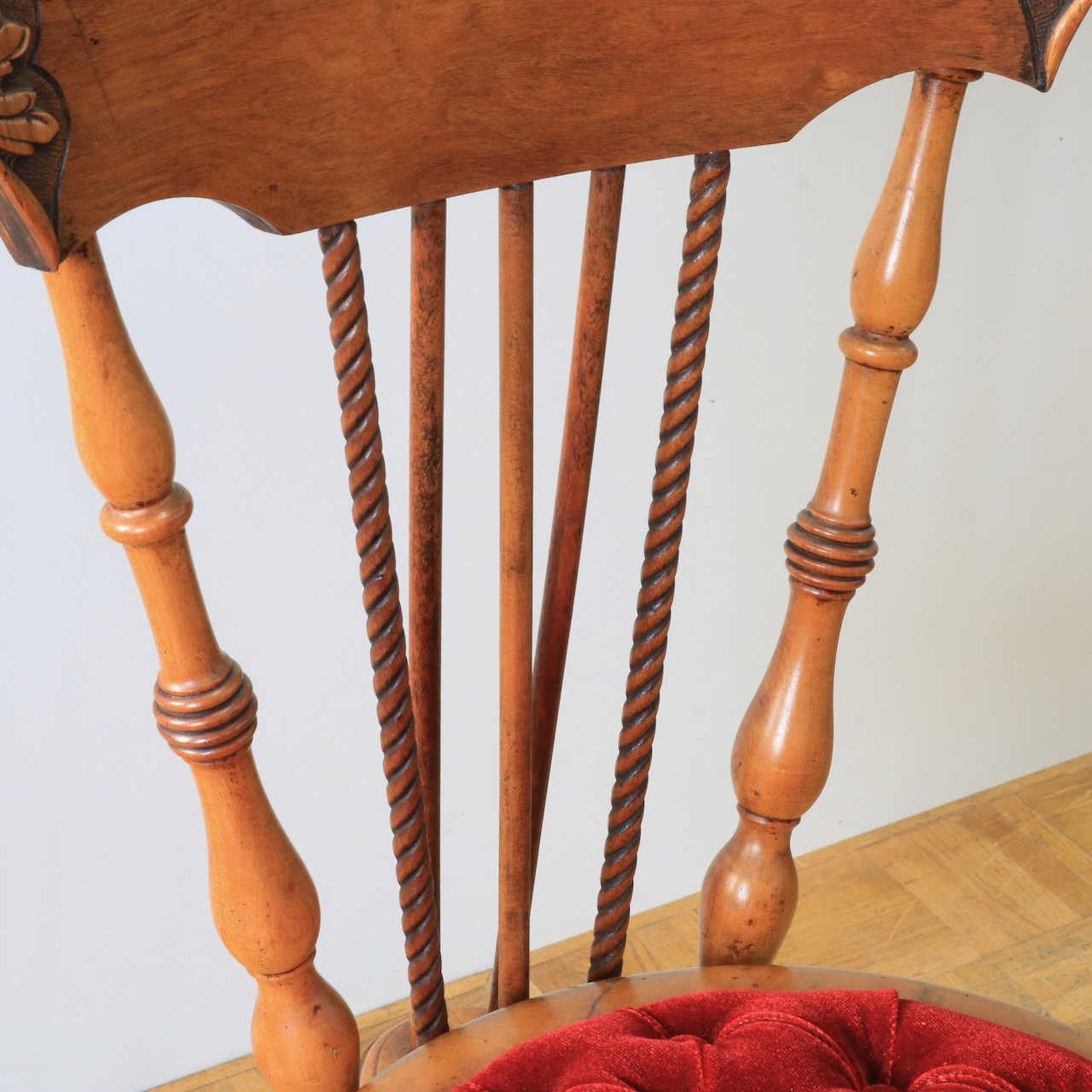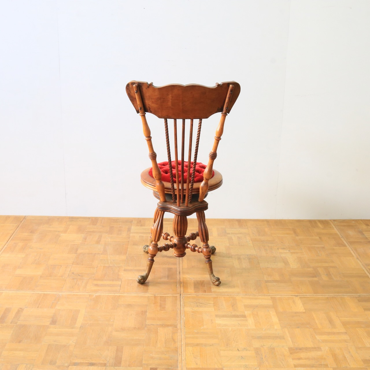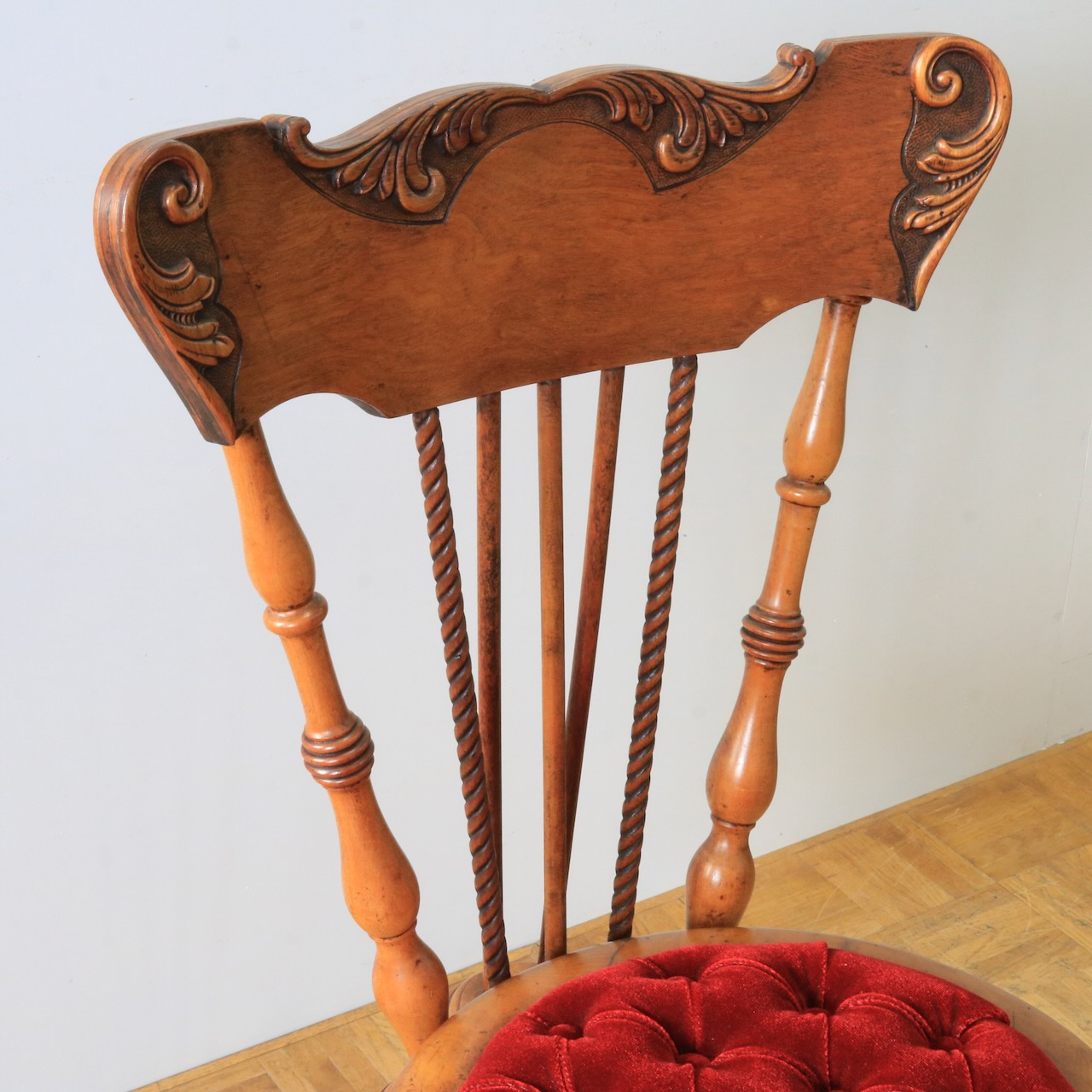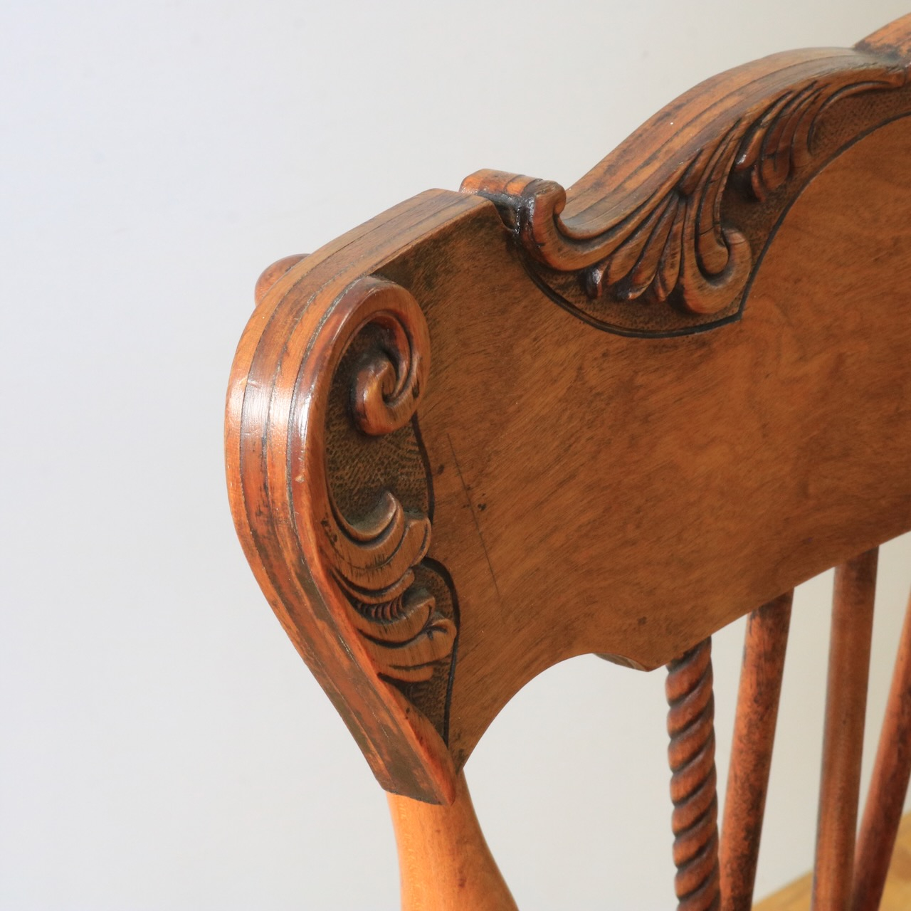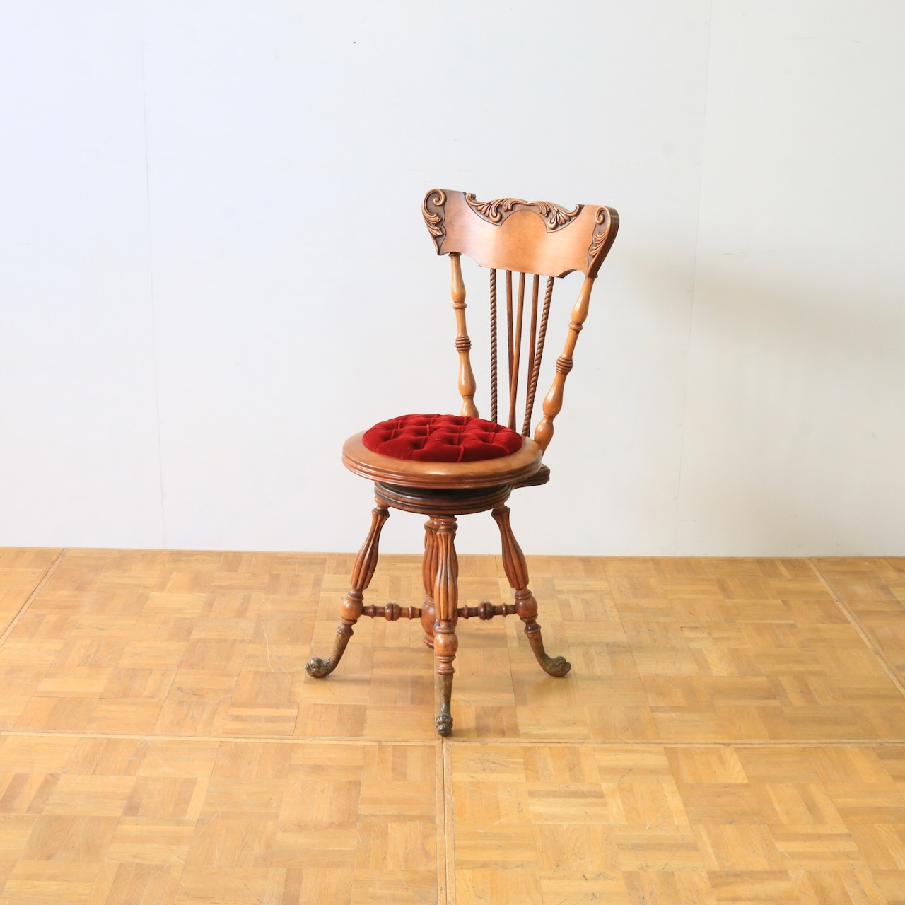 背もたれ、座面、脚部いずれも特徴的なパーツで構成されており。全体で見た際のバランスも美しい華のあるアンティークチェアーです。