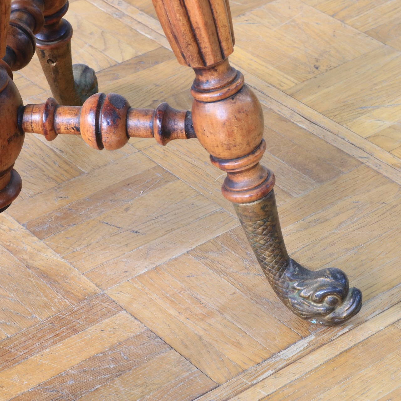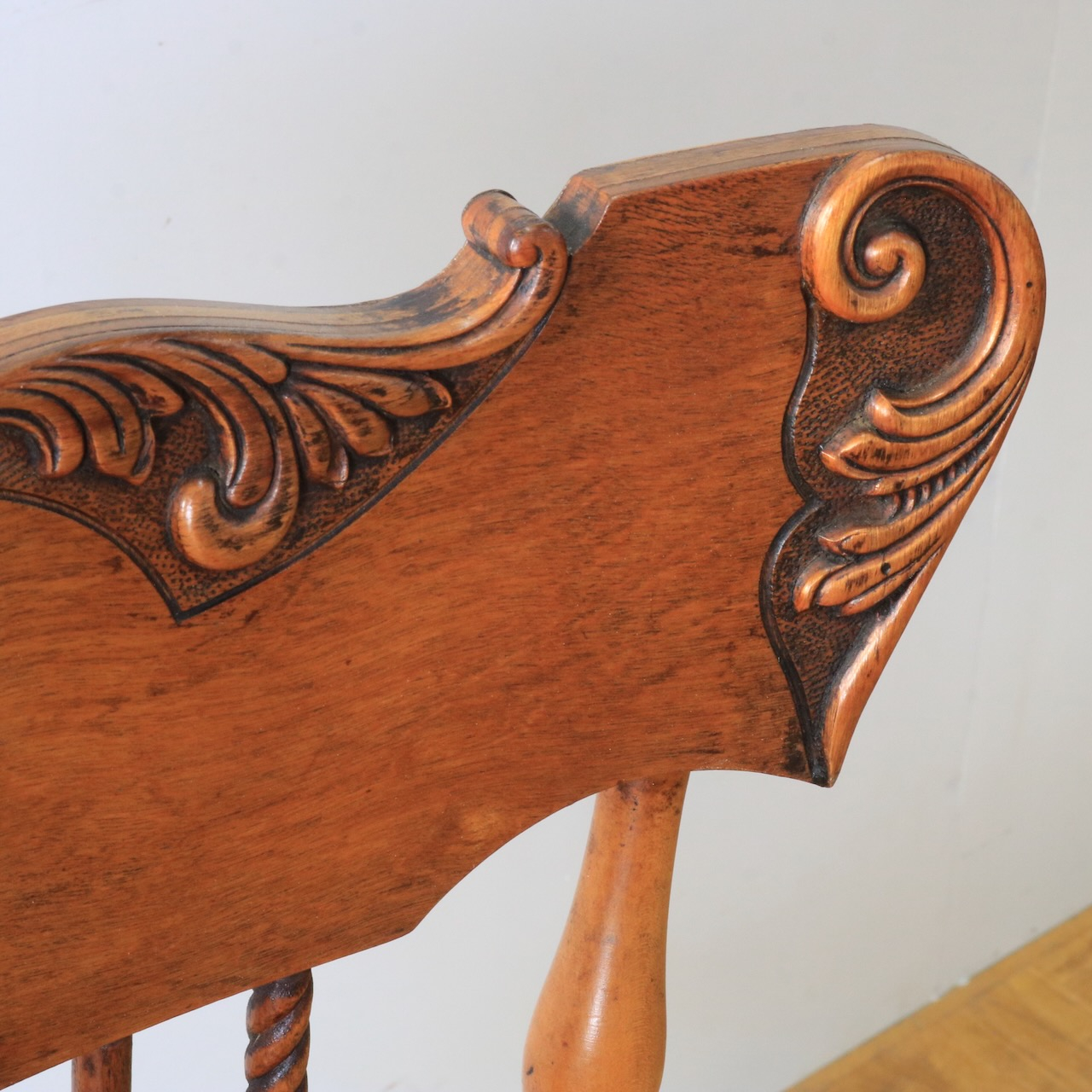 背もたれや脚先にかけての華やかな彫刻がアンティークならではの重厚感を放ちます。