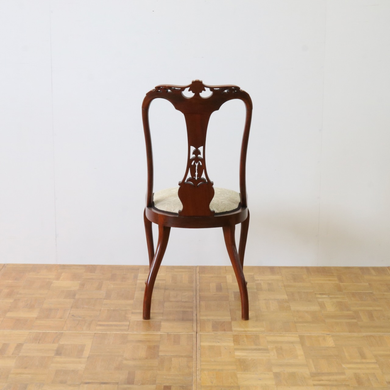 配送料の目安 ▶︎1890年代ヴィクトリアン、ウォールナットのサイドチェアー。緩やかなカーブの背もたれに贅沢に施された彫刻が見事です。華やかで上品な雰囲気はヴィクトリアンらしさで溢れています。
