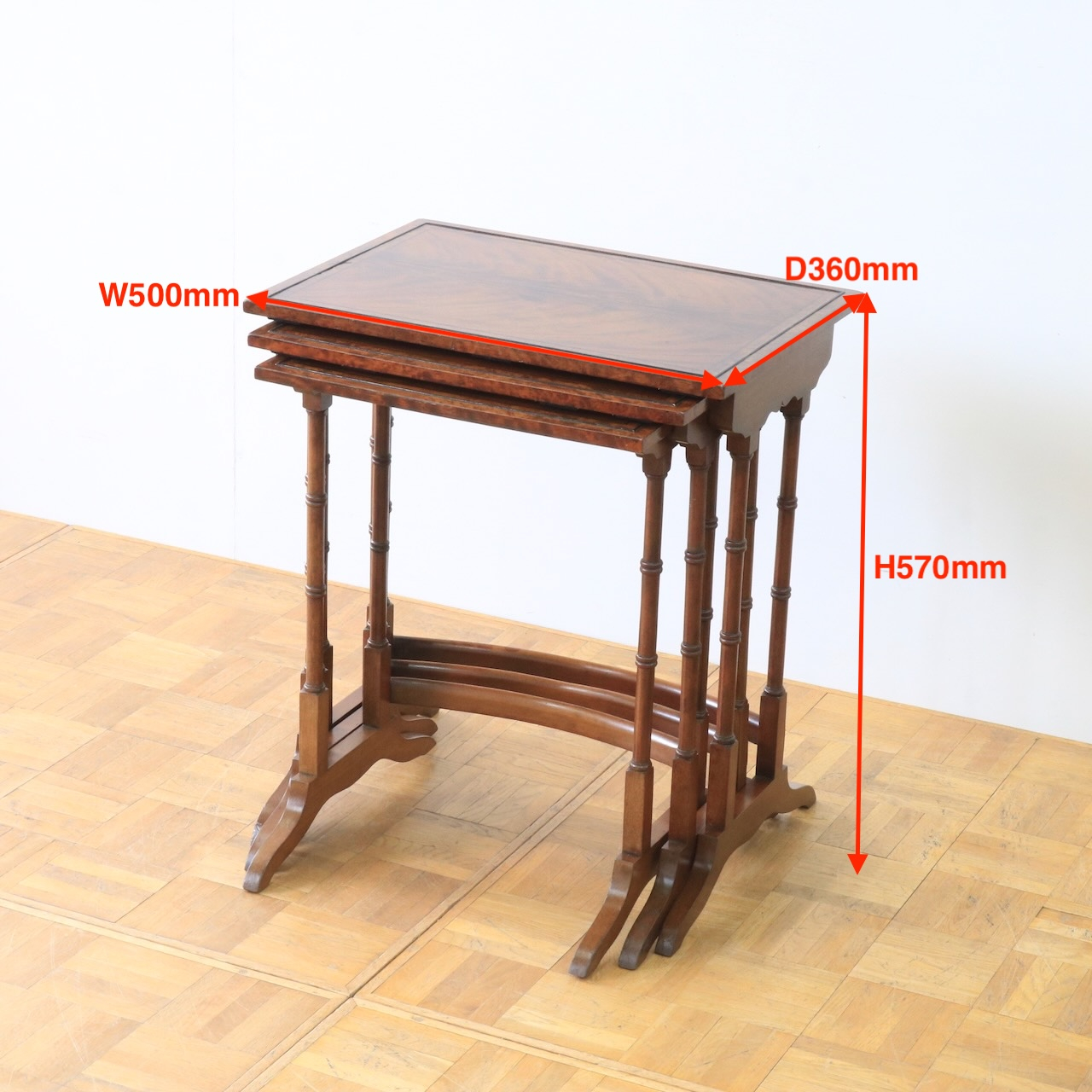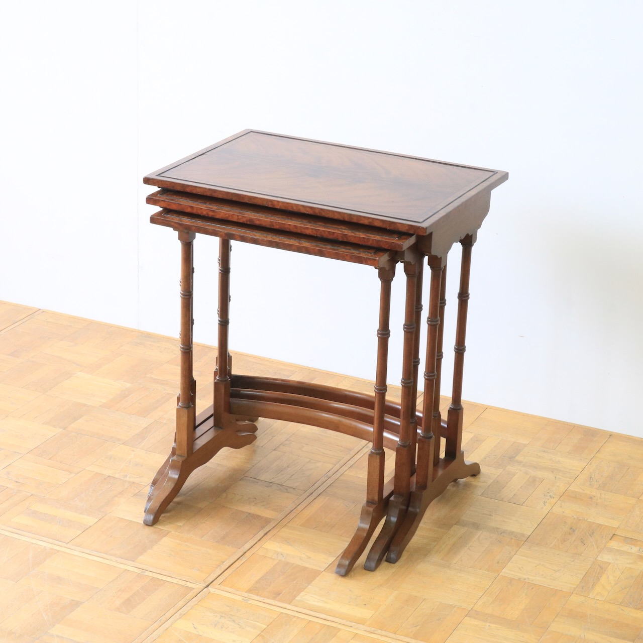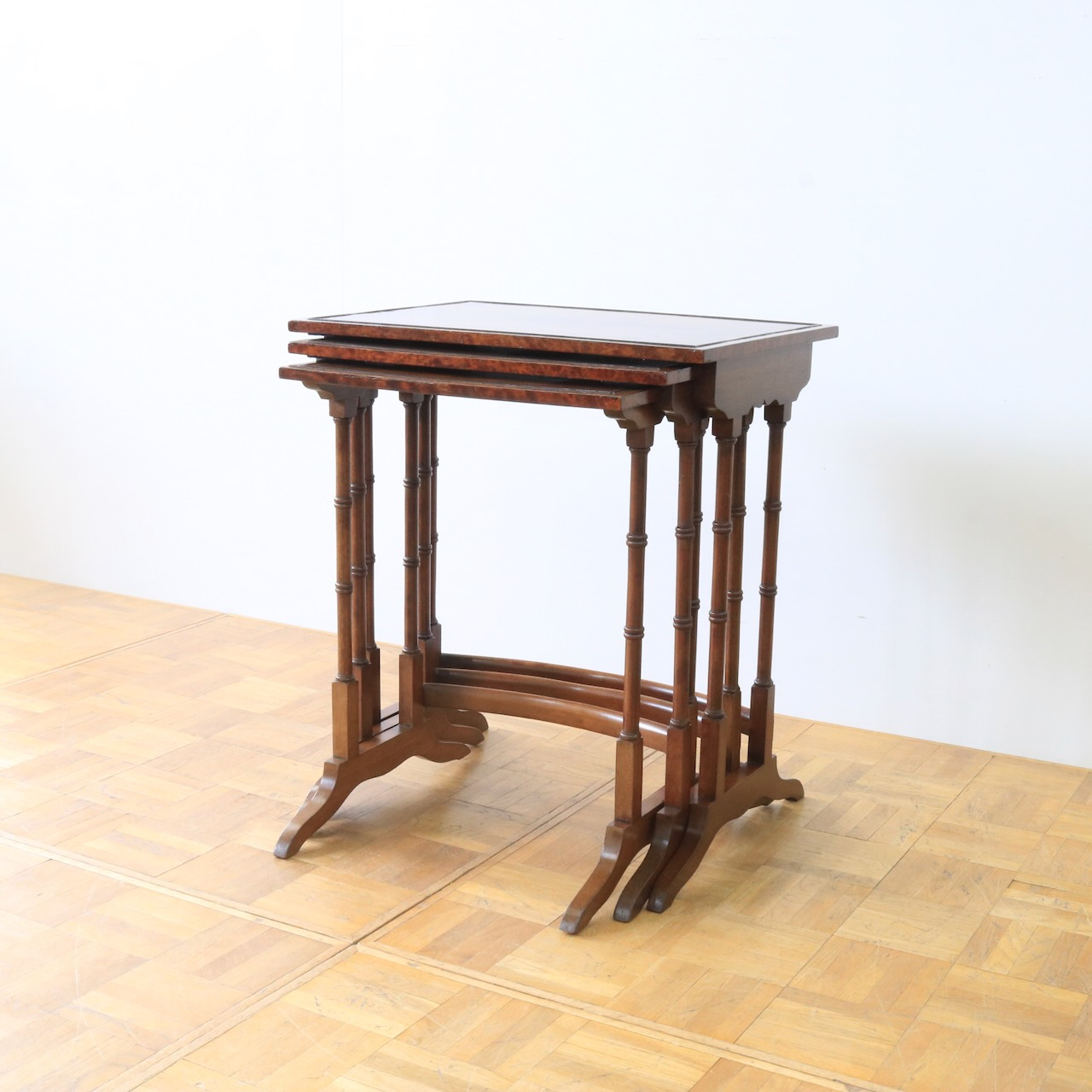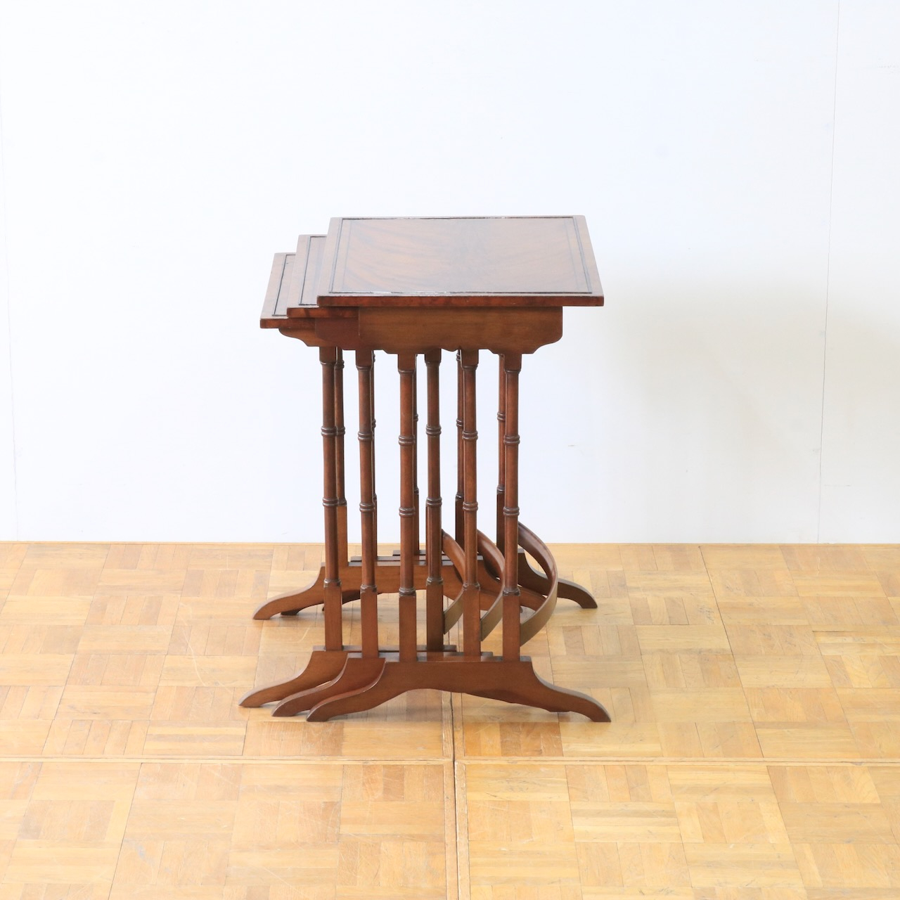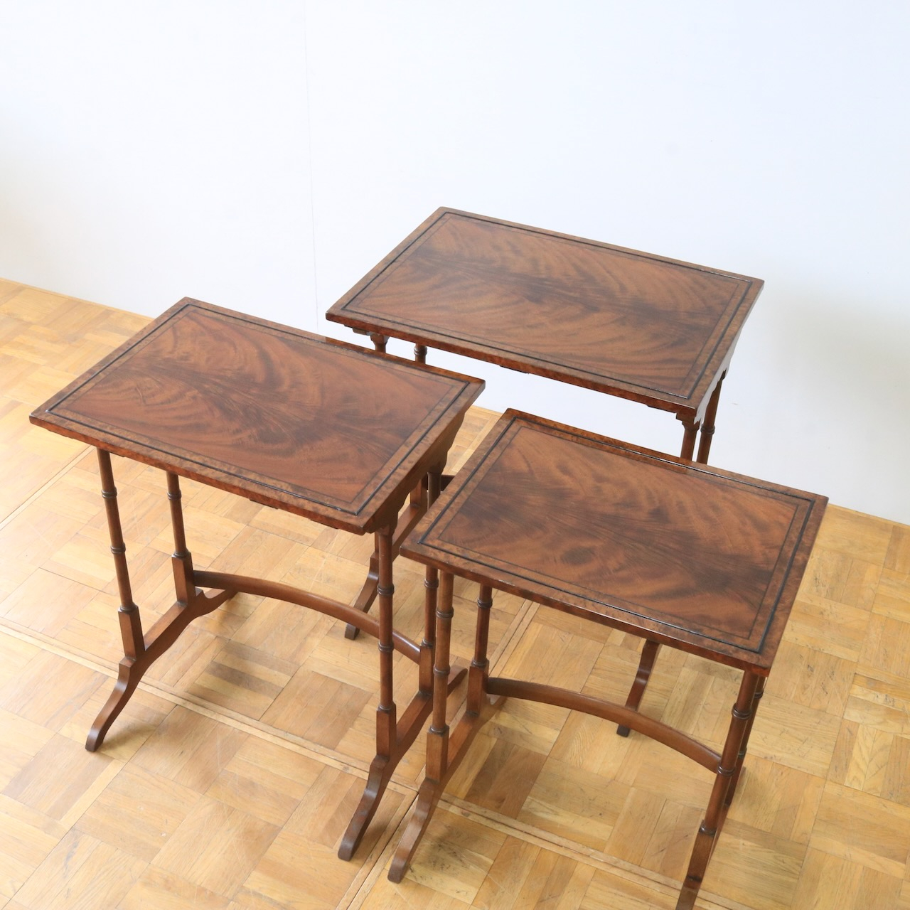 1930年代、マホガニーのネストテーブル。3個のテーブルが大・中・小で入れ子になっていて、ソファーサイドや3個をバラしてお家の中のいろいろな場所に置いたり…と多様性のあるスモールテーブルです。