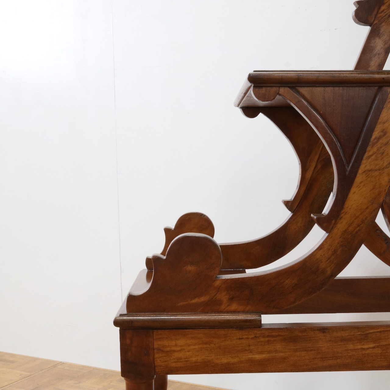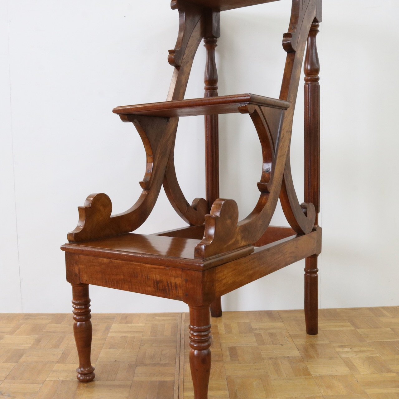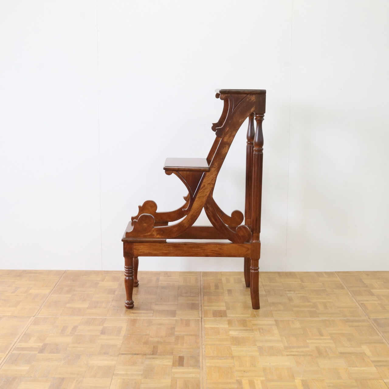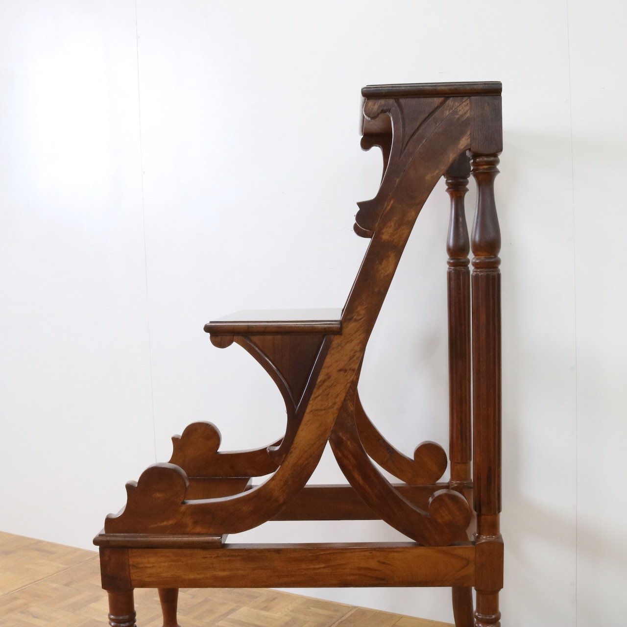 横から見るとステップの支柱や支えにスクロール、植物らしい有機的なラインが
