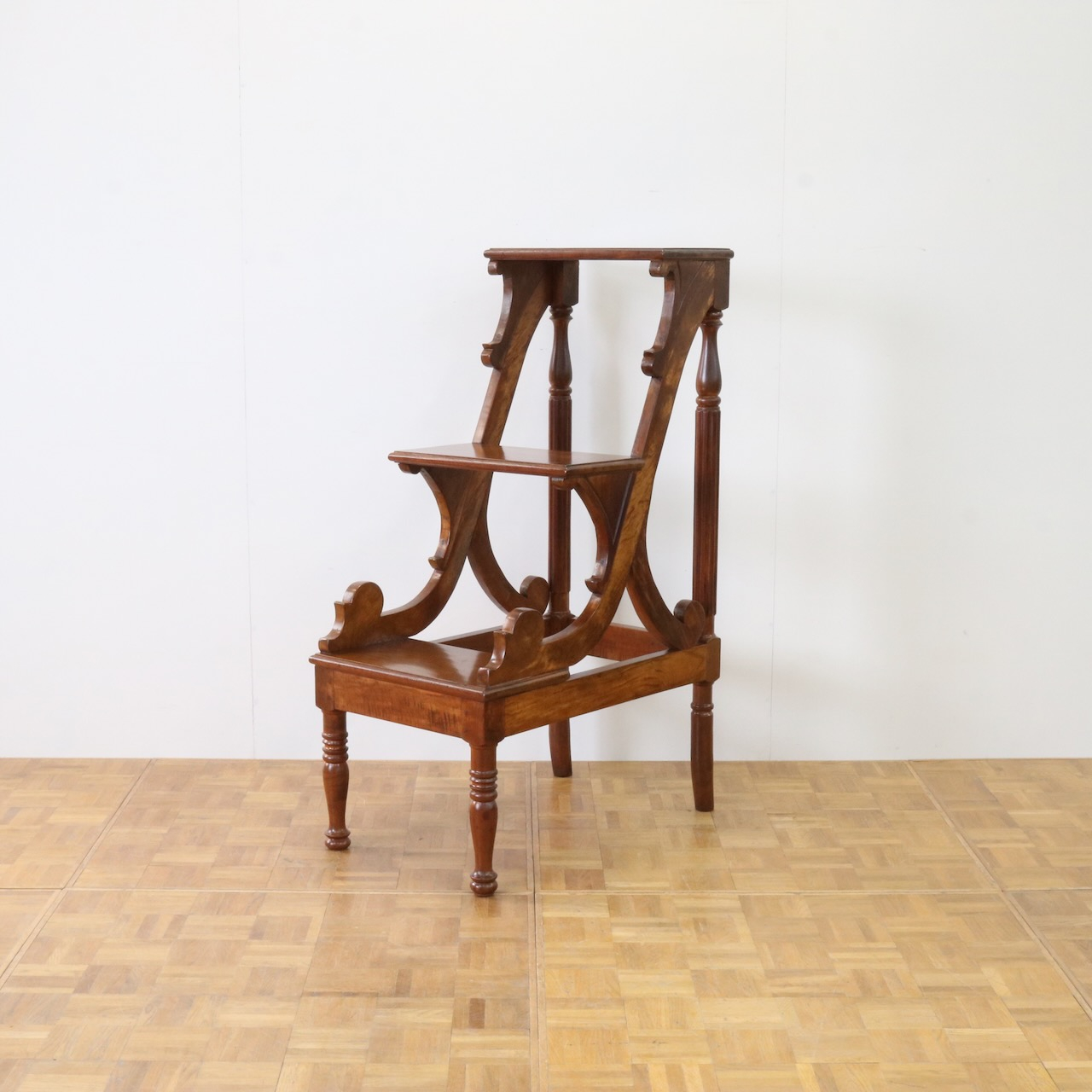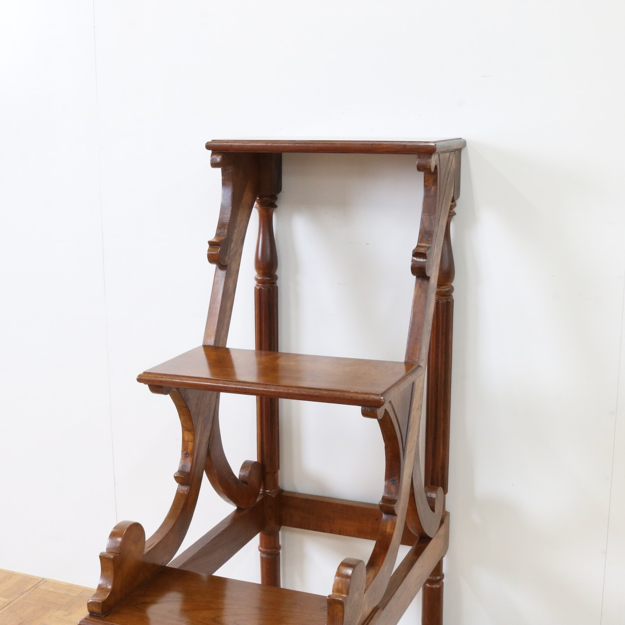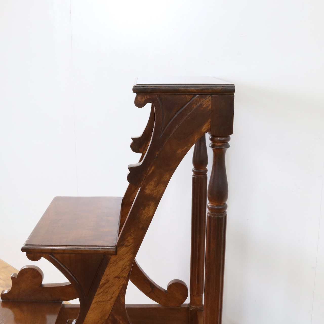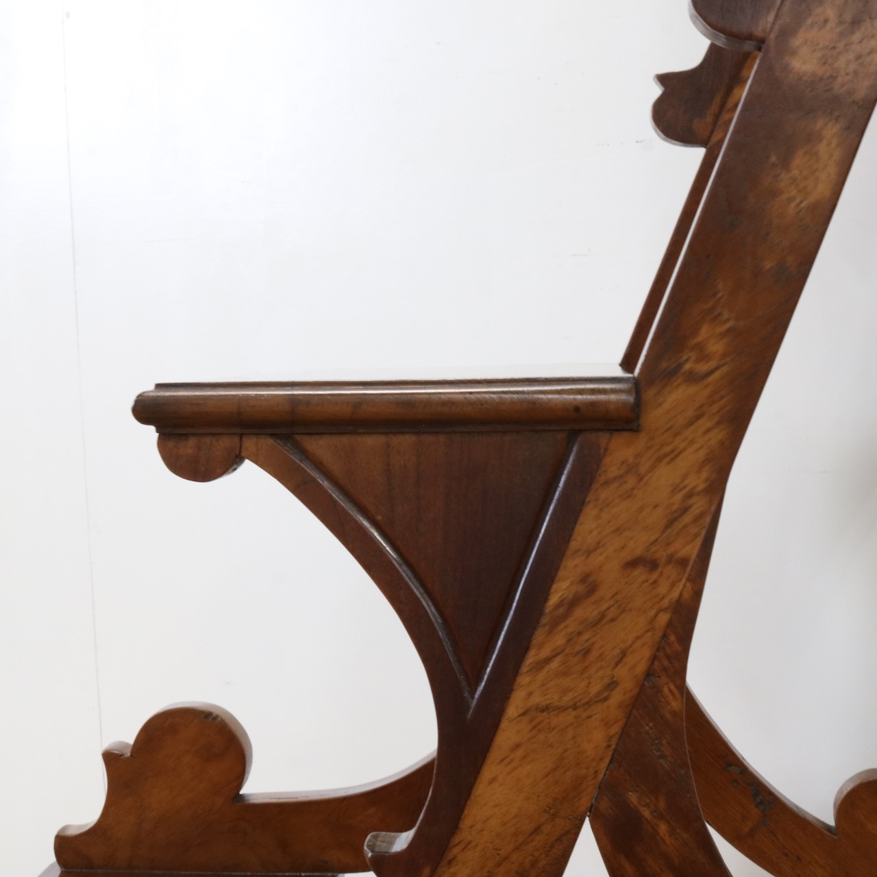 横から見るとステップの支柱や支えにスクロール、植物らしい有機的なラインが