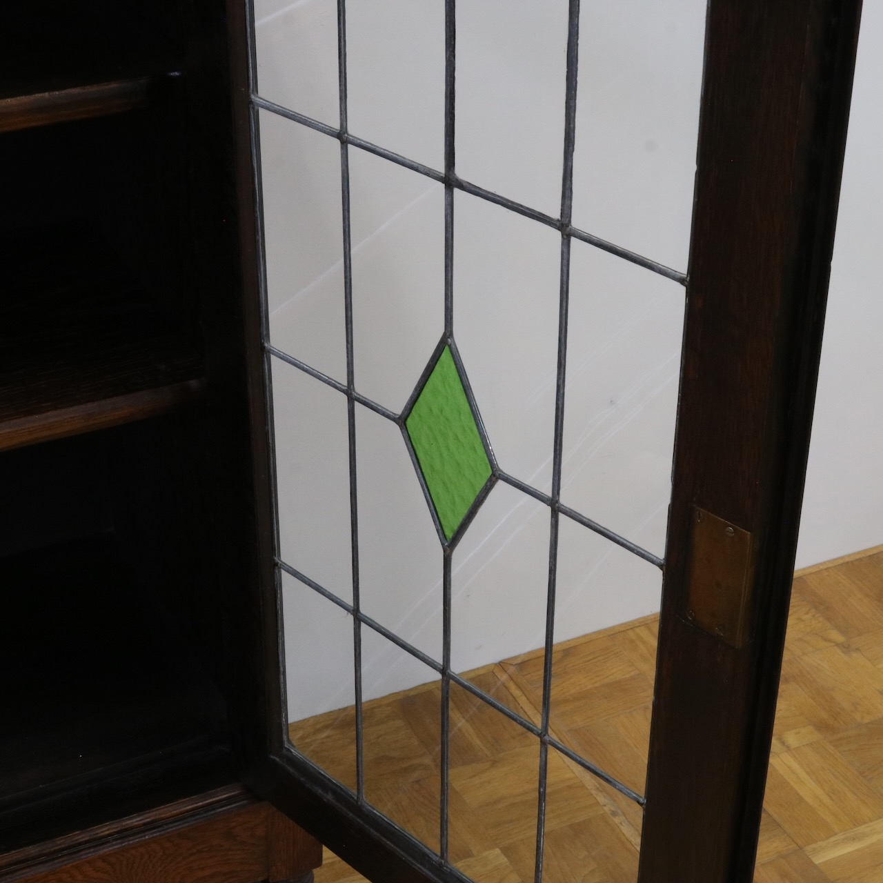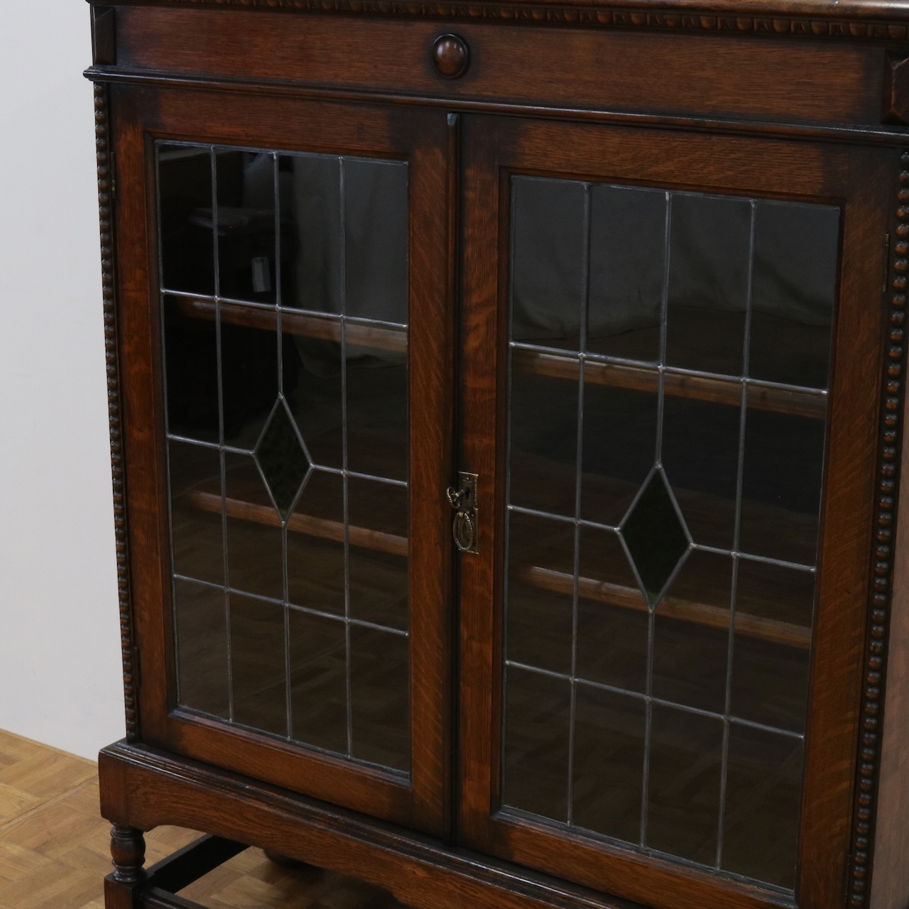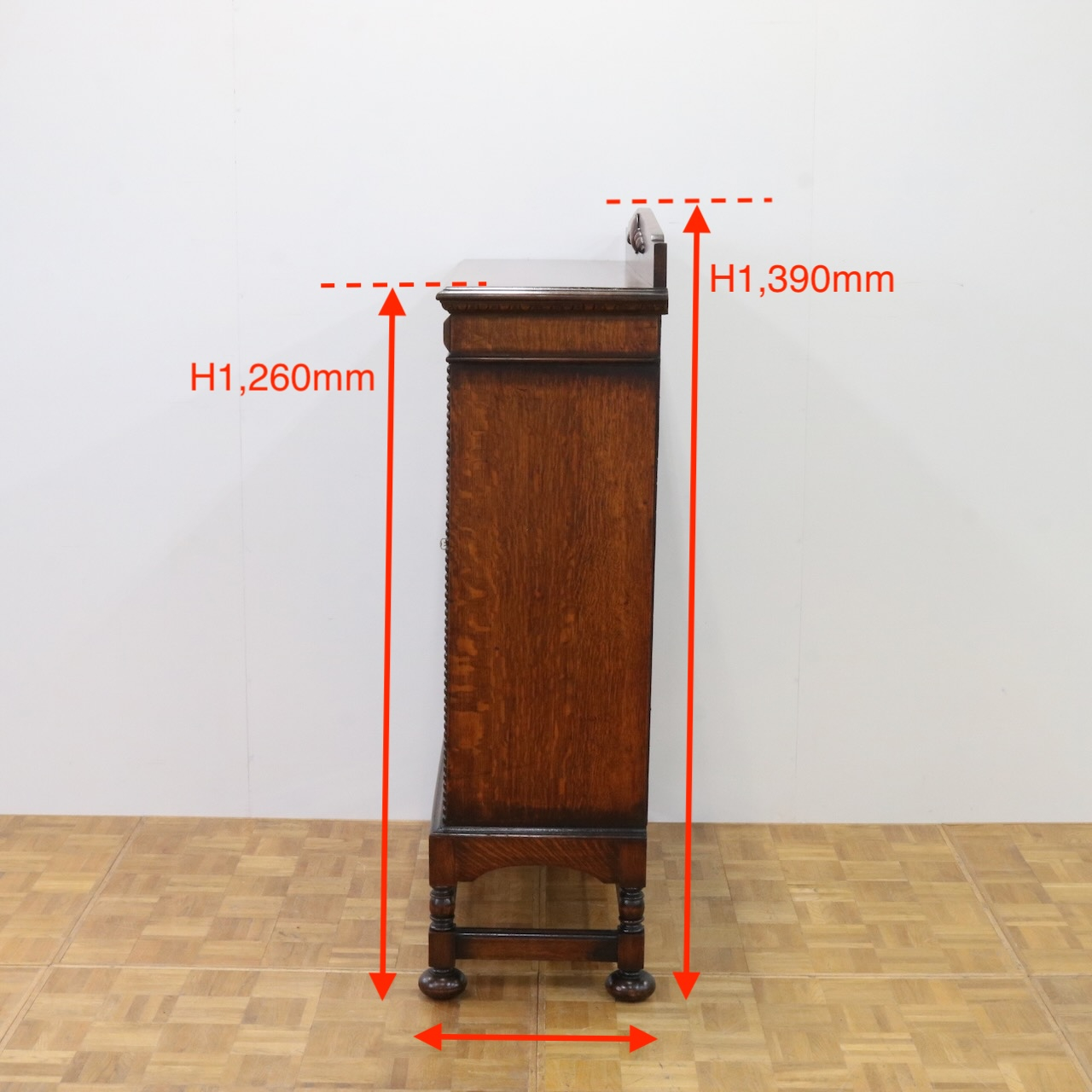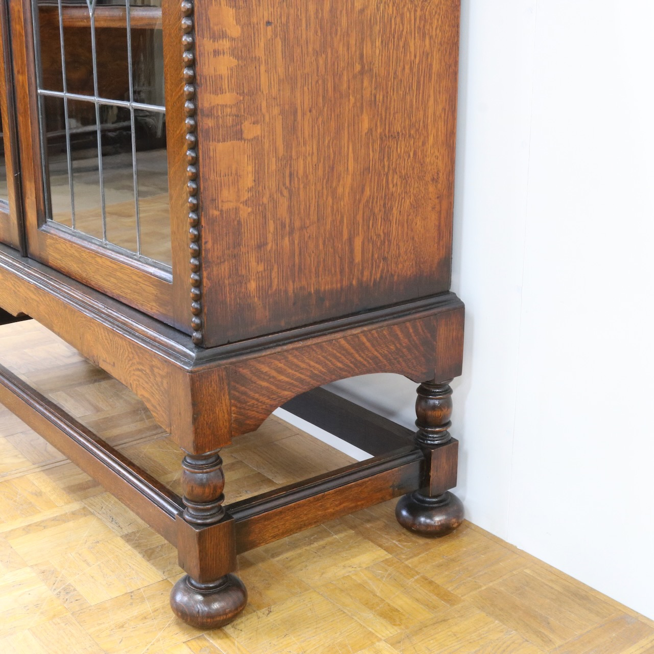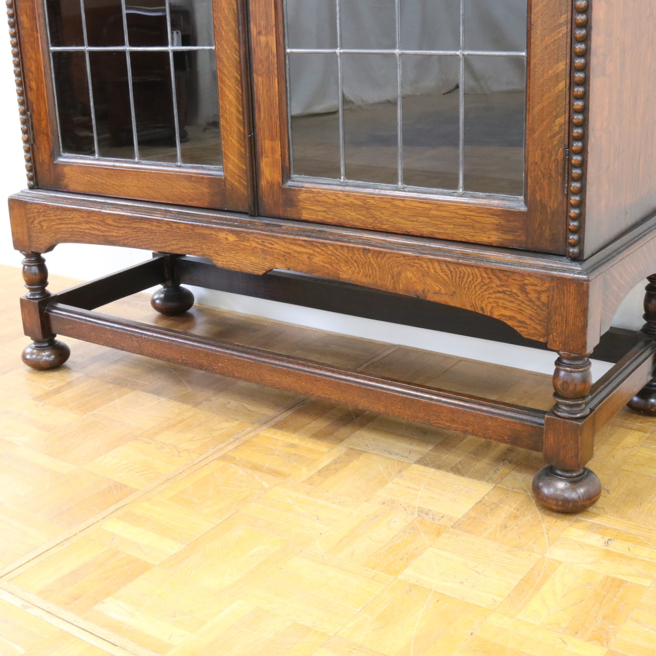 配送料の目安 ▶︎1930年代、オーク材のブックケース。菱形のアクセントが目を惹くリーディッドガラスの扉、トップパーツのユニークな飾りなど、クラシックな意匠が随所に光るアイテムです。