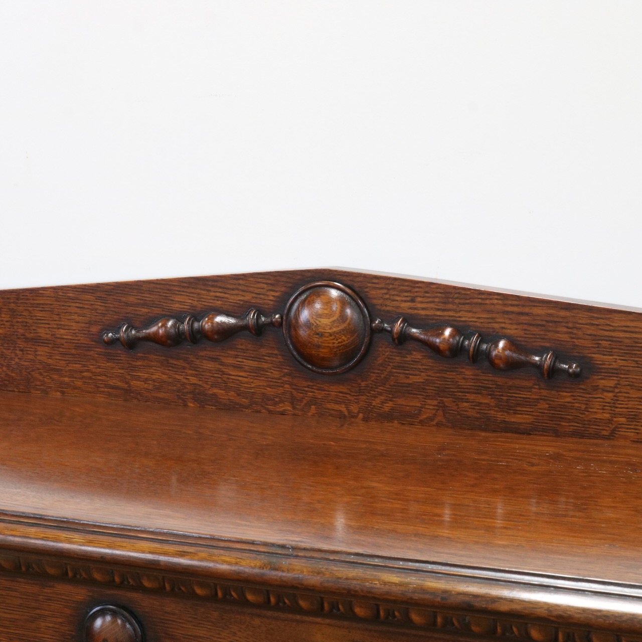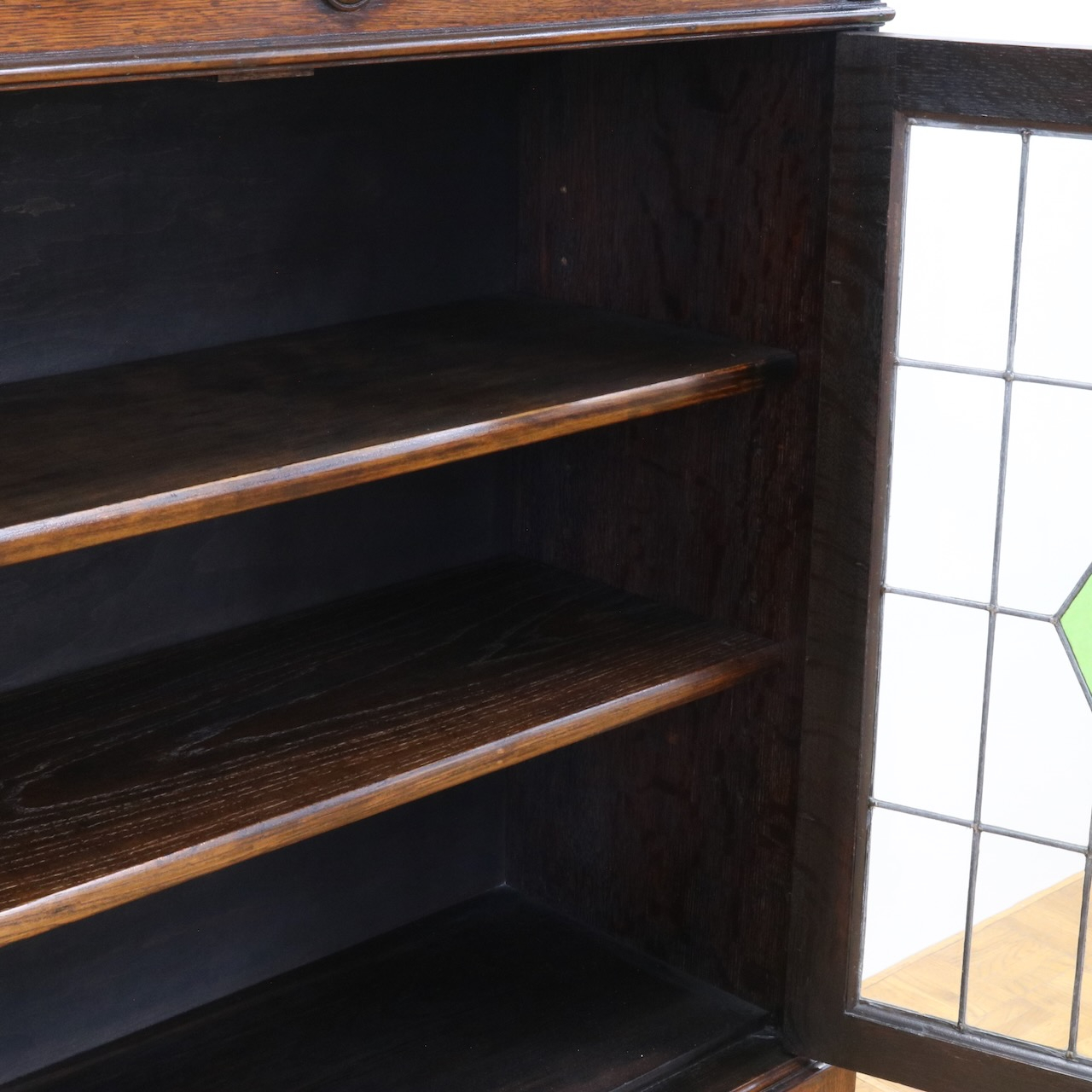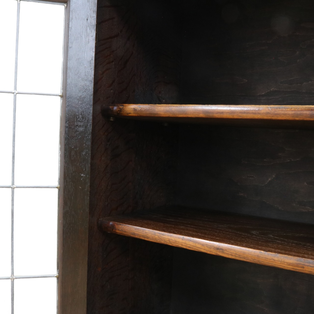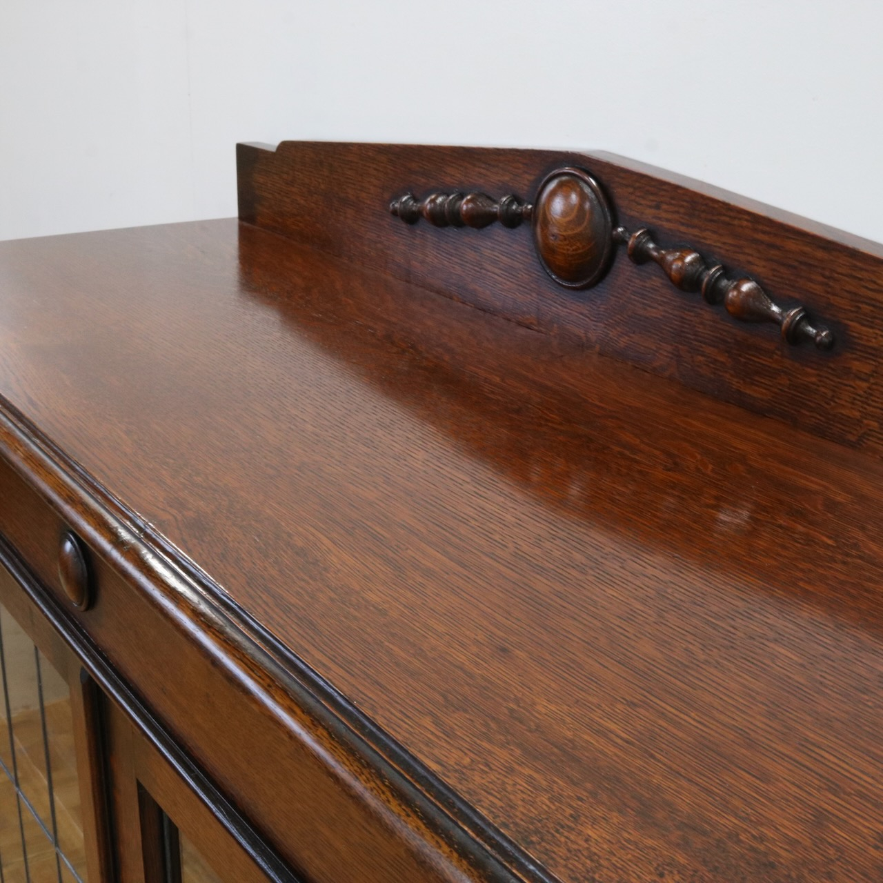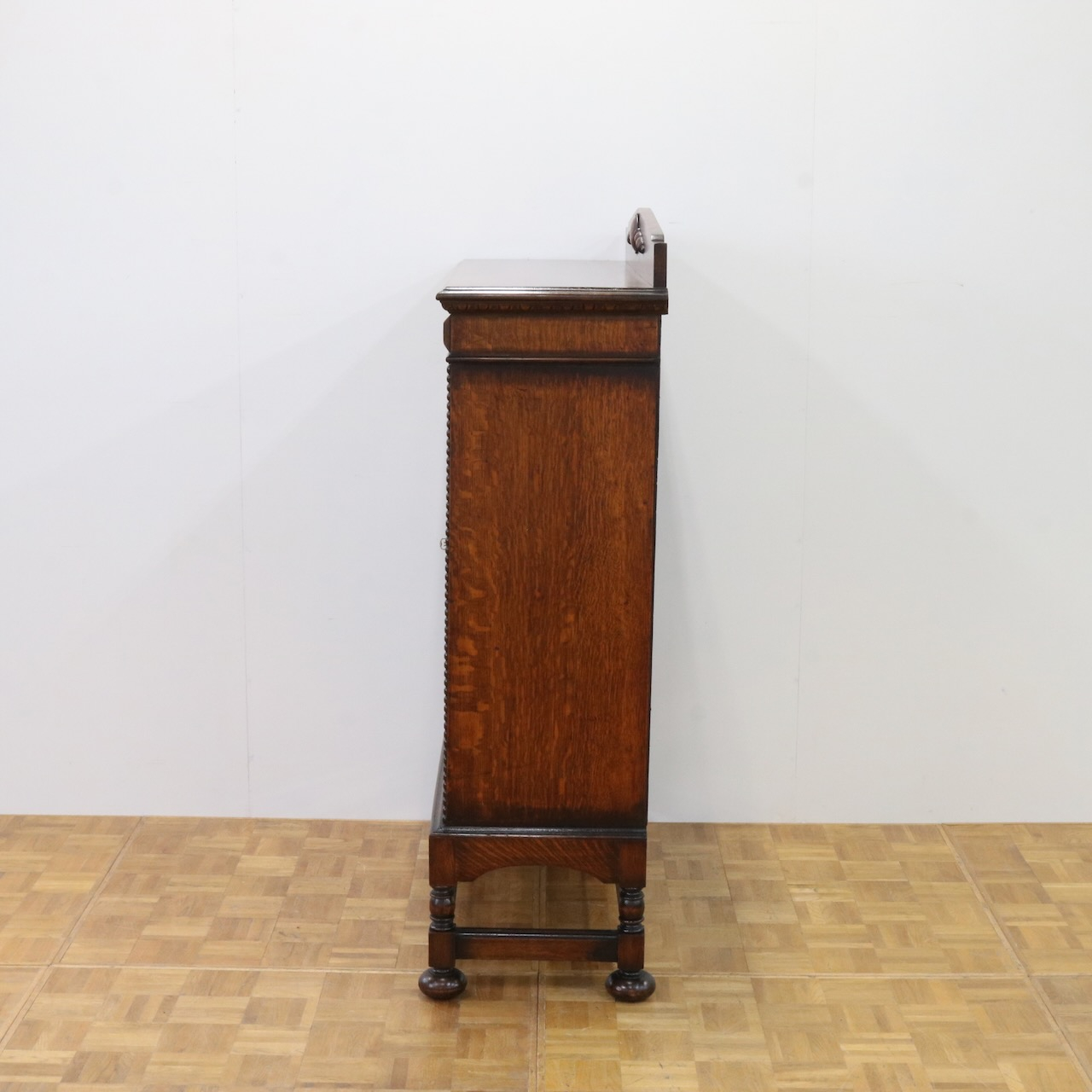 配送料の目安 ▶︎1930年代、オーク材のブックケース。菱形のアクセントが目を惹くリーディッドガラスの扉、トップパーツのユニークな飾りなど、クラシックな意匠が随所に光るアイテムです。