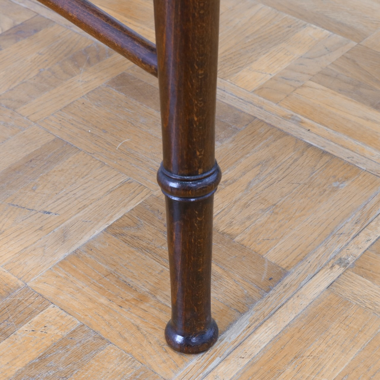 アクセントが効いた挽物、少し外開きのシルエットが可愛らしい脚元です。