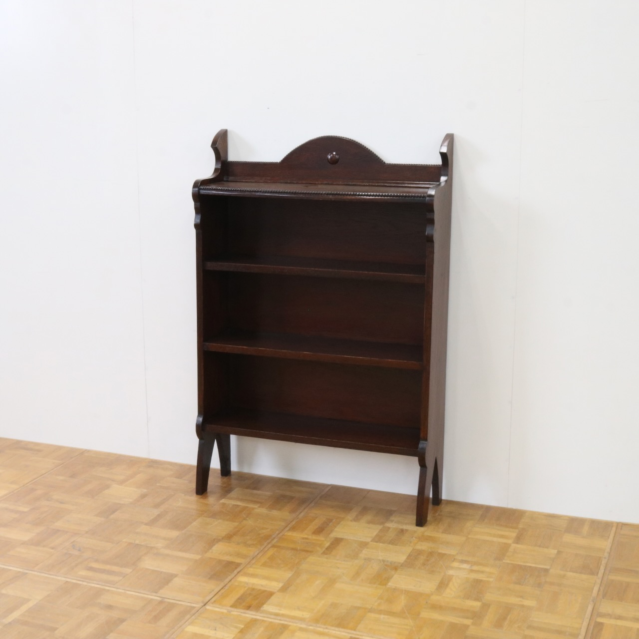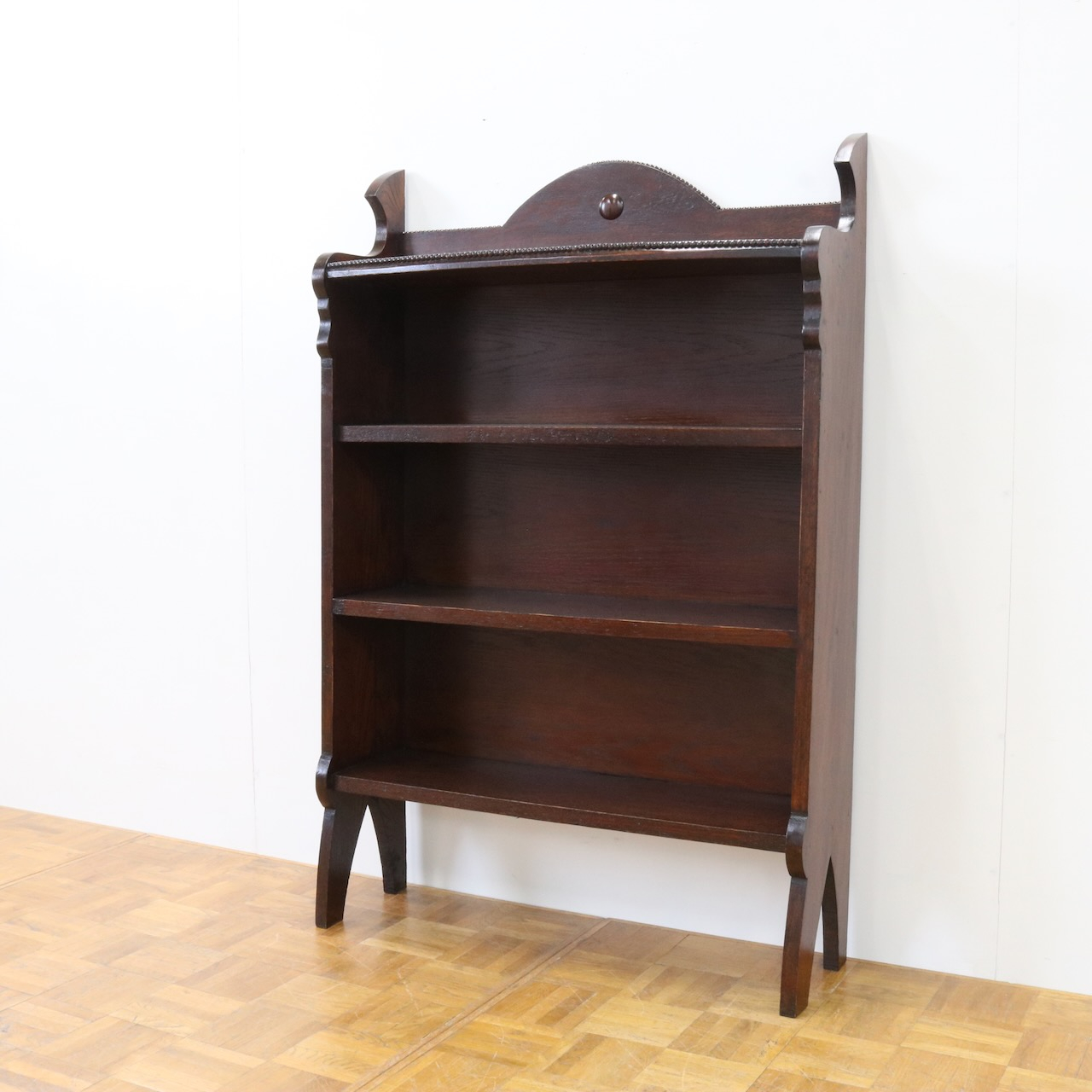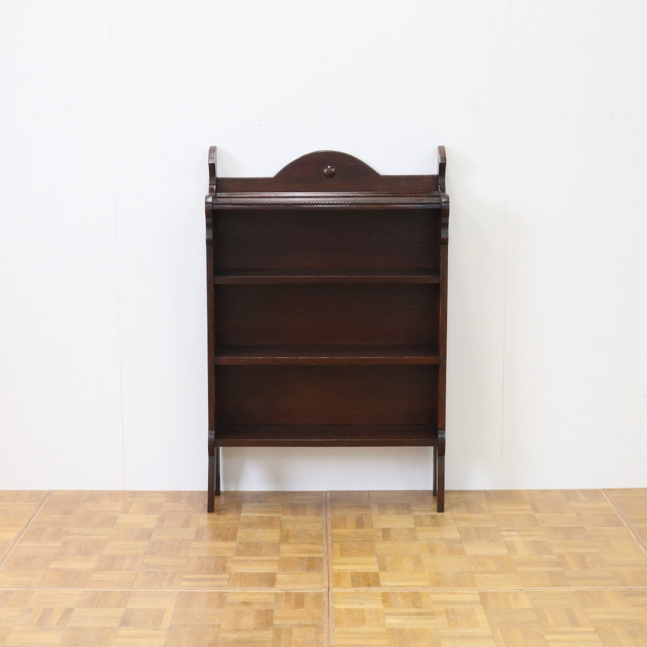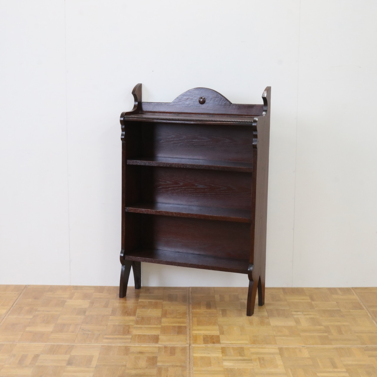 配送料の目安 ▶︎1930年代、オークのブックシェルフ。奥行きが浅めでスッキリとしたデザインです。小さな玉飾りが連なったビーディング装飾がアクセント。