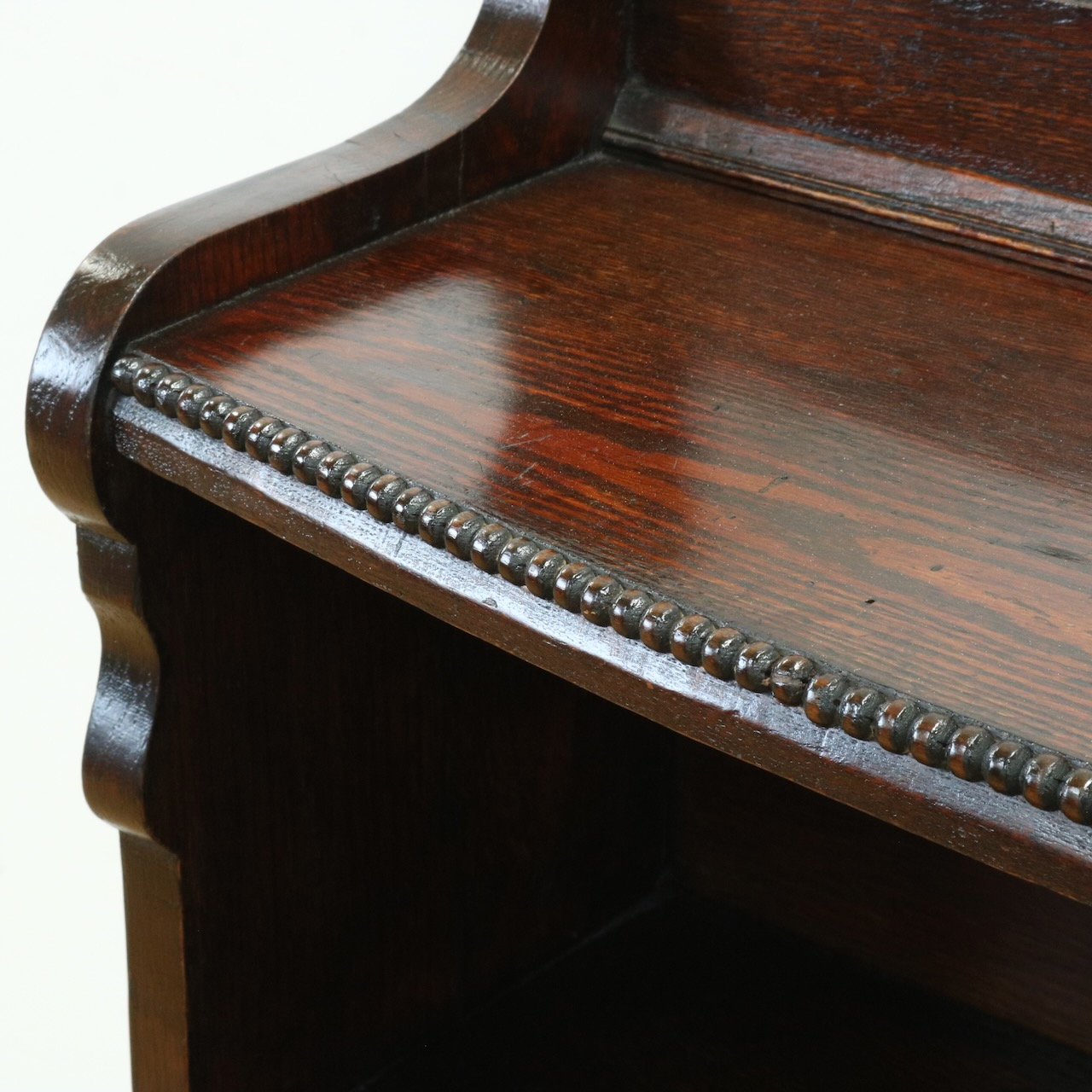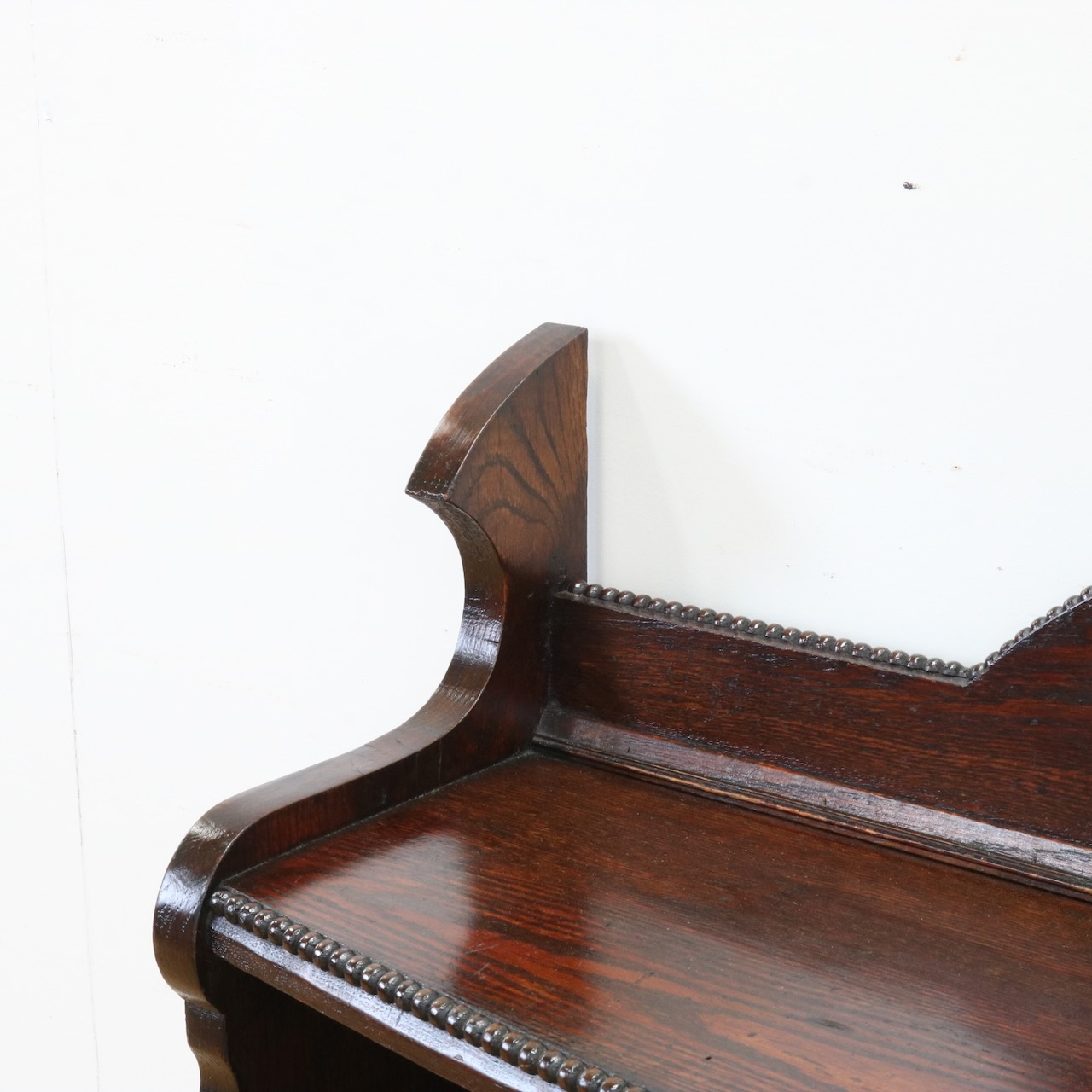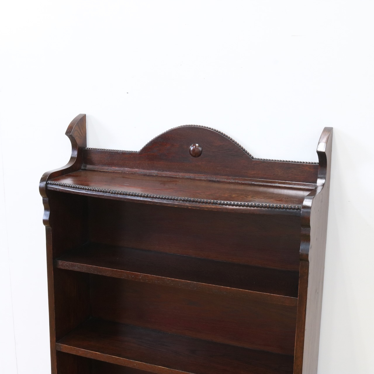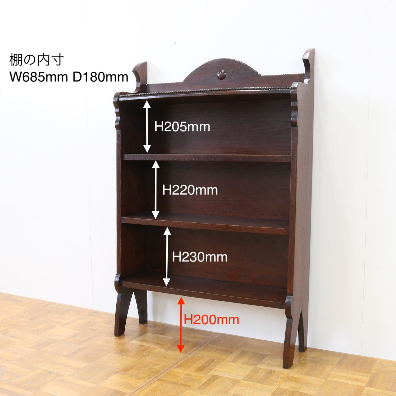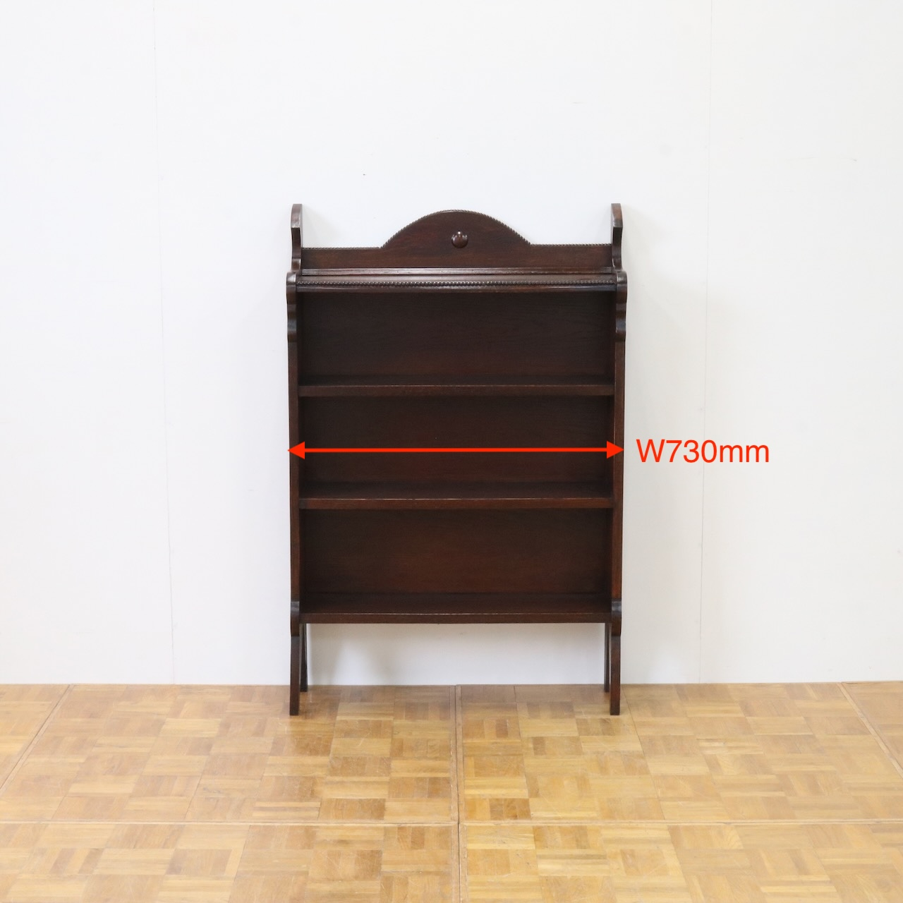 配送料の目安 ▶︎1930年代、オークのブックシェルフ。奥行きが浅めでスッキリとしたデザインです。小さな玉飾りが連なったビーディング装飾がアクセント。