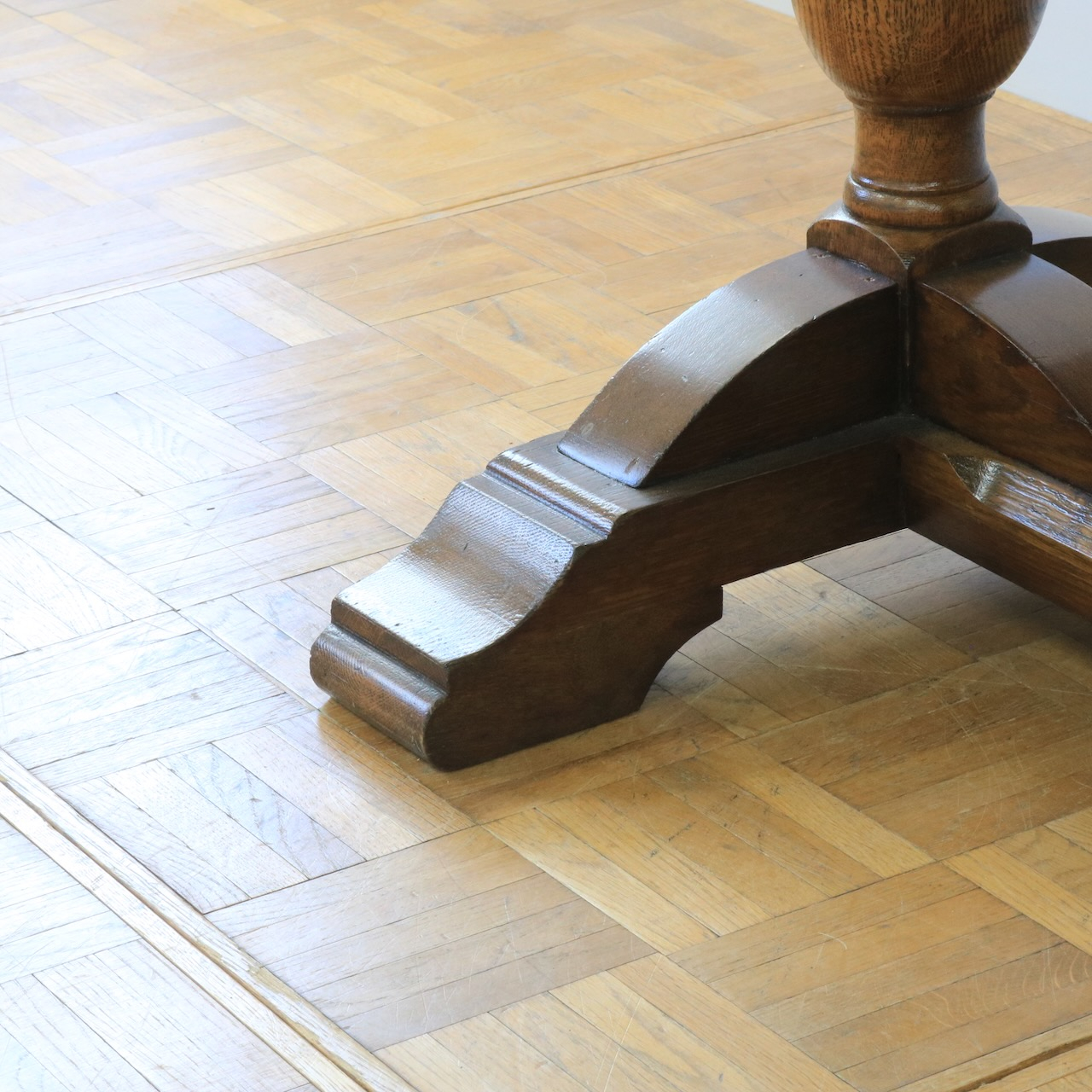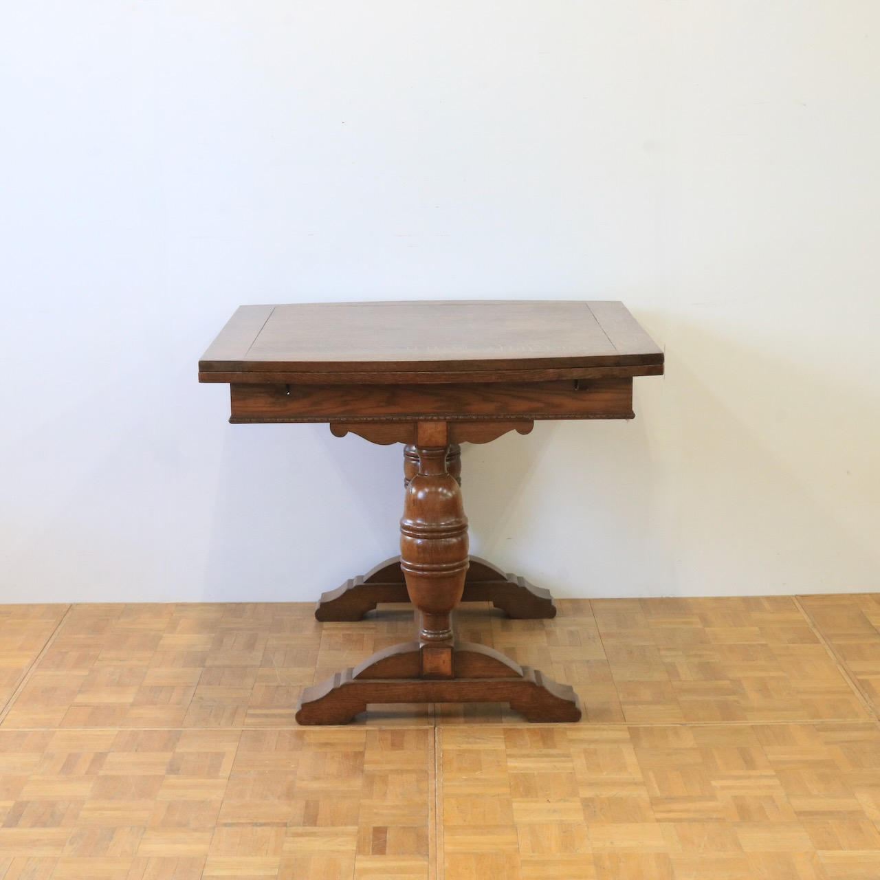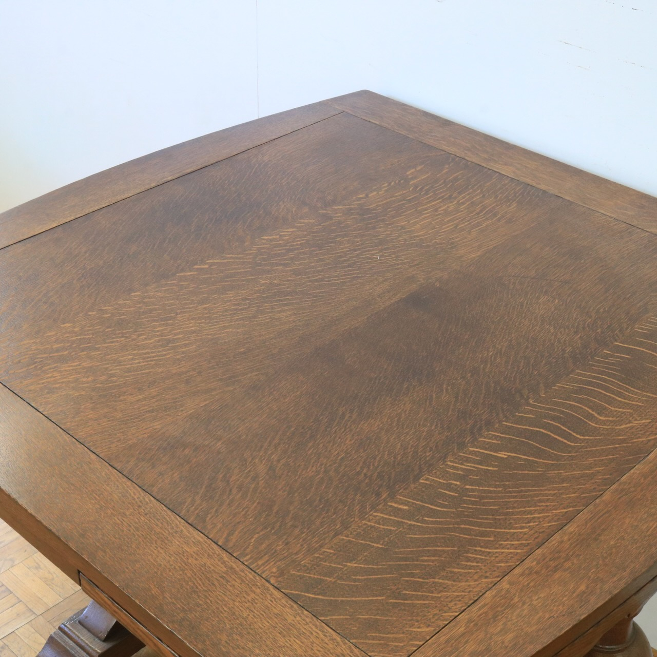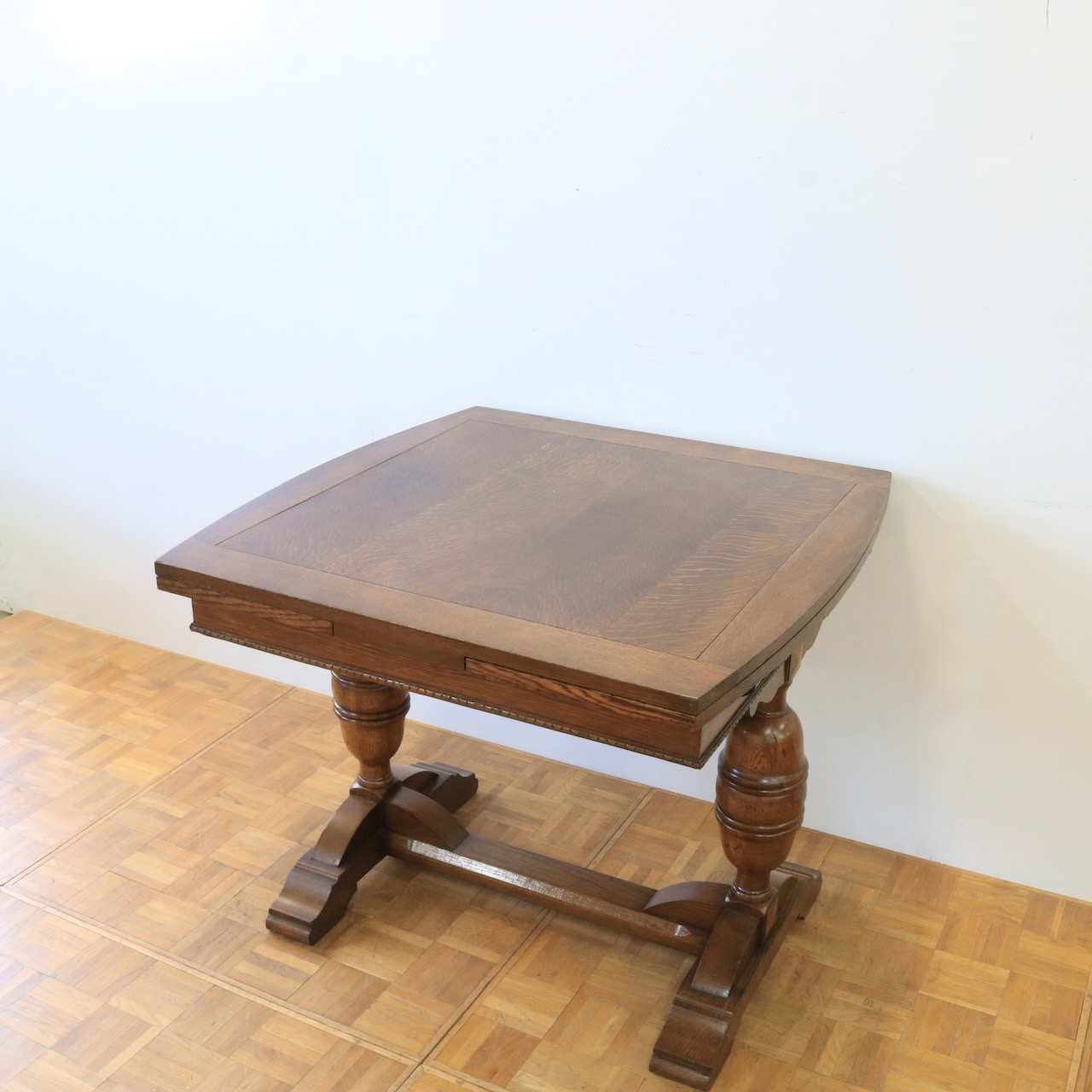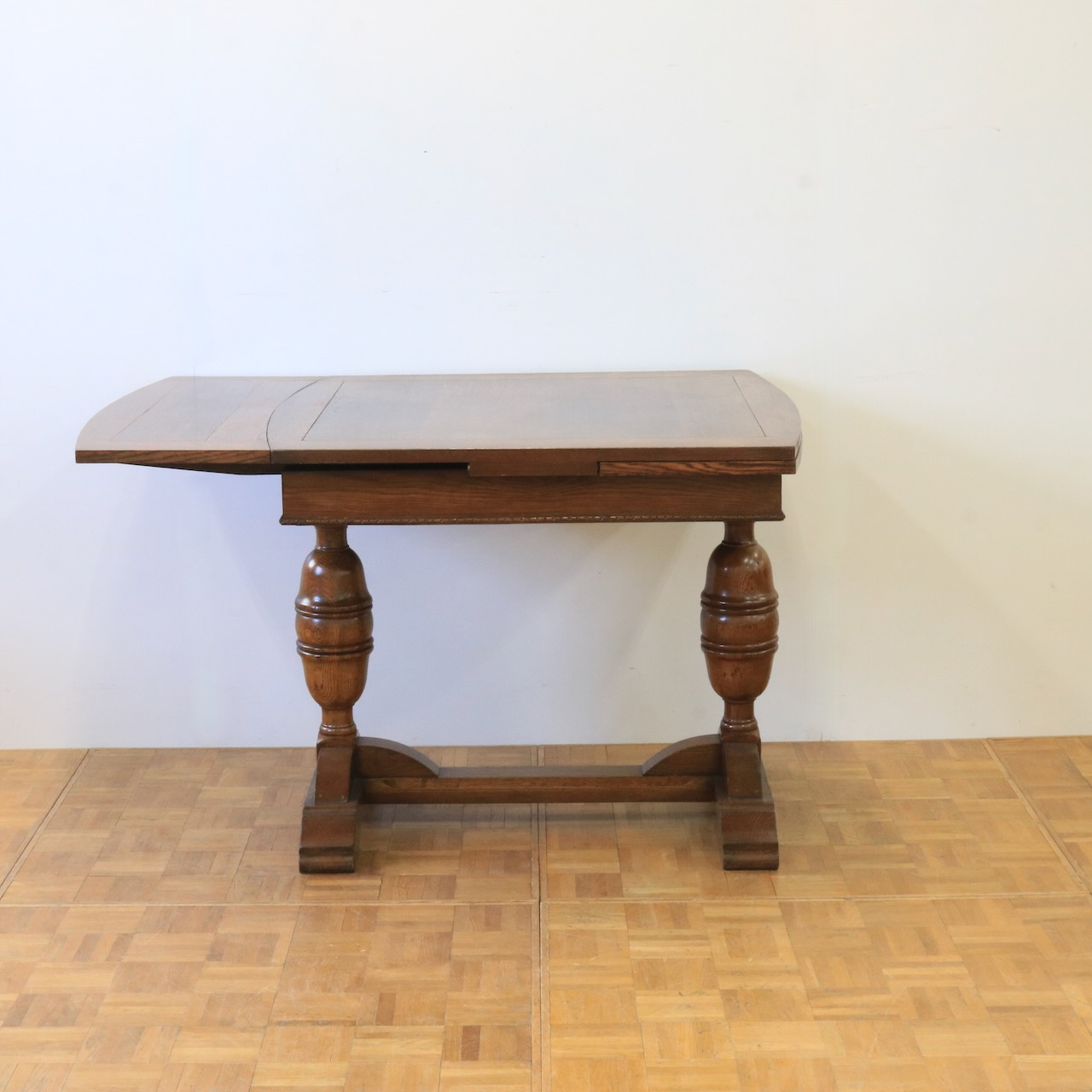 1930年代、オーク材のドローリーフテーブル。両サイドのリーフを伸び縮みさせて大きさを調節できる便利なダイニング用テーブルです。どんぐりのような丸く膨らんだ脚のデザインが特徴的。