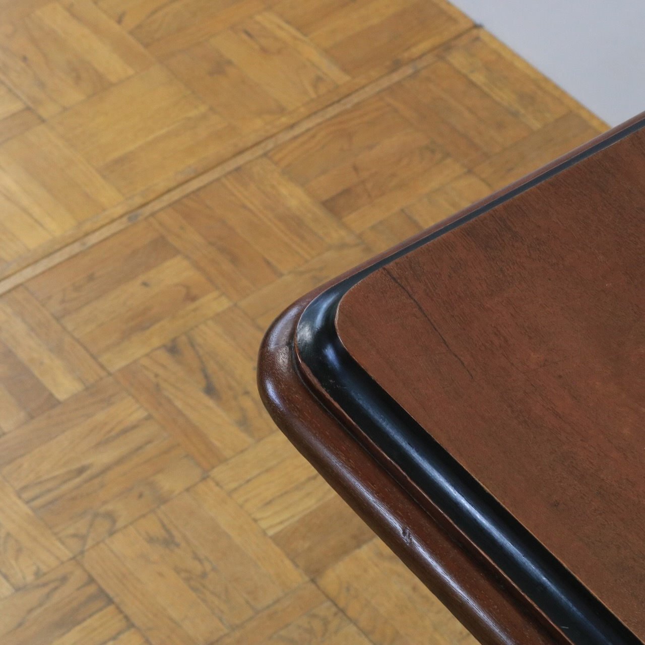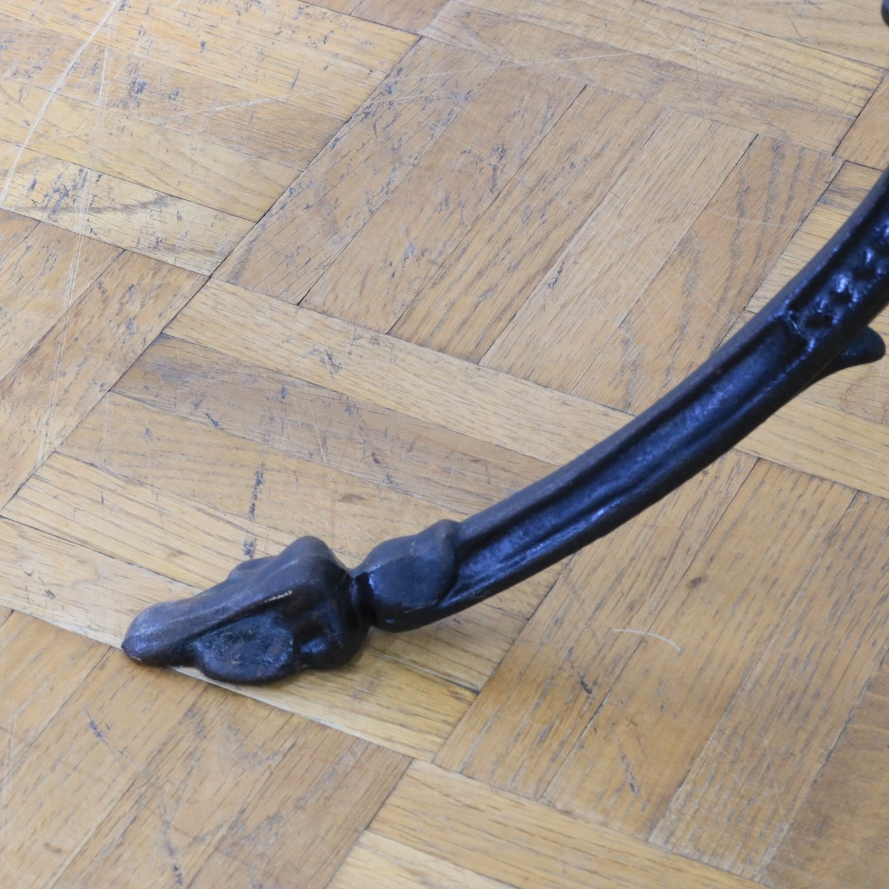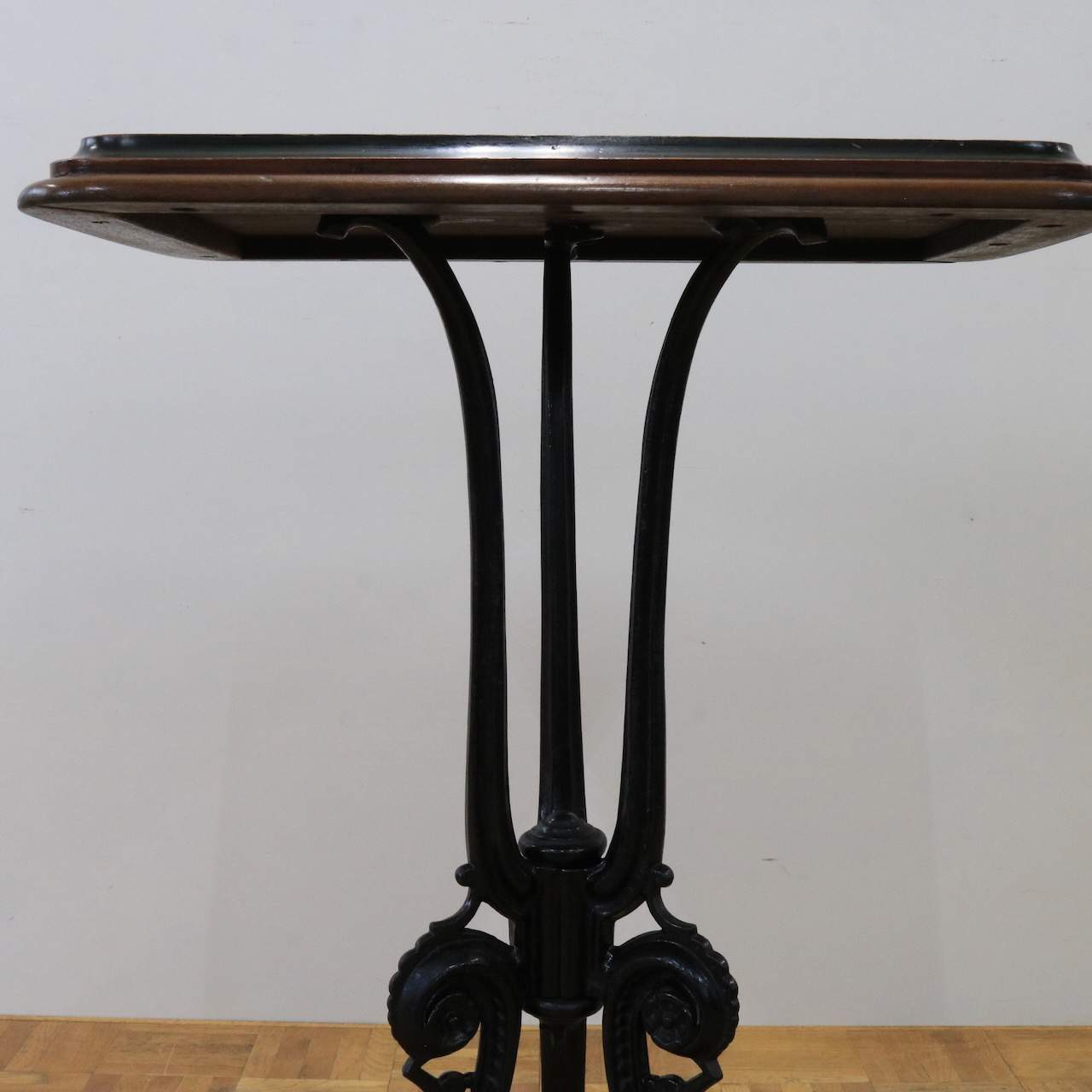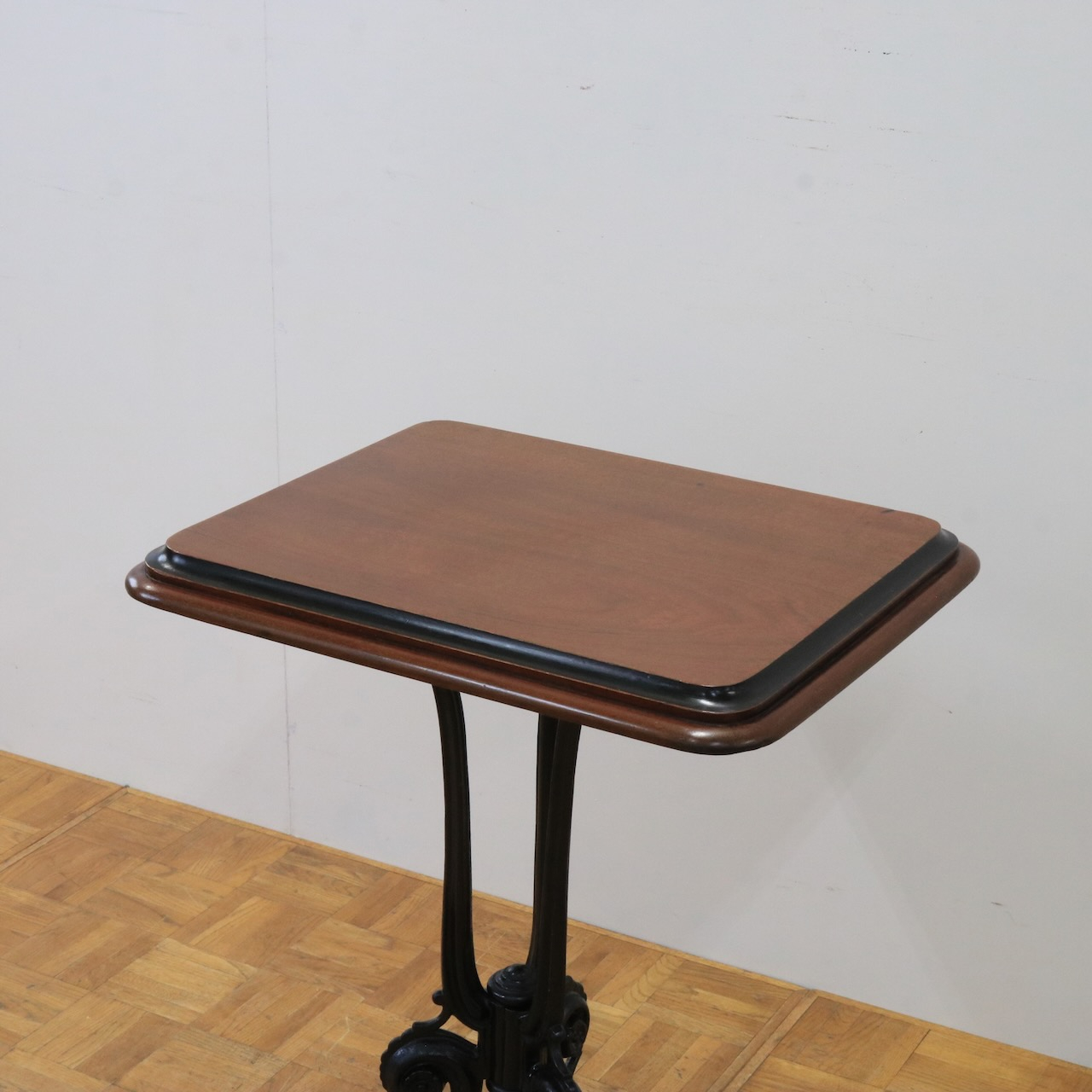 配送料の目安 ▶︎1910年代、マホガニー材のパブテーブル。アイアン製の脚はスクロールした植物紋様のようなデザインになっています。お天気のいい日にはお庭でティータイムを楽しむのもいいですね。