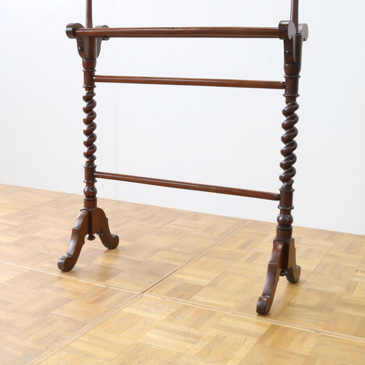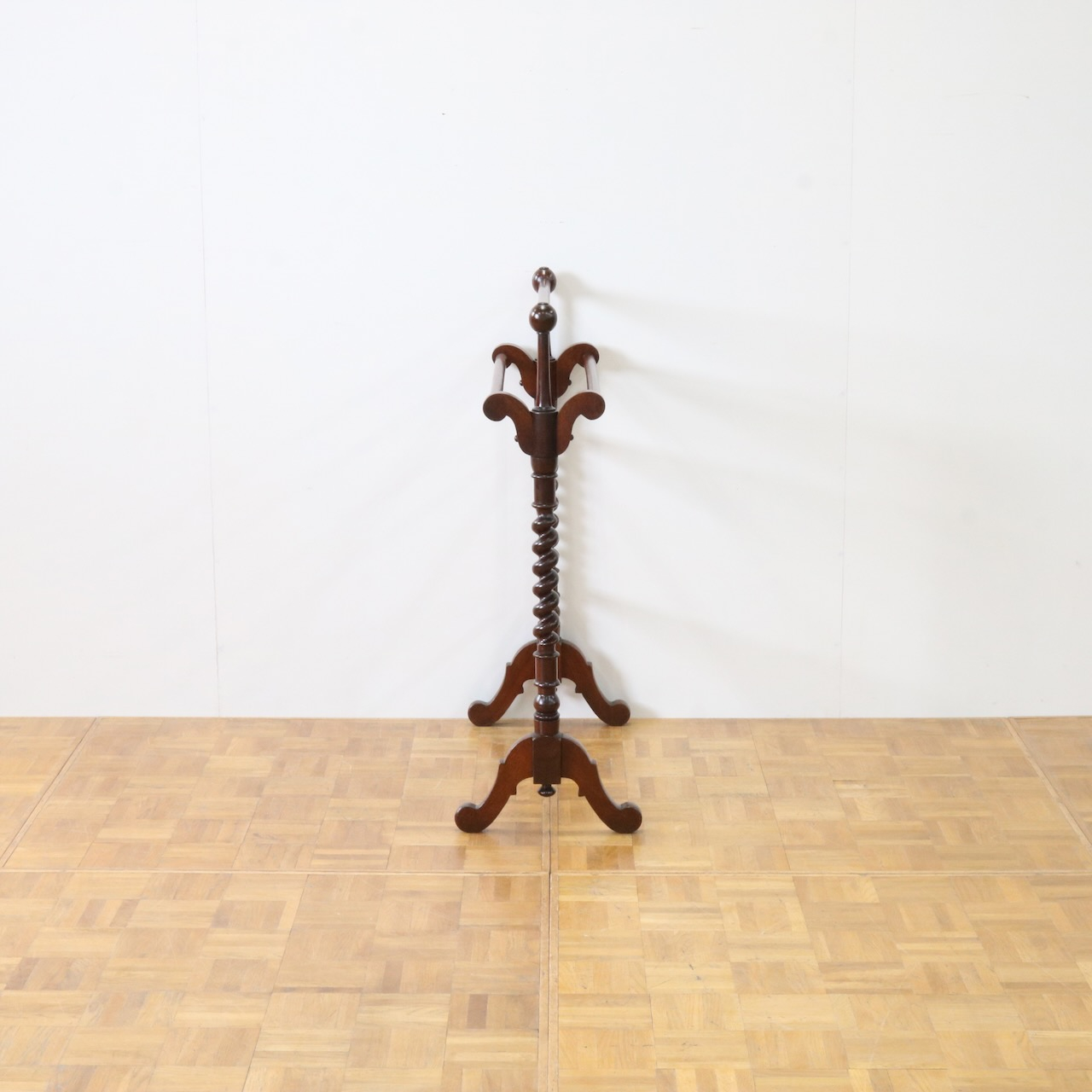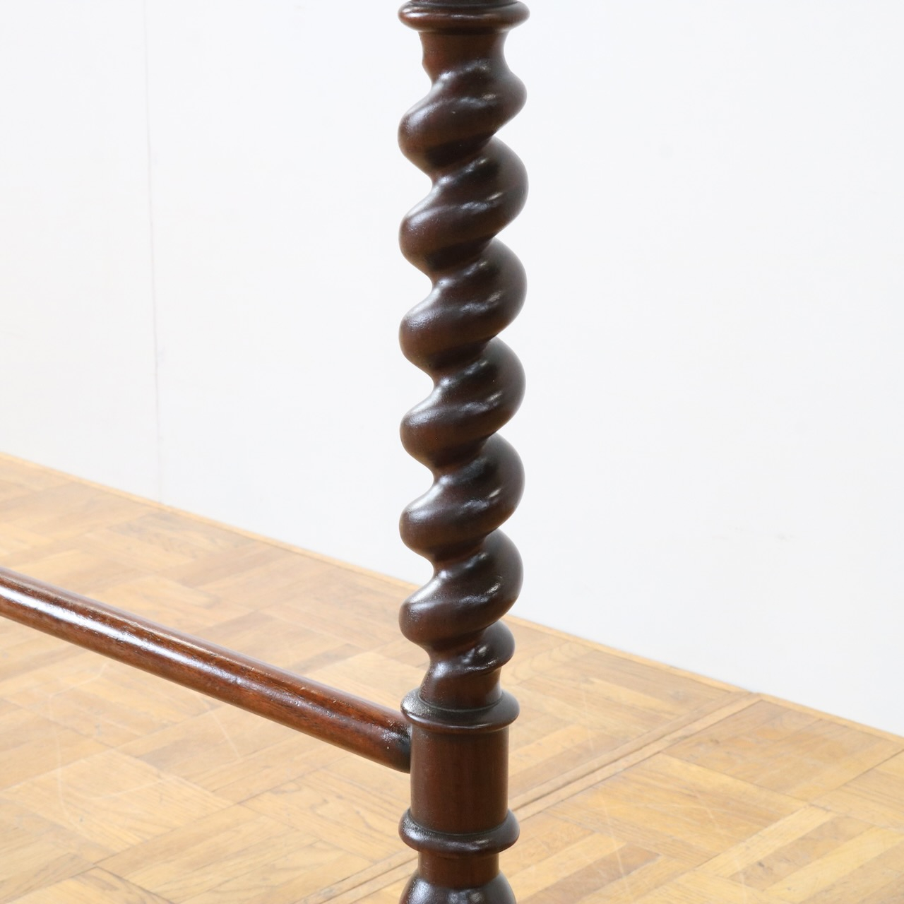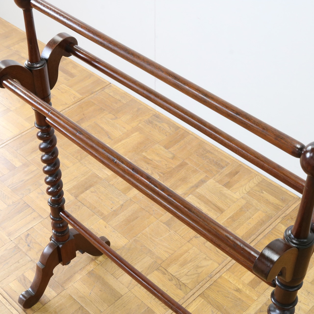 1880年代ヴィクトリアン、マホガニー材のタオルホース。はっきりと捻れたツイストレッグがアクセントになった、アンティークらしい素朴さも感じられるアイテムです。レースや可愛い布を下げてインテリアを楽しんだり、ネクタイやスカーフを掛けておくのもおすすめです。