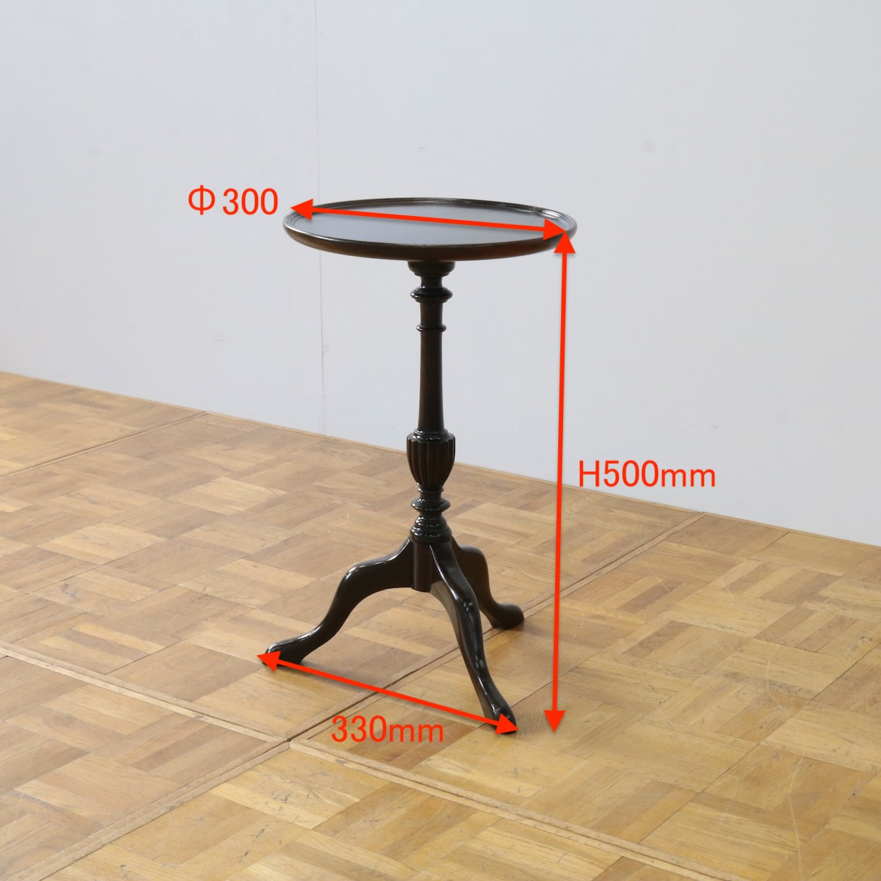 小さくシンプルなテーブルでありながらアンティークらしい気品があり、ソファやベッドの横に置いて使いたいアイテムです。